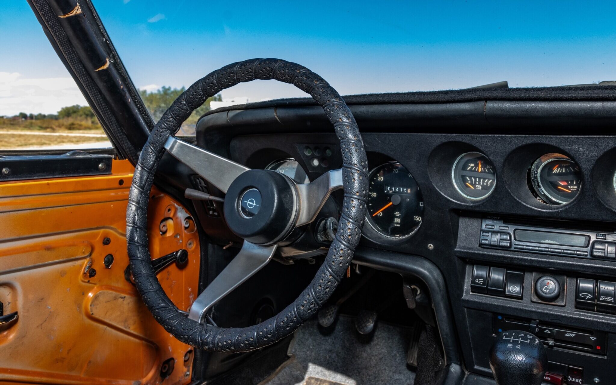 If you take a closer look at the shift nob, you’ll notice that it shows as having 5 gears. The GT came with either a 3-speed automatic or a 4-speed manual, so someone did a 5-speed swap. The transmission shifts smoothly and the clutch engages nicely. There’s no word what the transmission came out of, but it’s definitely a nice upgrade that gives this little Opel longer legs!
