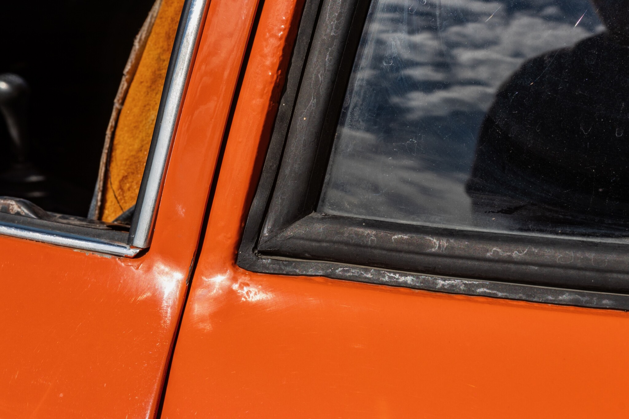 There are some spots where the paint is bubbling that will need to be addressed, but we didn’t find any serious rust issues underneath. The car was repainted a number of years ago, but hopefully, the color can be properly matched so the bubbles can be addressed and touched up before they get any worse. From 10 feet away, the car looks great and really pops in this bright orange color.