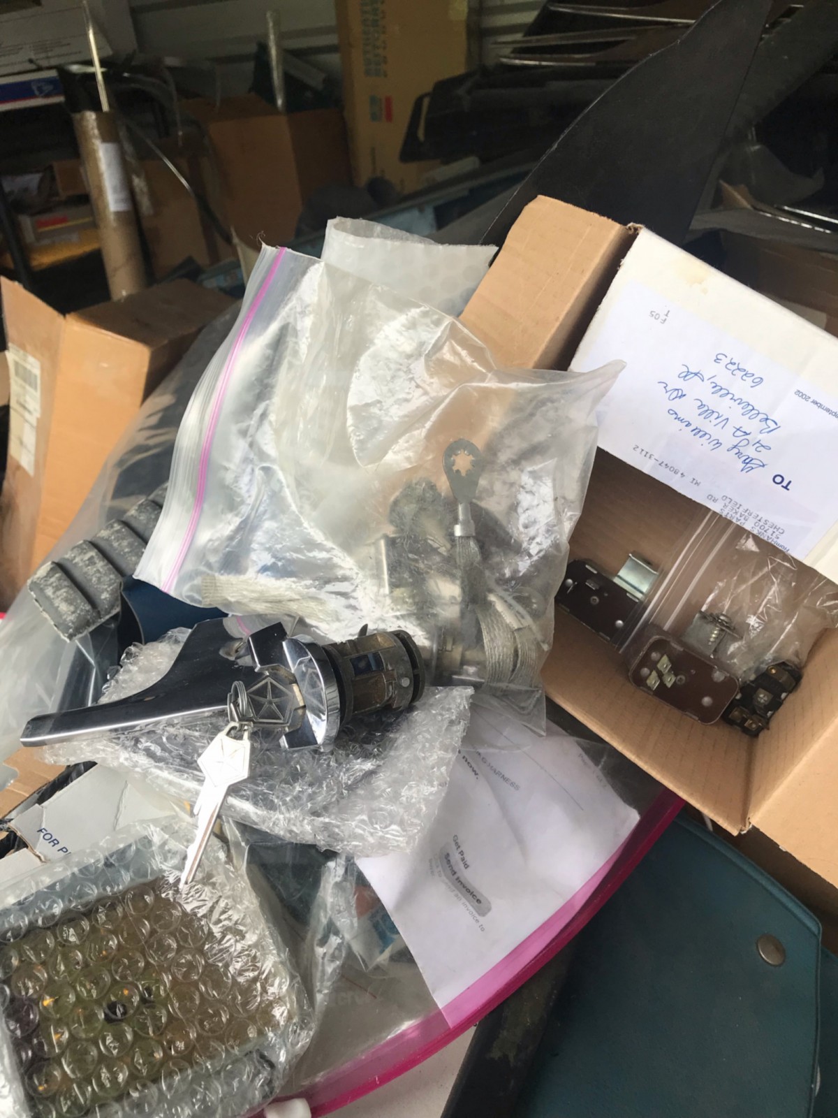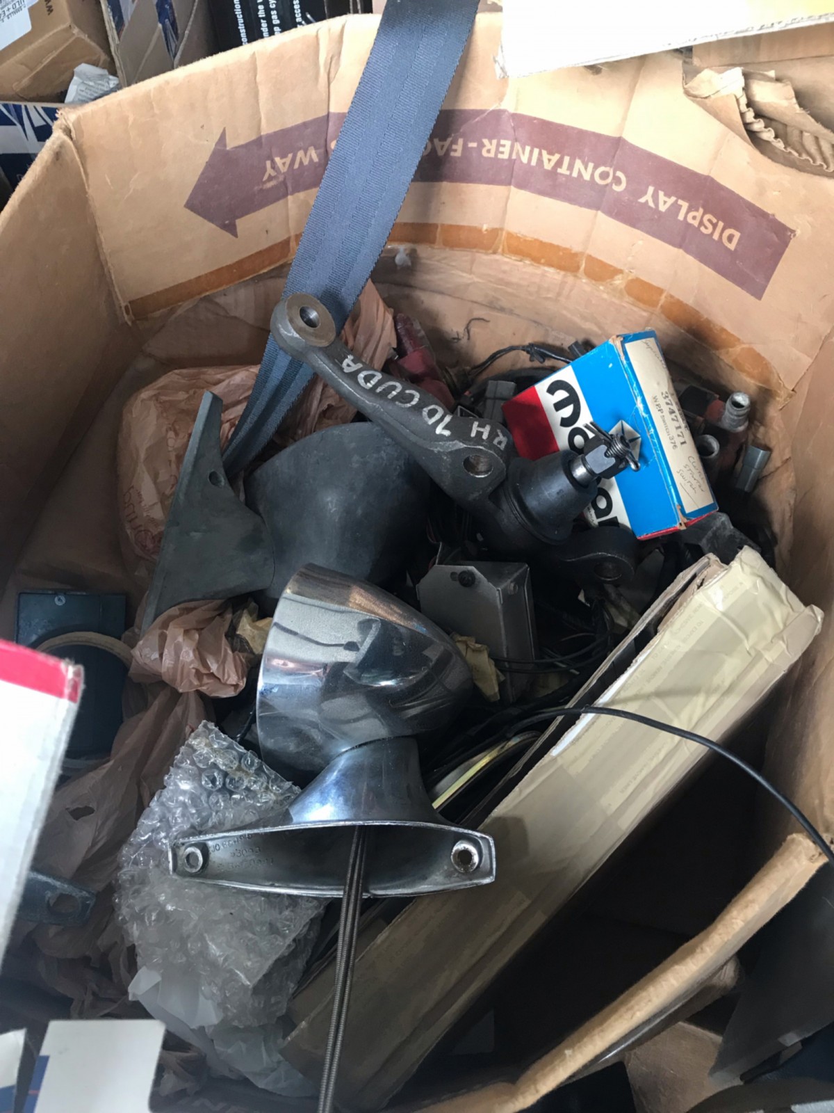 Over the past month or two, Sue has had a mechanic go over the car and it’s now running and driving great. She also was able to get photos of all the important numbers and has sent me copies so that I can verify that everything looks good. The car also includes a stash of Mopar parts, with lots of spares that will help get this car up to top-level condition. She honestly, isn’t sure what all is here, as there are lots of small parts so she took photos of everything and they can be seen below. There are lots of spares here including new interior bits and even brand new chrome trim pieces for the hood scoops!