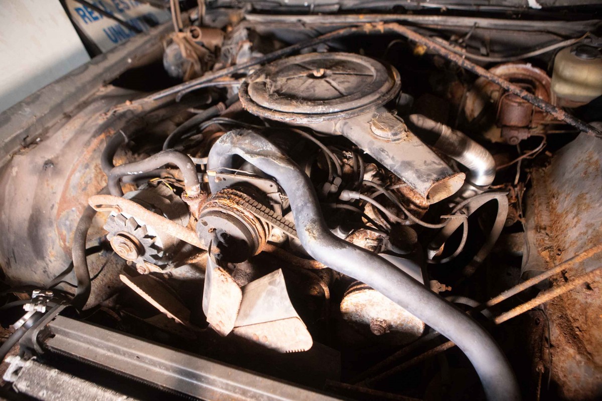The humidity in that garage must have been like clouds of wet fog rolling in for years. See the rust in the engine compartment. Yuk. The owner destroyed these cars with this condition.