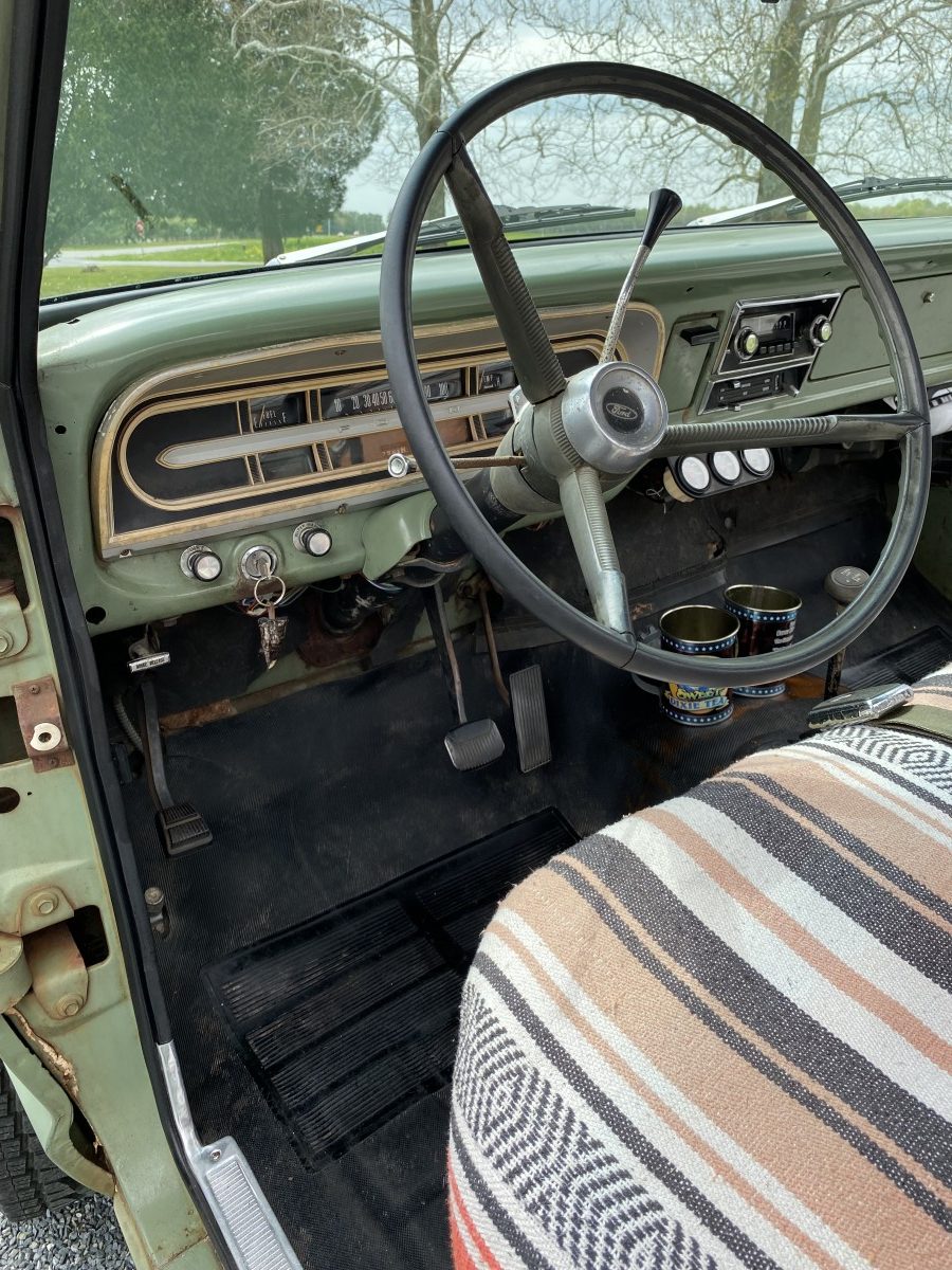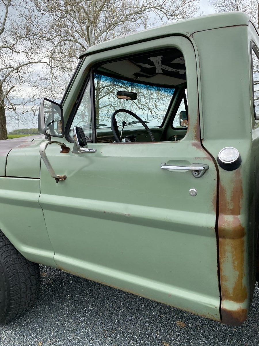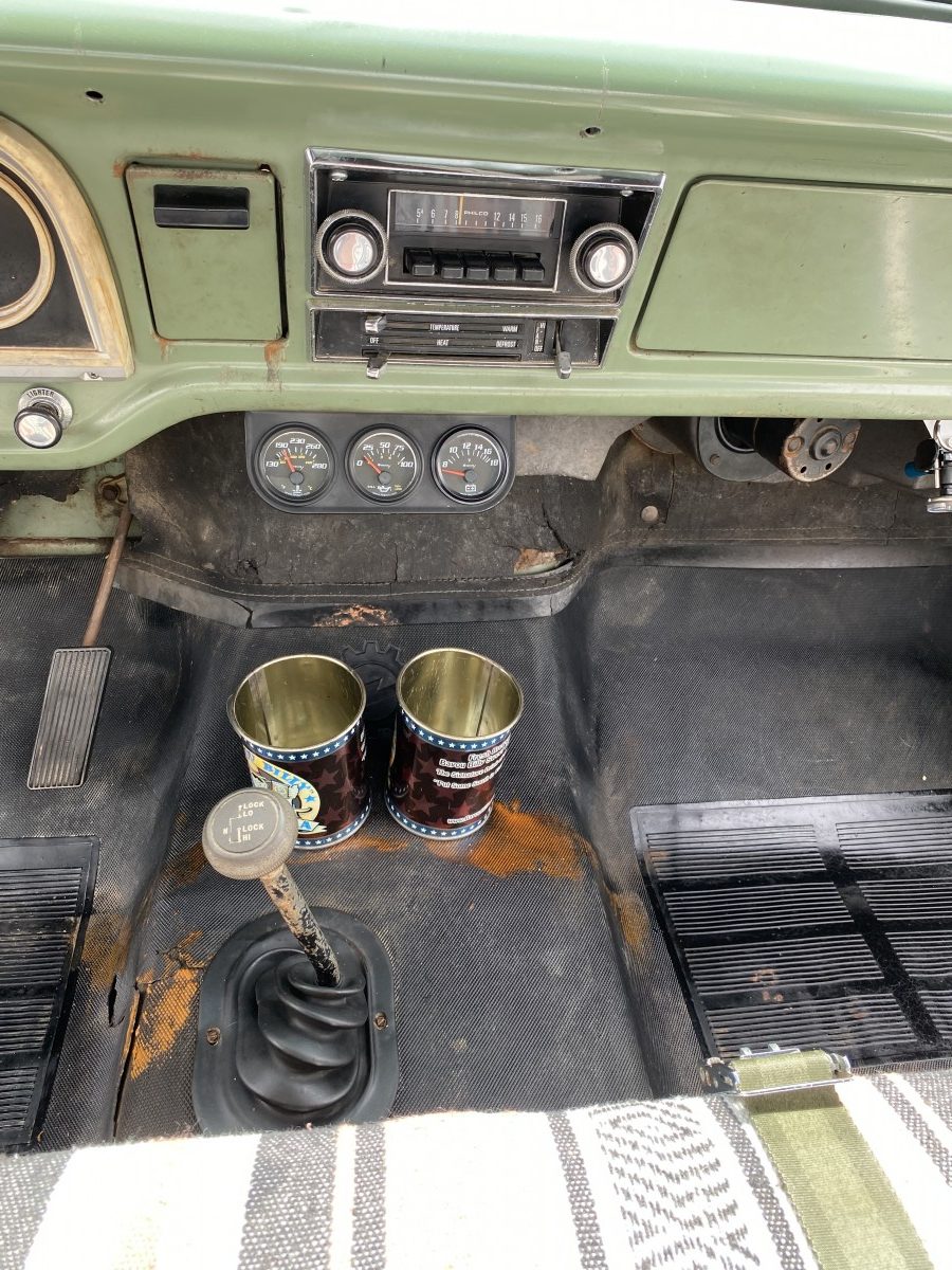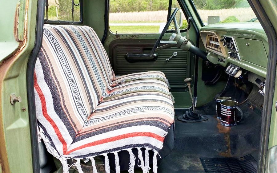 While the outside of the truck still features its original paint, underneath you’ll find a 1976 Ford F250 4×4 chassis and a 390 V8! The combination is a subtle one, but you get the clean looks of the ’71 body style paired with the stance of the F250 4×4 Highboy. You also get the 3-speed C6 automatic transmission, NP205 divorced dual-range transfer case, Dana 60 manual locking front axle, and the Dana 80 4.10:1 rear axle. If you want to go off-roading, it’s hard to beat this setup. Matt doesn’t state why the chassis was swapped, whether it was due to rust or simply the easiest way to get all the F250 hardware under the F100 body, but it looks like the result is well-sorted and ready to enjoy!