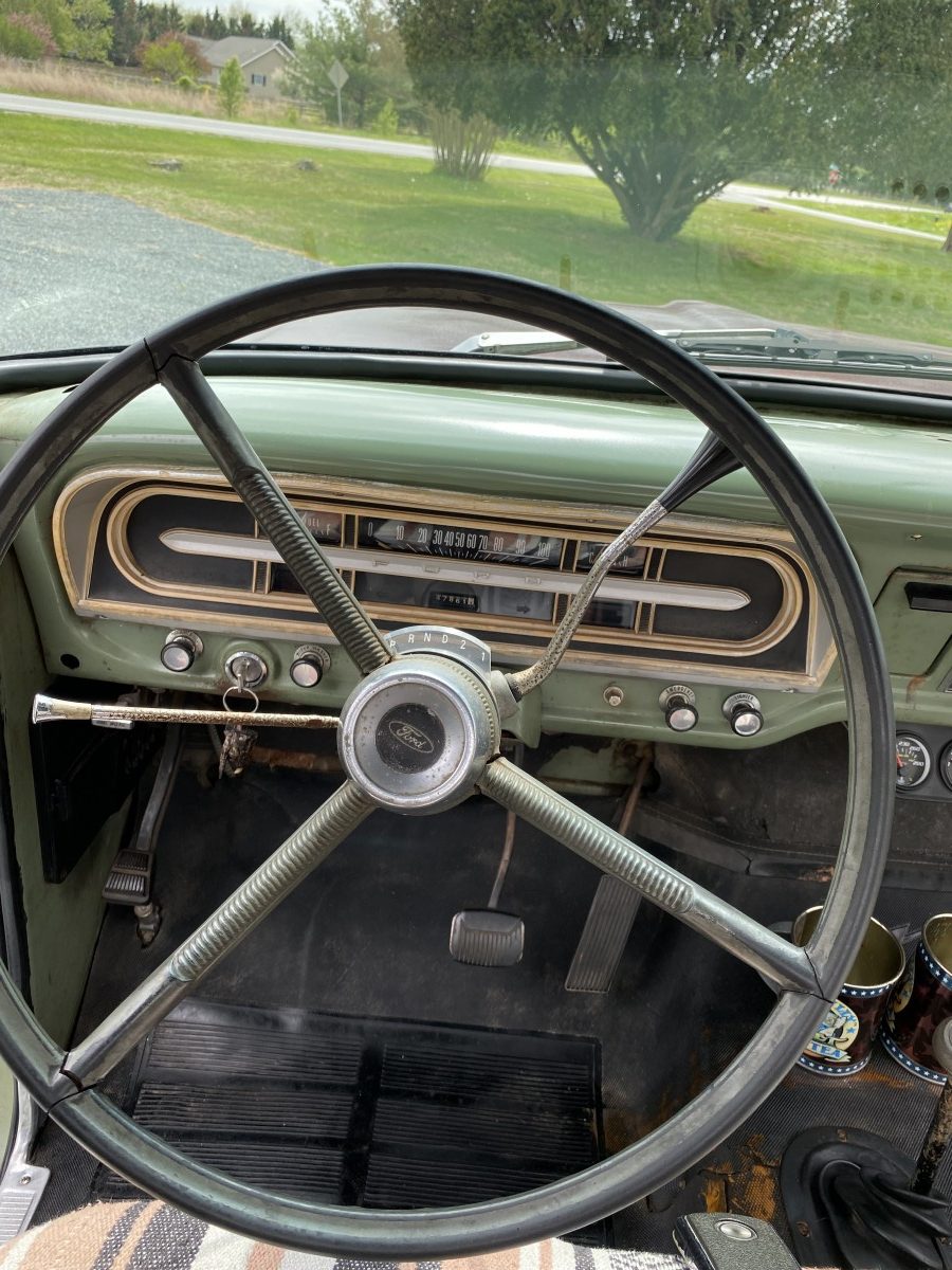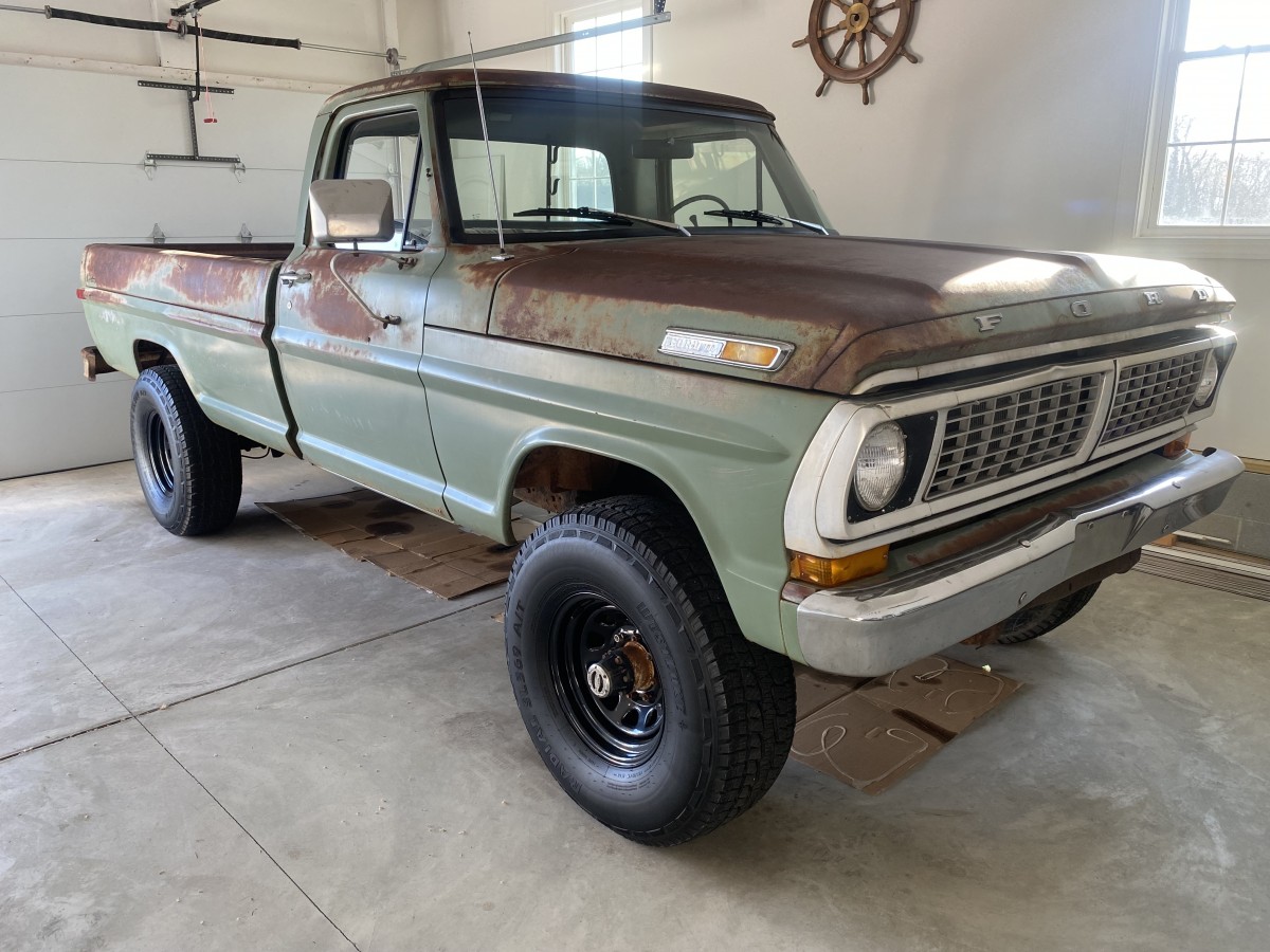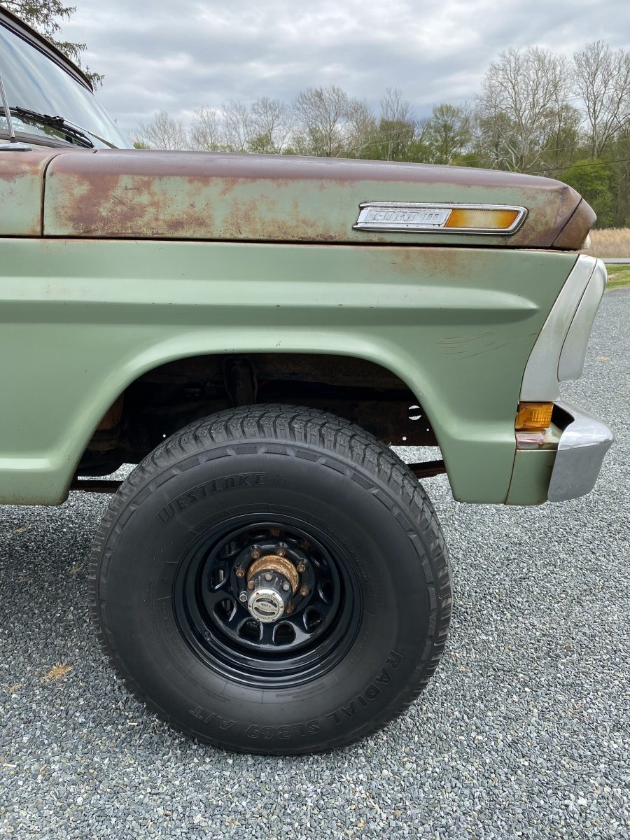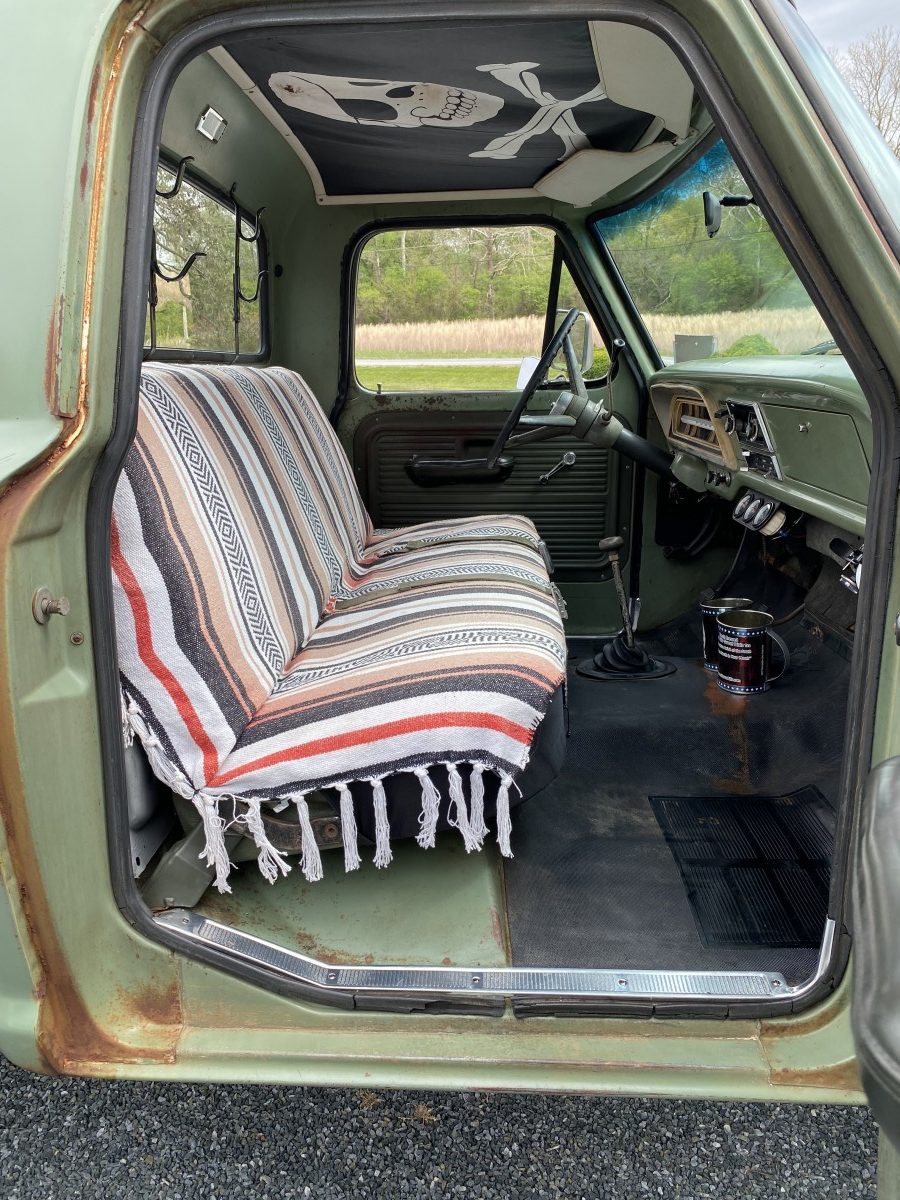 While the outside of the truck still features its original paint, underneath you’ll find a 1976 Ford F250 4×4 chassis and a 390 V8! The combination is a subtle one, but you get the clean looks of the ’71 body style paired with the stance of the F250 4×4 Highboy. You also get the 3-speed C6 automatic transmission, NP205 divorced dual-range transfer case, Dana 60 manual locking front axle, and the Dana 80 4.10:1 rear axle. If you want to go off-roading, it’s hard to beat this setup. Matt doesn’t state why the chassis was swapped, whether it was due to rust or simply the easiest way to get all the F250 hardware under the F100 body, but it looks like the result is well-sorted and ready to enjoy!