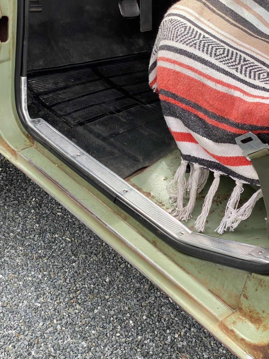 The interior is one area that could use a little work, but overall it looks to be in good shape. While the blanket seat cover is a cheap and effective way of cleaning up the seat, we would want to buy an upholstery kit for it. Thankfully, interior parts are readily available and cheap. An original style vinyl upholstery kit will set you back about $200 and take an afternoon to install.