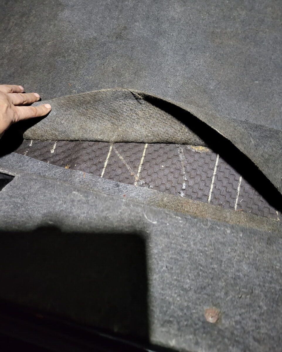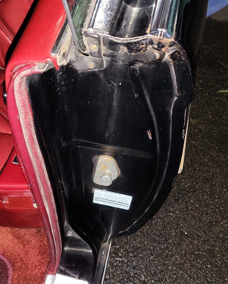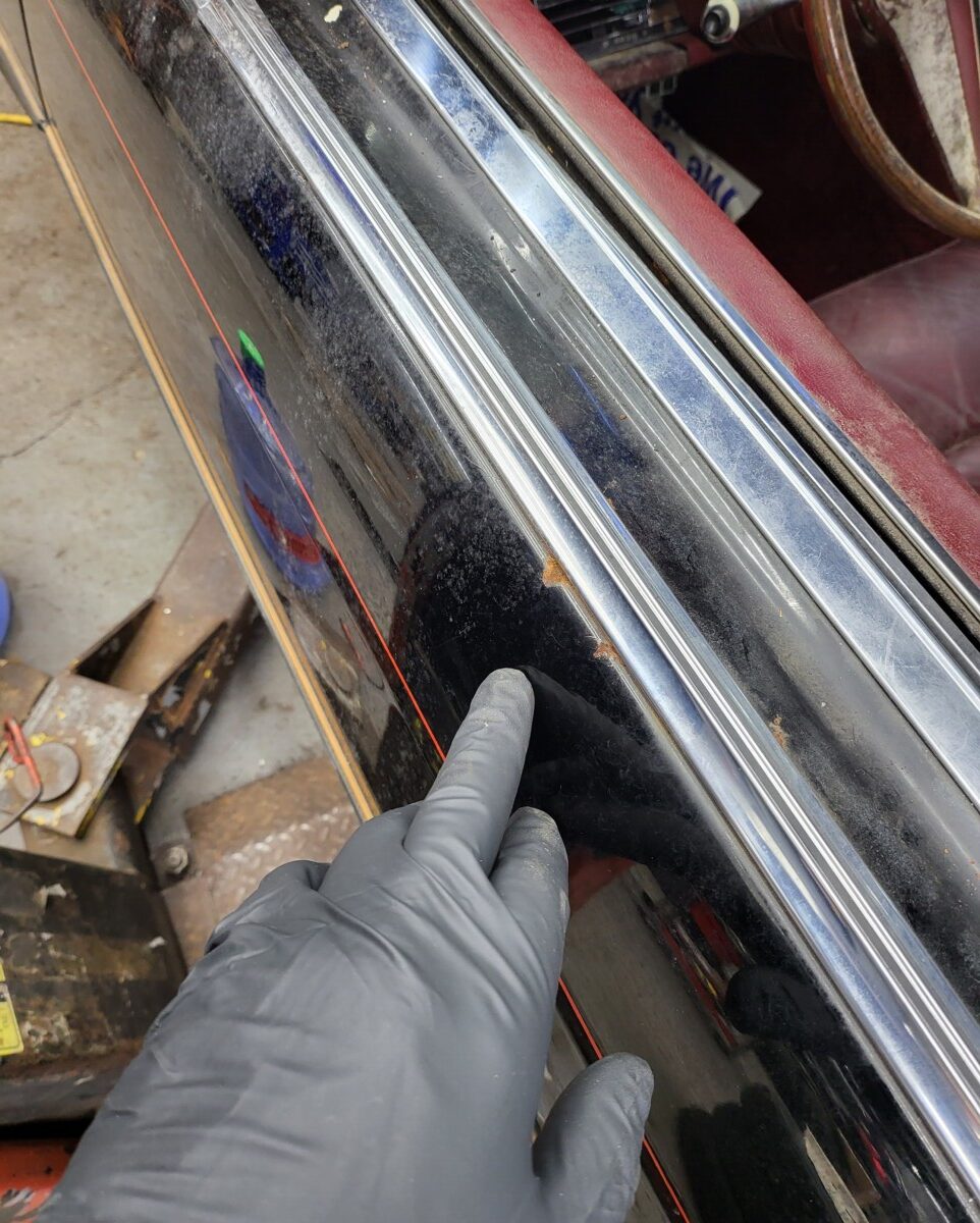 Hi and thanks for checking out my listing ! Where my finger is pointed is the rust I’m speaking of on top of both doors the size of a pea, all quarter panels, door jams and trunk are fine, there’s also just alittle surface rust on the back simulated tire on the trunk. No rodents got in to the car it was parked inside a sealed container, No bubbles under the vinyl top it looks brand new. No bubbles in any of the sides of the car in the known prone areas, paint is original, only the right rear looks to have been touched up.
