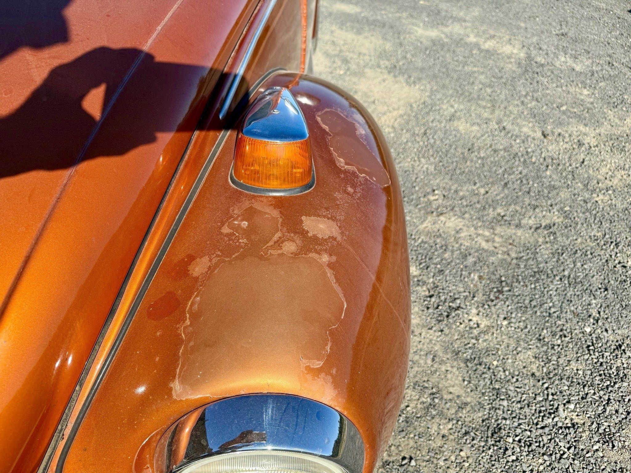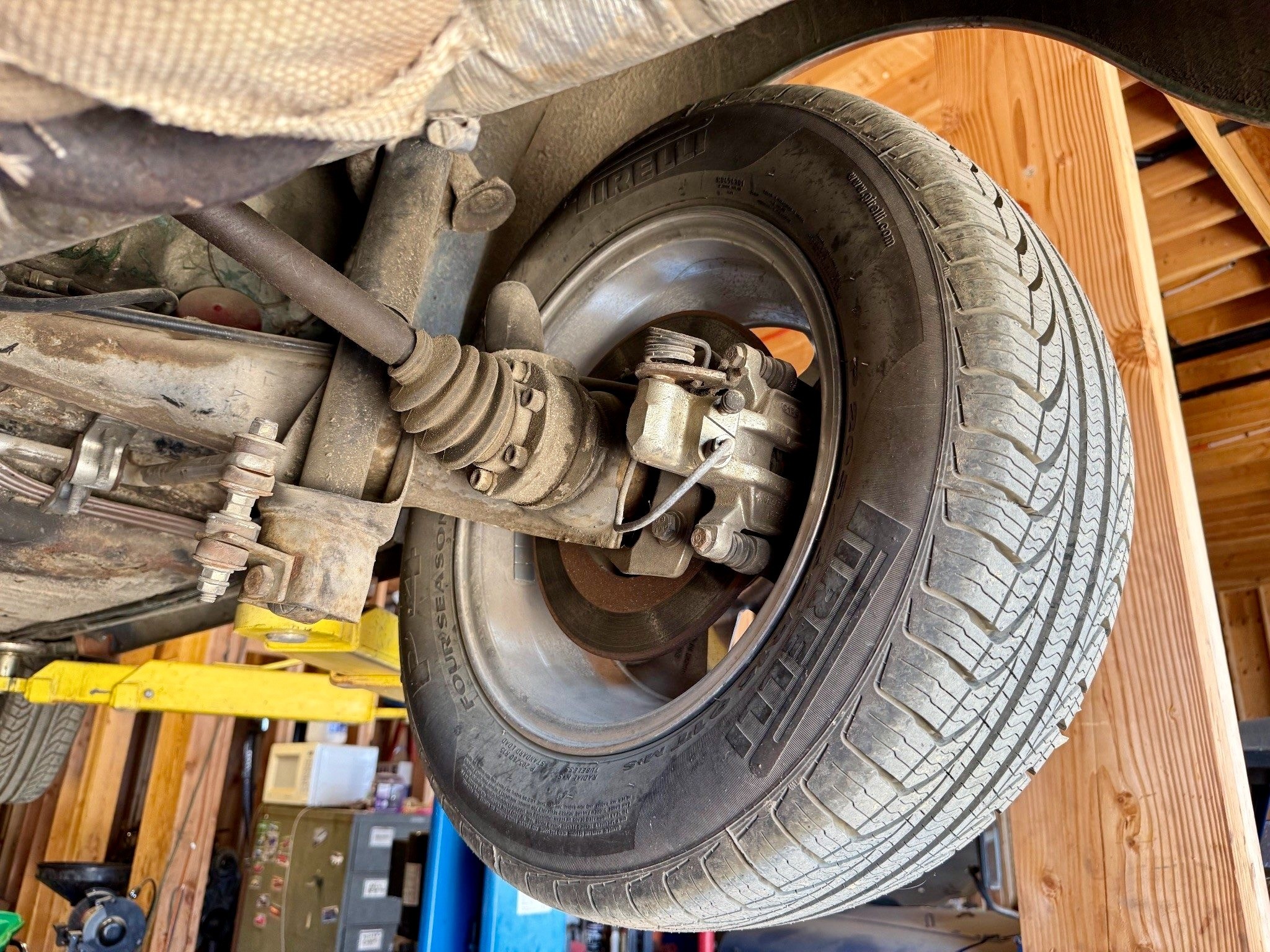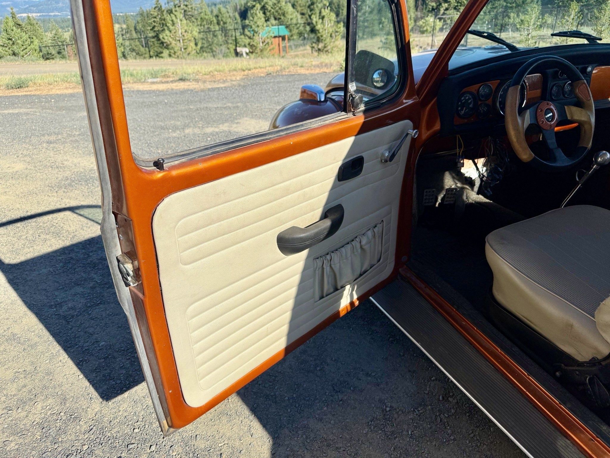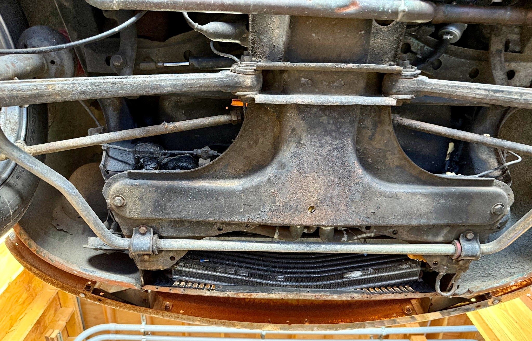 A four-wheel disc brake conversion with a Porsche lug pattern was fitted with Fuchs replica wheels and new Pirelli tires, they are 4.5” in the front and 6” in the rear. The front suspension was lowered, and new struts and rear shocks were installed. Front and rear stabilizer bars were fitted, and an upper strut brace and rear frame brace were installed. To recommission, I replaced the fuel tank, fuel pump, and sending unit. There is an issue with the speedometer, and the odometer operates intermittently. I am working to get the turn signals and wipers to work, and should have that sorted.