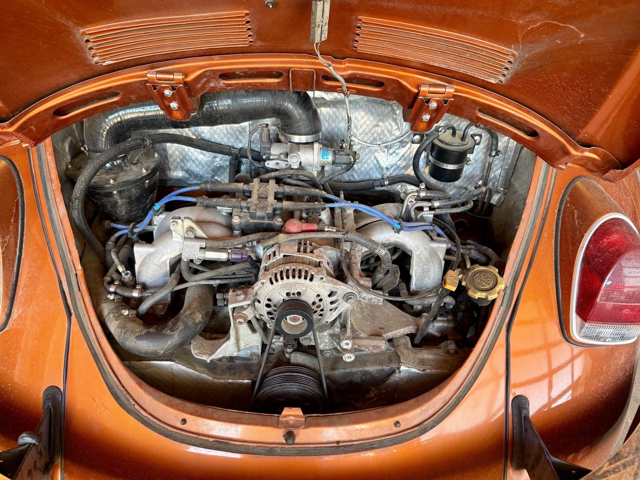 The Beetle is a true automotive icon, having served as transportation for millions of people around the world. They have proven to be dependable, cheap to run, and endlessly customizable. Finding a Beetle with an upgraded engine isn’t all that remarkable, but you really don’t come across many with a Subaru swap that’s complete and as tidy as this one is. David purchased the car in 2006 while working in Southern California. His first car was a 1972 Super Beetle, which he had dreamed of customizing but lacked the means to build at the time. So, he set out building the Beetle he dreamt of in his youth, with a Brazilian-made OEM long block and painted it Honda Tangerine Orange. After a few years of use, he decided it still needed more power. The popular swap at the time was the Subaru 2.2-liter, but after measuring the engine bay, he realized he could fit the EJ25.