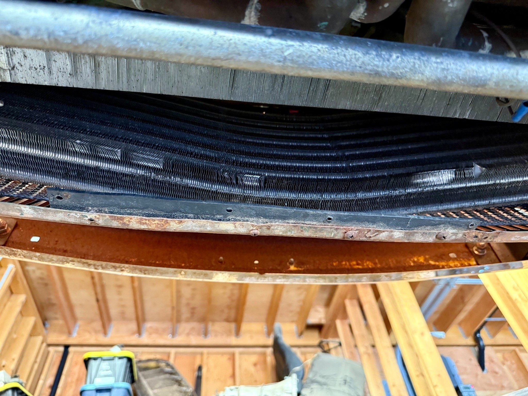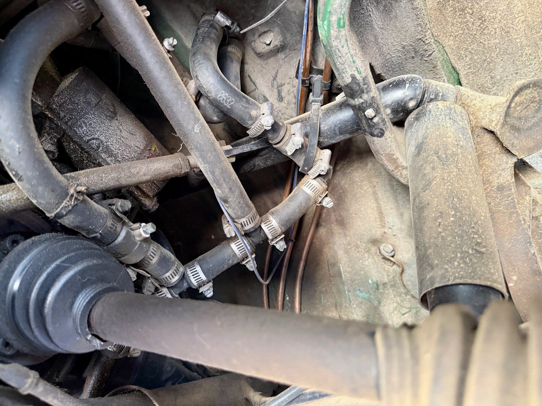 Additionally, I wanted to use the grill below the front bumper, and I sourced a radiator from a Porsche 996, which fit perfectly. Plumbing utilizes copper pipes for additional heat dissipation. The main lines were run inside the tunnel and exited at the frame head, with branches left, right, and center. Each radiator has a degassing fitting that runs to a reservoir inside the luggage area. The system is self-bleeding, and a bleed nipple is located in the engine compartment for initial filling. Fans are controlled by a PWM fan controller that ramps up slowly.