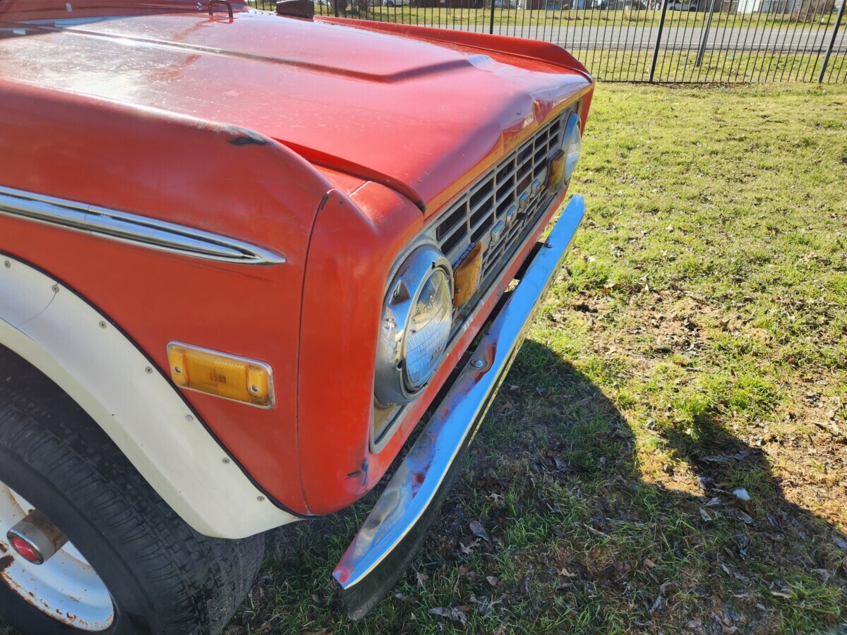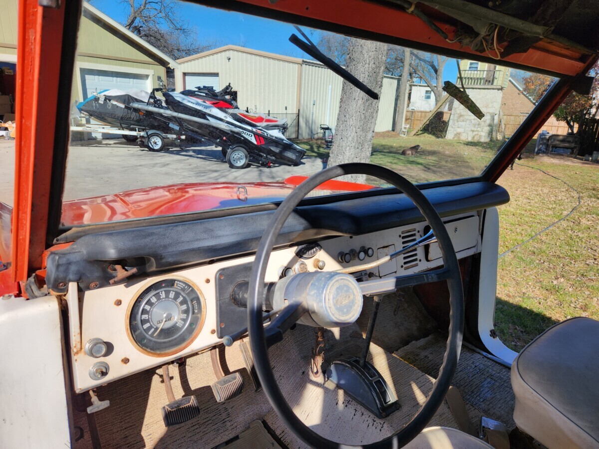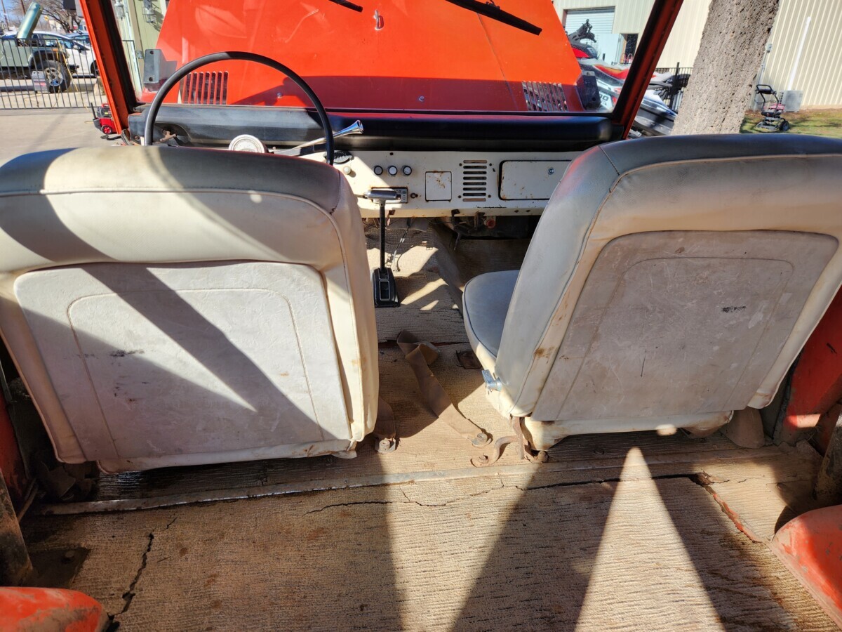 With warm weather and the opportunity for outdoor adventures fast approaching, now may seem the wrong time to purchase a project vehicle like this Bronco. However, nothing could be further from the truth. Like many Broncos from this era, it has rust requiring attention. Surprisingly, none of it is severe, meaning the new owner could enjoy this classic during the upcoming summer, saving it as an excellent restoration project to tackle the following winter. The Calypso Coral paint has peeled away in spots to reveal surface corrosion, but the panels look solid. Prone areas like the lower rear quarter panels and rockers are fine, as are the door pillars. The wheel arches are cut to fit flares to accommodate the larger wheels and tires, but with replacement lower quarter panels retailing for $130 each, reversing this modification will not be complicated or expensive. The seller supplied an excellent array of photos that tell a positive story. The front inner fender wells are among the most solid I’ve seen on a First Generation Bronco, with the same true of the frame and most of the floors. There is steel penetration where the toe boards meet the floor pans and in the seam between the rear inner fender wells and floors, but I believe these flaws are repairable without the buyer resorting to replacement. They face plenty of surface corrosion, but media-blasting should consign that to a distant memory. The top isn’t original and is only sitting in place. It is included, and its condition is good. The trim is intact, and there are no visible glass problems.
