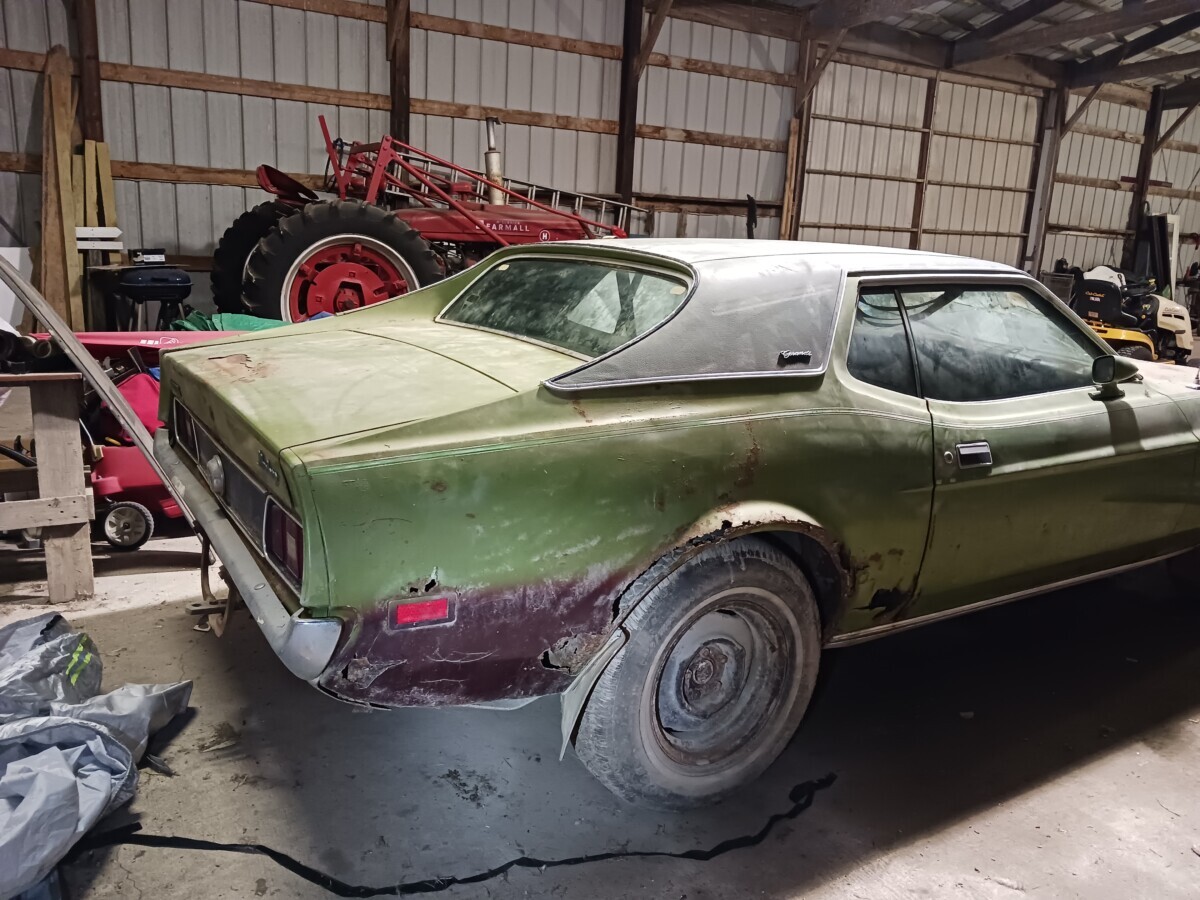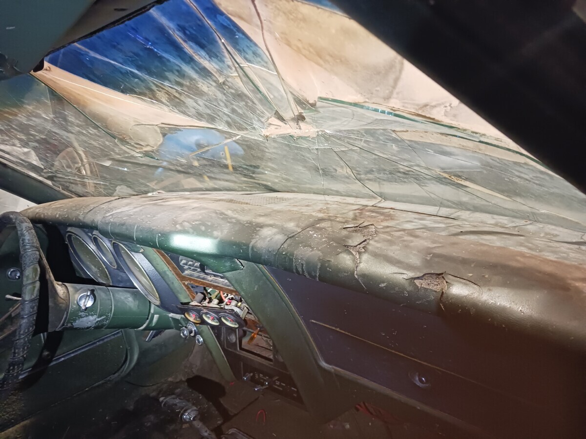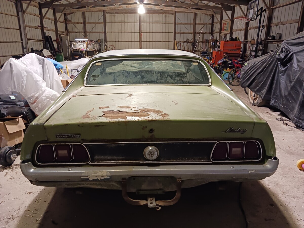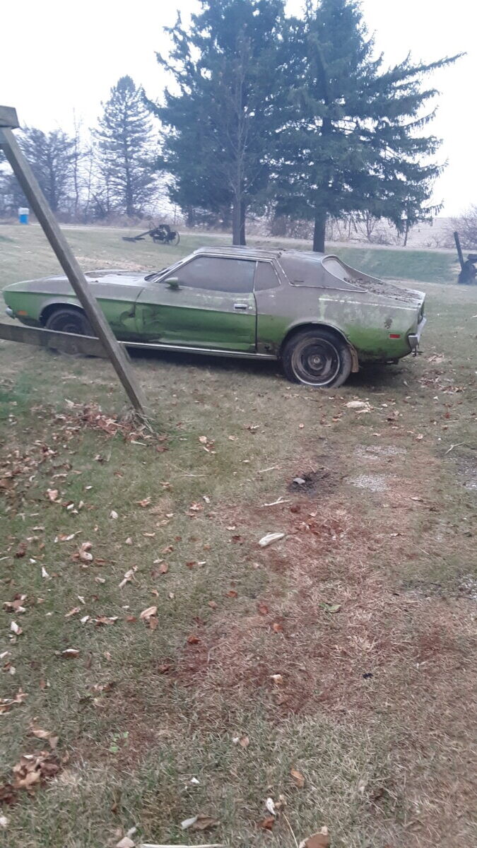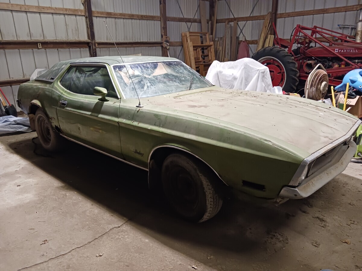 The dirt floor barn was falling down, something fell from the loft and hit the window. I was just glad to get it out before it got crushed. I know it’s not the most desirable model but they can’t all be fastback,mach1 , boss or shelby with manual shift, at least it has a v8.