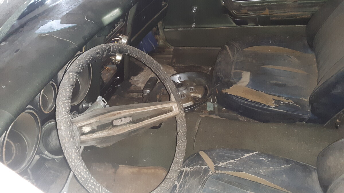 The history of this Mustang is sad. The owner’s mother purchased it used as her first car. She sold it to her brother and his wife, who were T-Boned in a fender bender. The impact damaged the driver’s door and fenders, which may require replacement. The Grande sat exposed to the elements for a few years before being sold to another family member who parked it in a dirt-floored barn. The owner eventually convinced that person to sell it to him, and it finally found its way into a shed with a concrete floor and good weather protection. Years of exposure have taken a toll on this classic, and it now has rust in the usual places you would expect on any First Generation Mustang. The rear quarter panels are bad, with rust in the floors and some visible in the torque box region. There is a heavy coating of surface corrosion on the underside, although the rails look like they might be sound. The Medium Lime paint is beyond its best, with the contrasting Dark Green vinyl top shredded. A falling object broke the windshield, but the remaining glass looks okay. Most trim pieces look salvageable, and I spotted at least two of the stylish original hubcaps. The owner includes a factory Ram Air hood, which was part of his plan to update the Mustang with more sporting credentials during his build. Assessing the photos confirm that even if this Mustang is no longer a viable restoration project, it is a veritable gold mine of factory parts for another build.