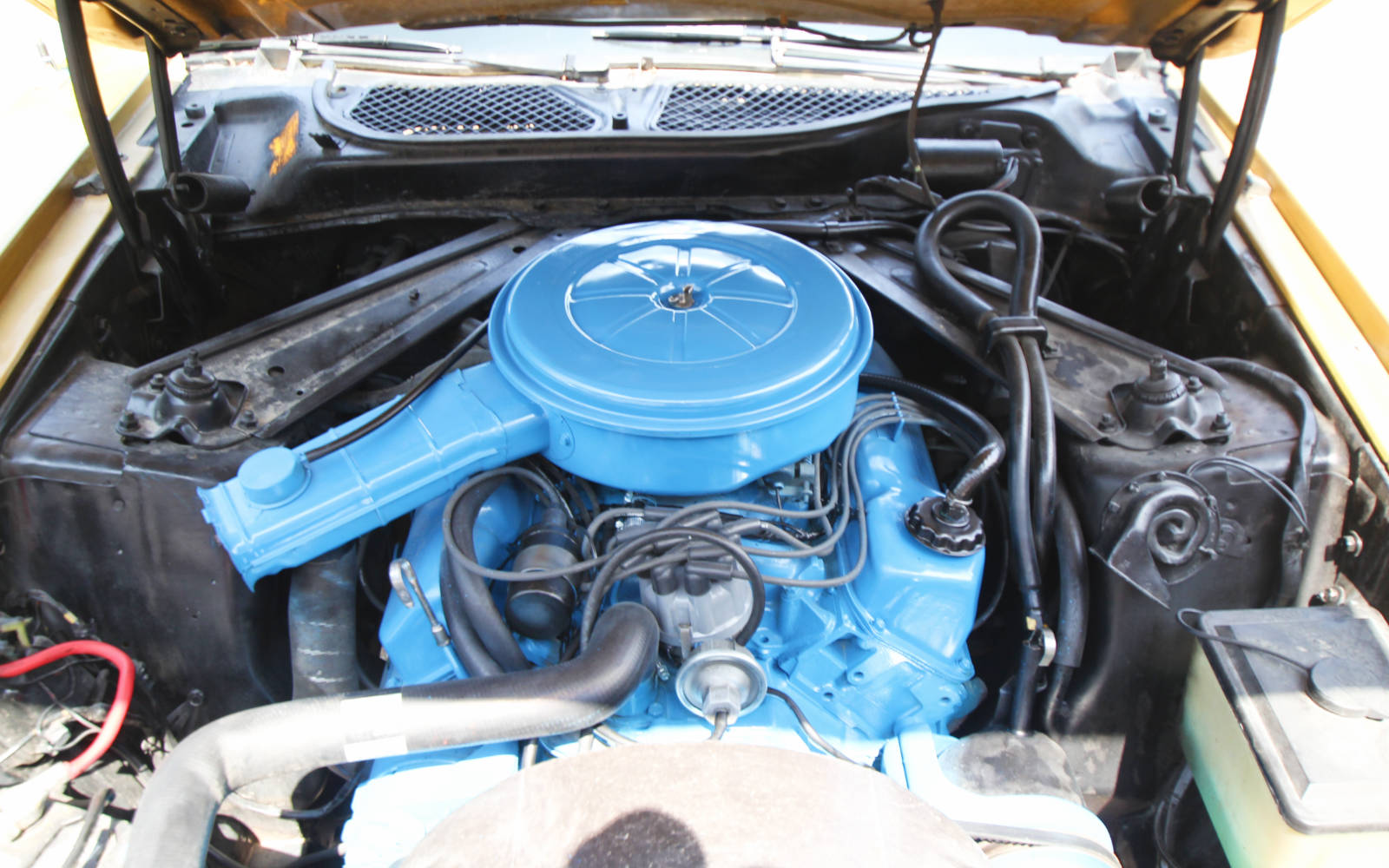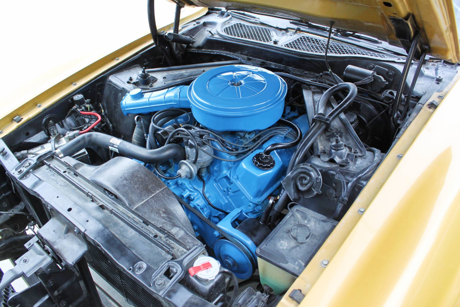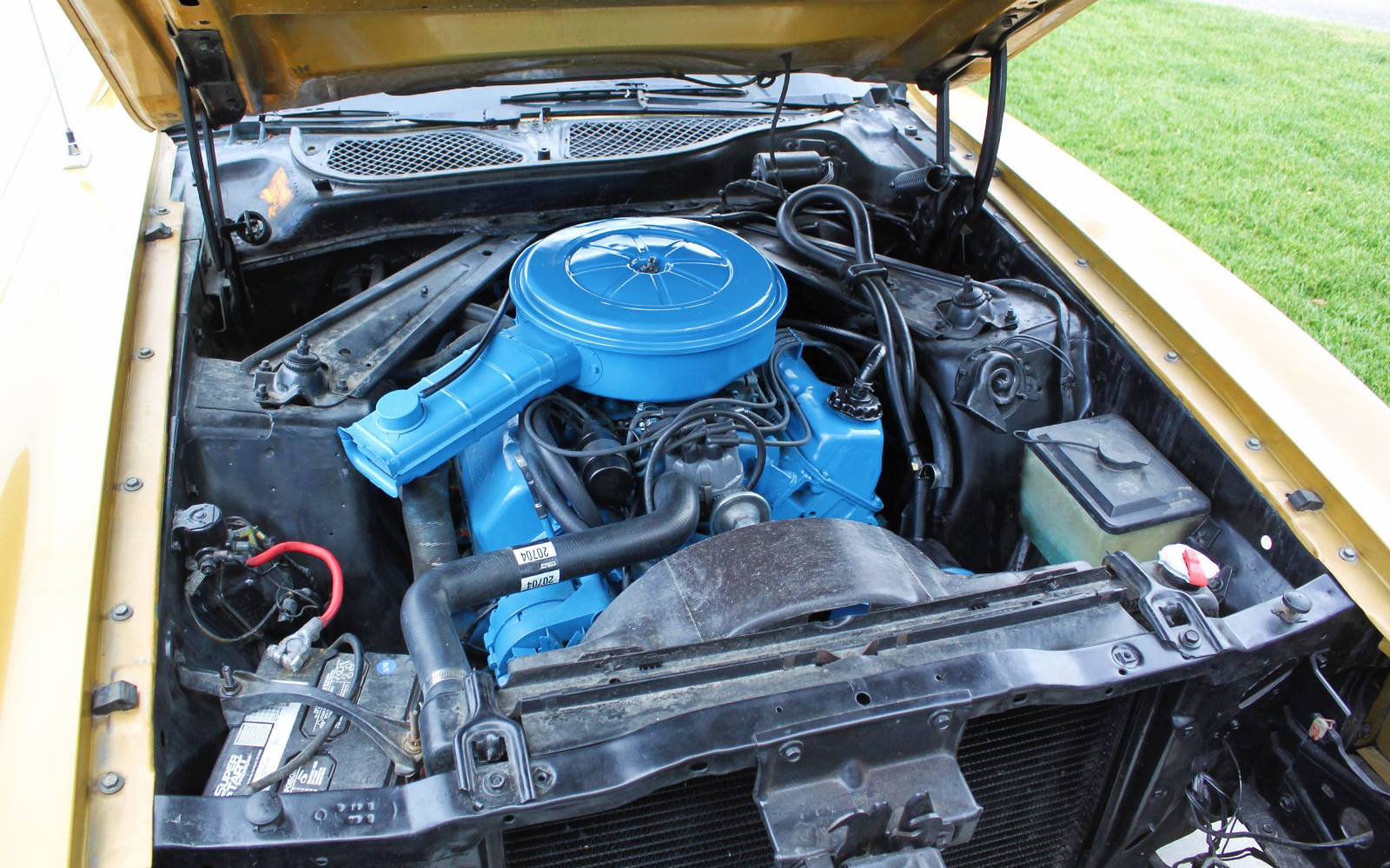 I don’t like the engine paint color either. I think it’s too light to be “Ford blue.” Plus…someone has removed the decal on the air cleaner that states what the engine is. Those decals are available as reproduction items and it would make sense to put one back on; only after the engine is painted the correct color. I also hate the fact that they painted the alternator and the power steering pump. The work of amateurs, for sure. But all of that is trivial stuff, because the car is a great example of the “big pony” Mustangs.