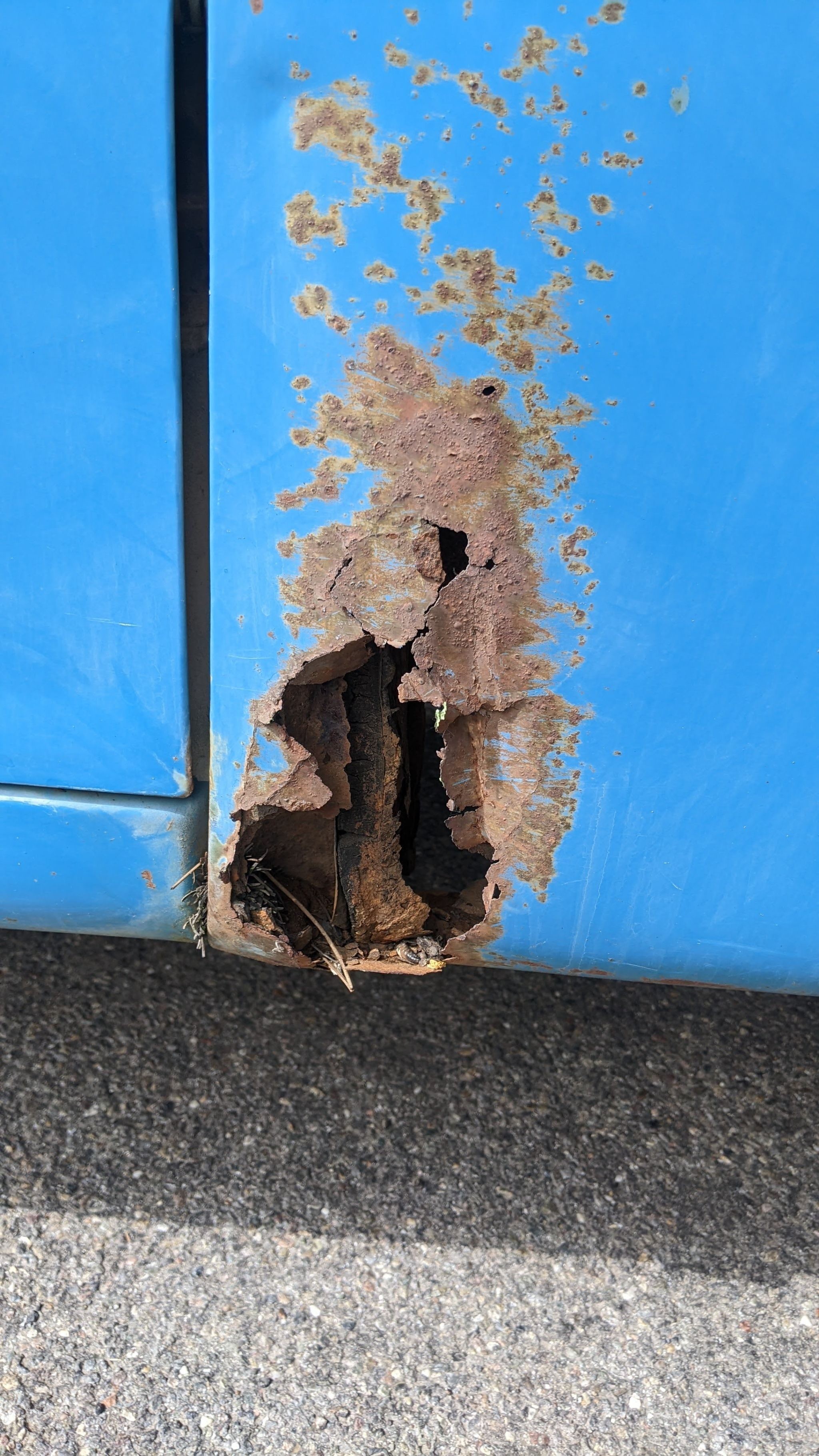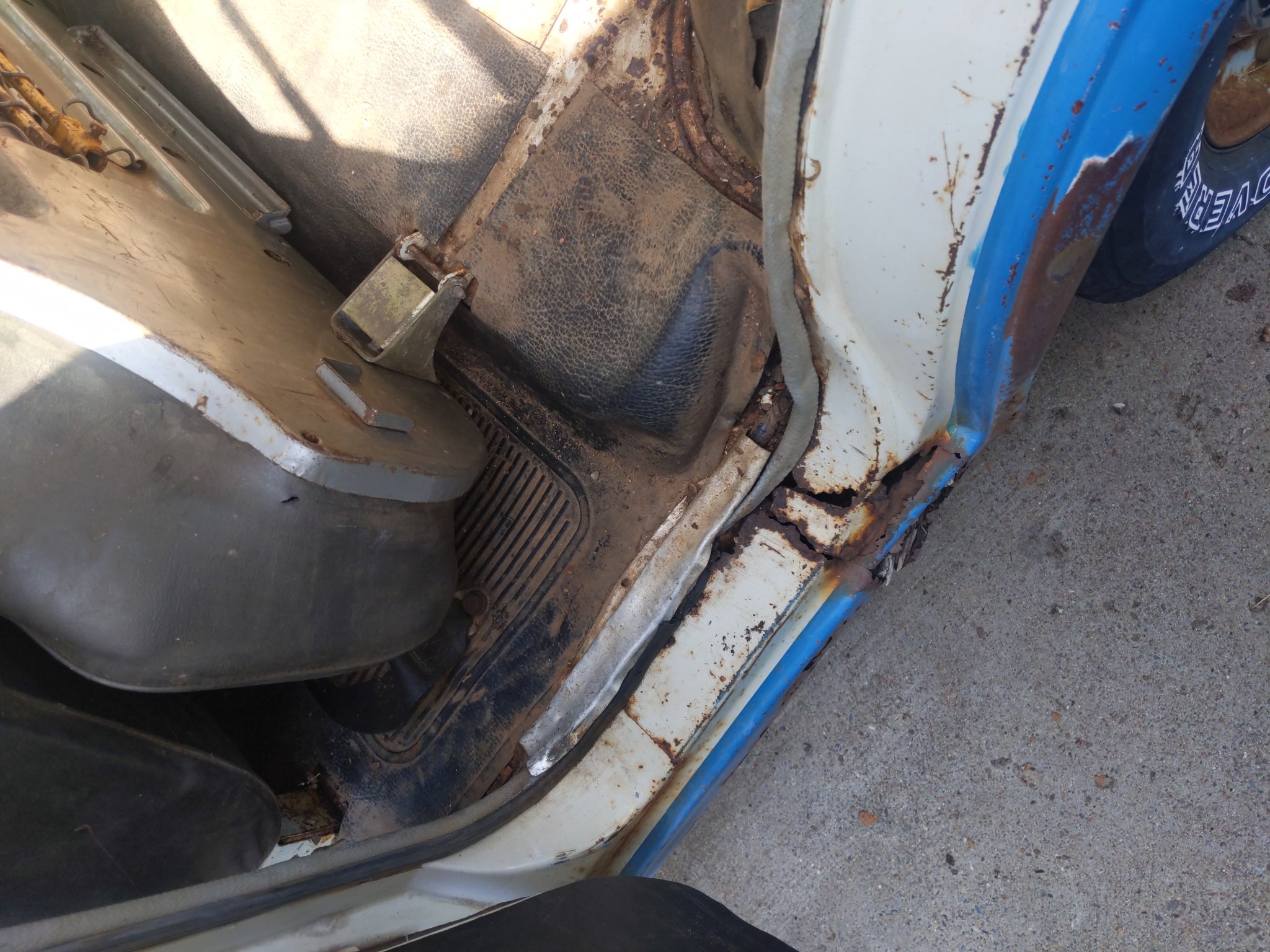 There is some minor floor rust on the drivers side floors both front and rear. I believe the door is reparable for too. Just not by me. Ha ha ha