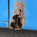 How are the floors, what happened on the old door, hinge broke off the door and can be welded back?
