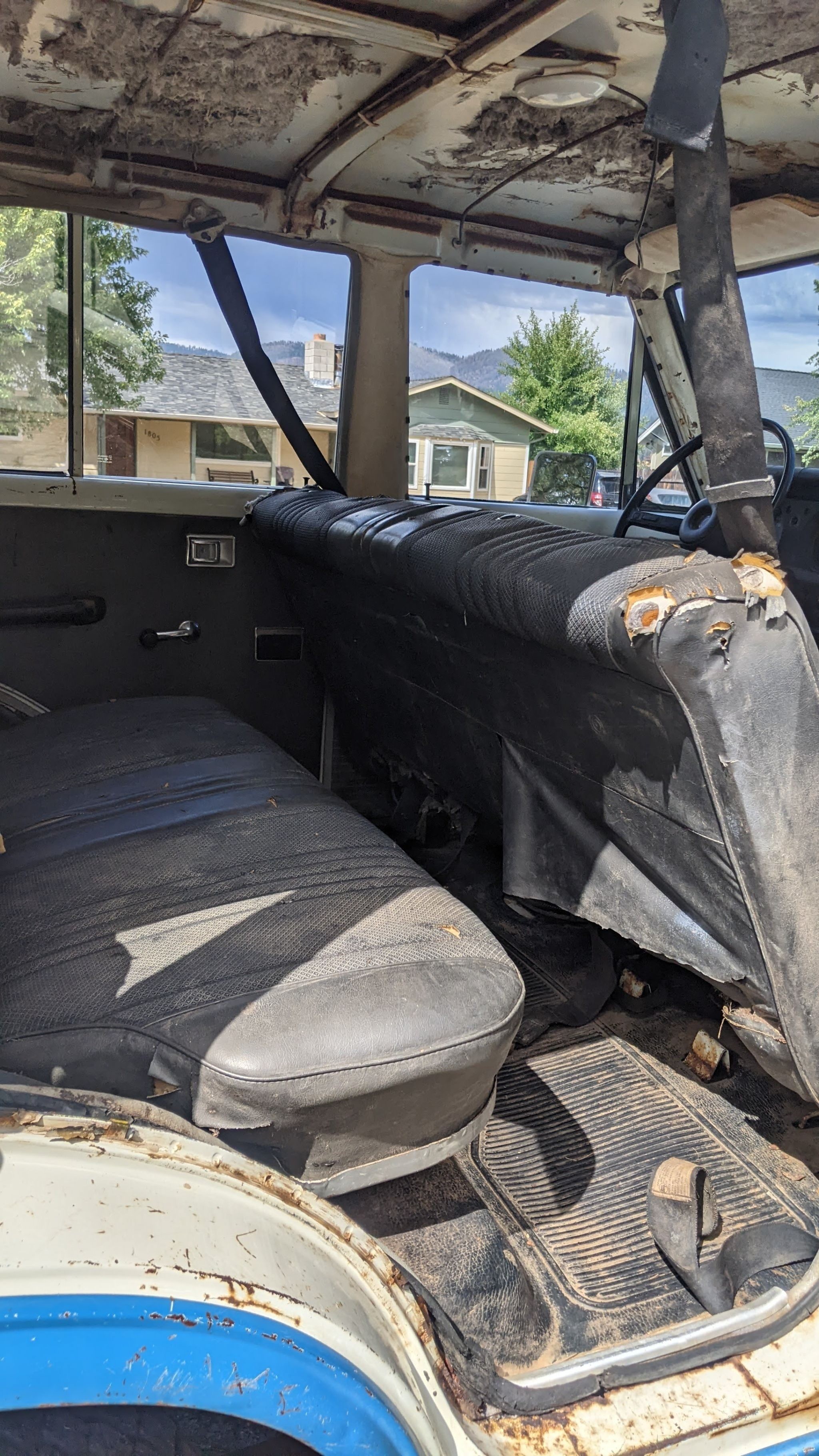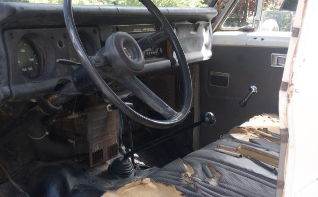 The FJ55’s powerplant is the typically robust 3.9-liter Toyota “F” inline six, producing about 130 horsepower. Like the engine, the driveline was simple: a three-speed manual with a non-synchro first channeling power through a two-speed transfer case. The seller tells us that the engine “starts, idles, and runs with no blowby,” and it “doesn’t make any strange noises, smoke, or overheat.” The brakes work, but they might need some adjustment to raise the pedal a bit.