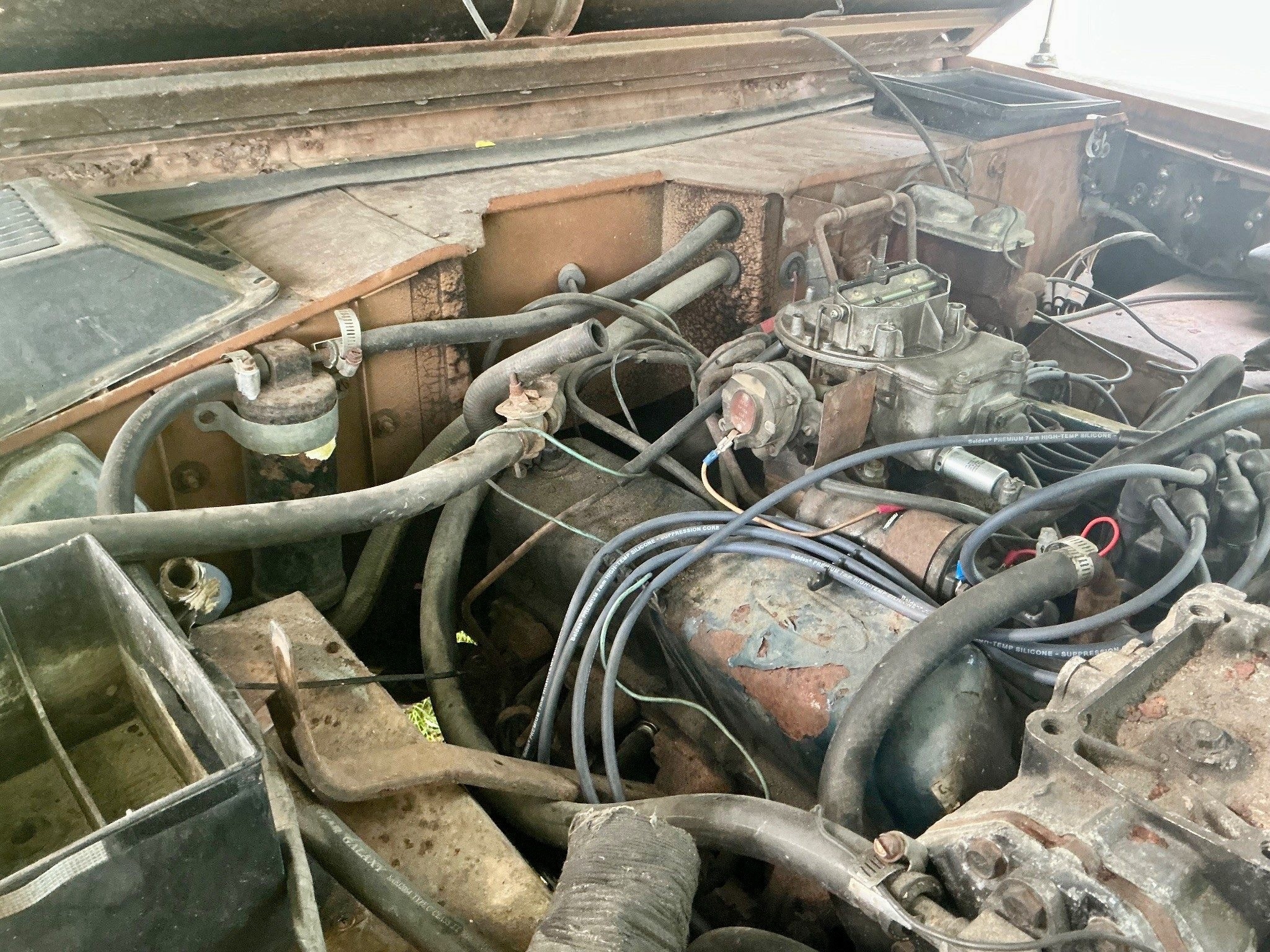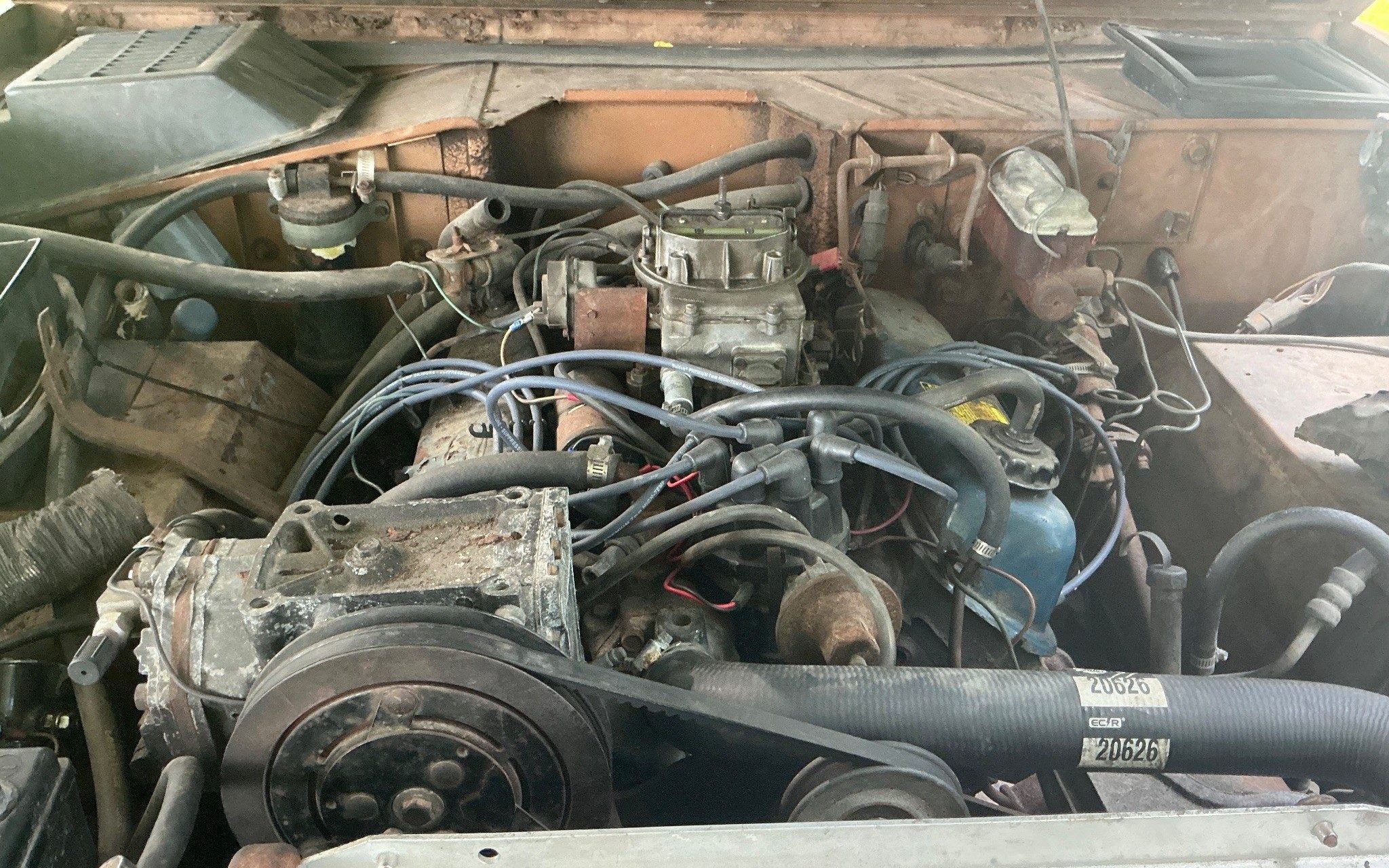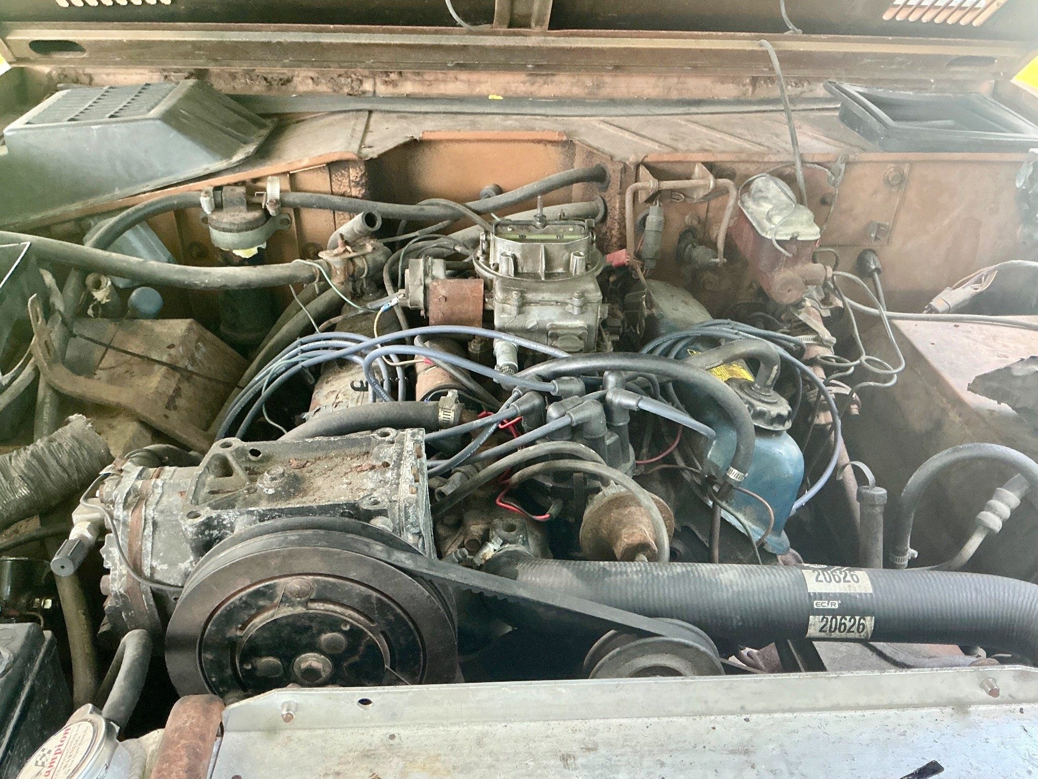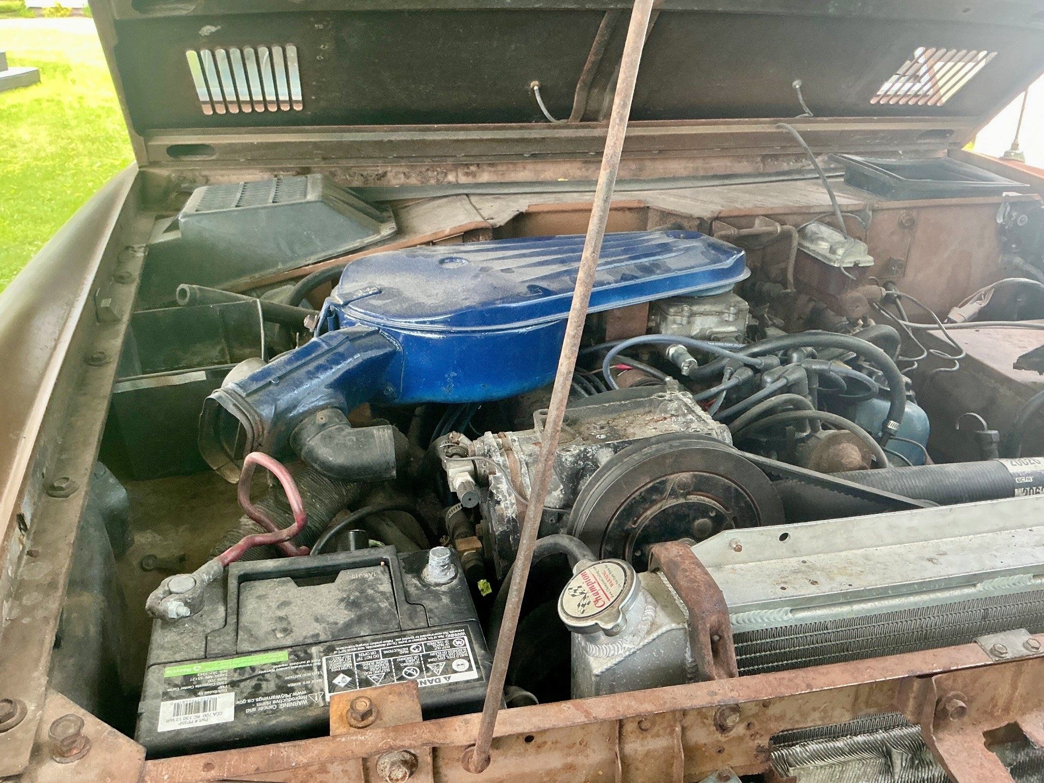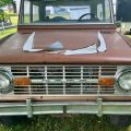 The interior has the “Ranger Package,” too. That included a color-keyed instrument panel, full carpeting (missing here), cloth-and-vinyl seat trim (in ginger on this truck), hood and lower bodyside tape stripes, swing-away spare tire carrier, and more. The interior will need some work, but the Bronco is so popular that you’ll spend days flipping through parts catalogs from various suppliers. One option that the original owner did not order was the automatic transmission, meaning that you’ll get a fully synchronized three-speed manual.