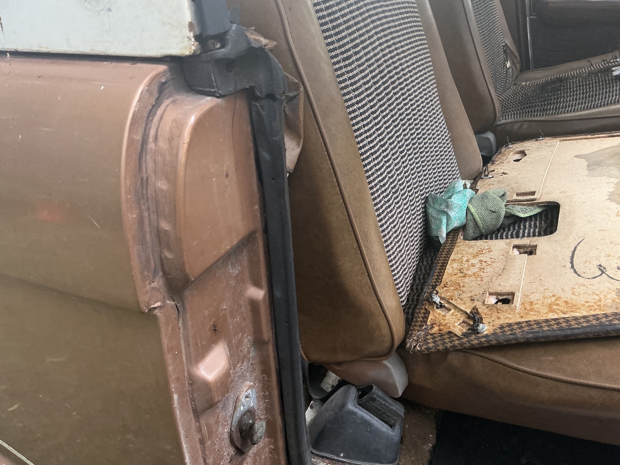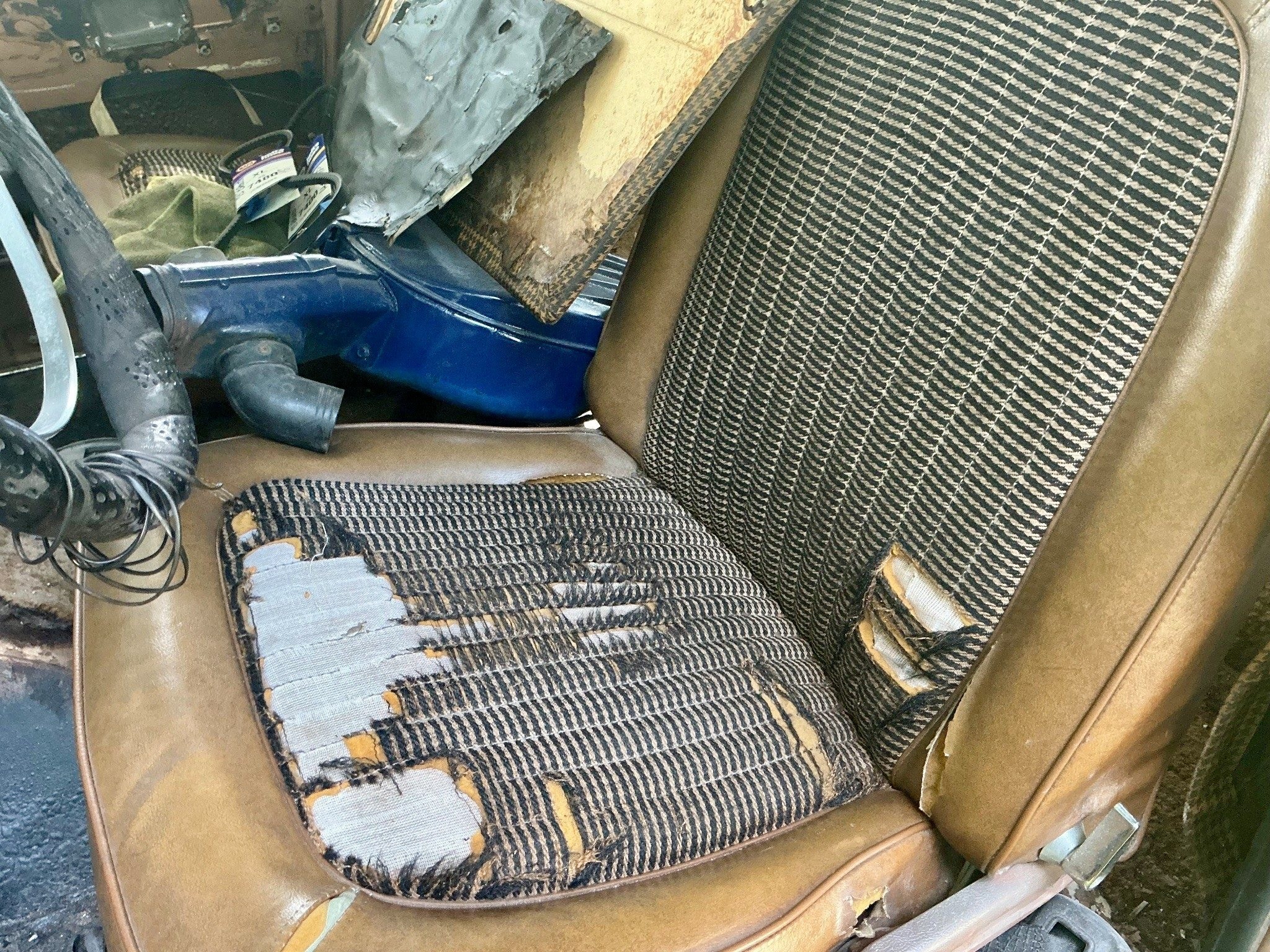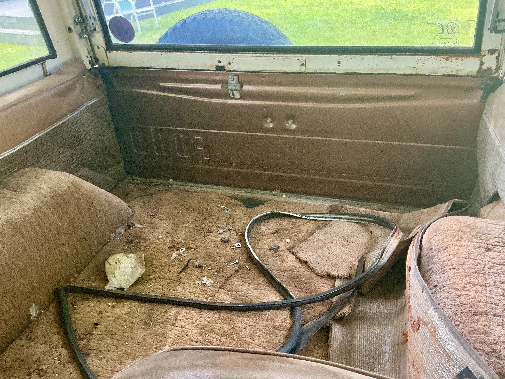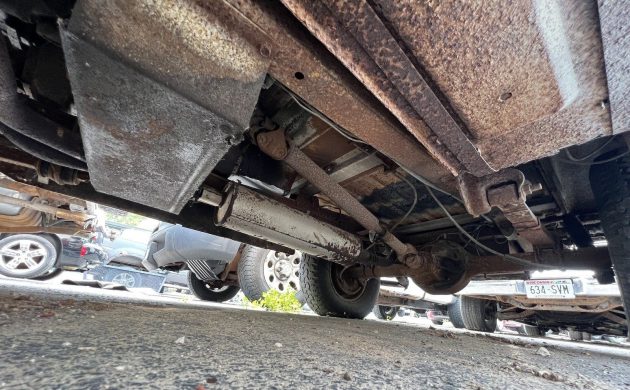 That power is channeled to a 3.50:1 axle ratio in the Ford 9″ in the back, and what should be a Dana 44 up front (with a Dana 20 transfer case in between). It was also factory equipped with skid plates, such as the one you see above. Compared to many early Broncos, this one is fundamentally rust-free (of course, I’m exaggerating, but just a bit). If you’ve shopped for them online, you know that many of them are patched together in a variety of creative ways (no judgment, just the reality of the Bronco world). You’ll notice an aftermarket floor pan in one of the pictures, but otherwise this has been amazingly well-preserved.