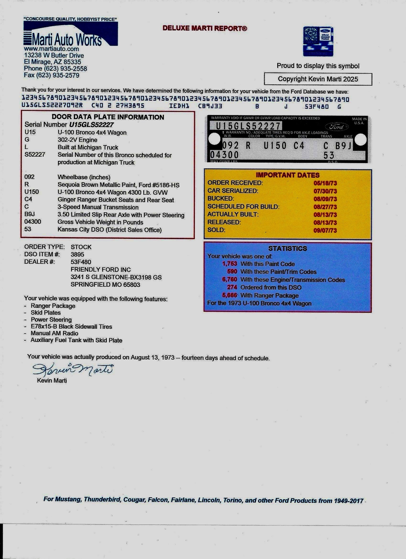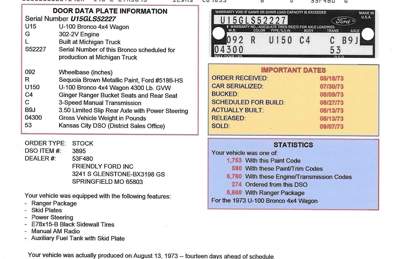 The original owner of this ’73 decided late in the year that they wanted a Bronco; the Marti Report says that it was ordered in June and not built until August of 1973, which is getting quite late when it comes to model years. Regardless, there must have been a giant “X” on the order form, because it has most of the “luxury” options one could choose in a truck that was not inherently luxurious. It has dealer-added air conditioning (the seller claims the system blows cool!) and power steering, both powered by the top-of-the-line 302 V8, which made 139 horsepower in 1973. Given the Bronco’s relatively light weight, there’s plenty of punch under the hood for everyday collector-car fun. You also will have a hard time finding a more reliable powerplant; with its so-simple-it’s-brilliant Motorcraft two-barrel on top and proven small-block architecture, it’s easy to work on and easy to find parts for. The seller states that the engine and transmission are numbers-matching.