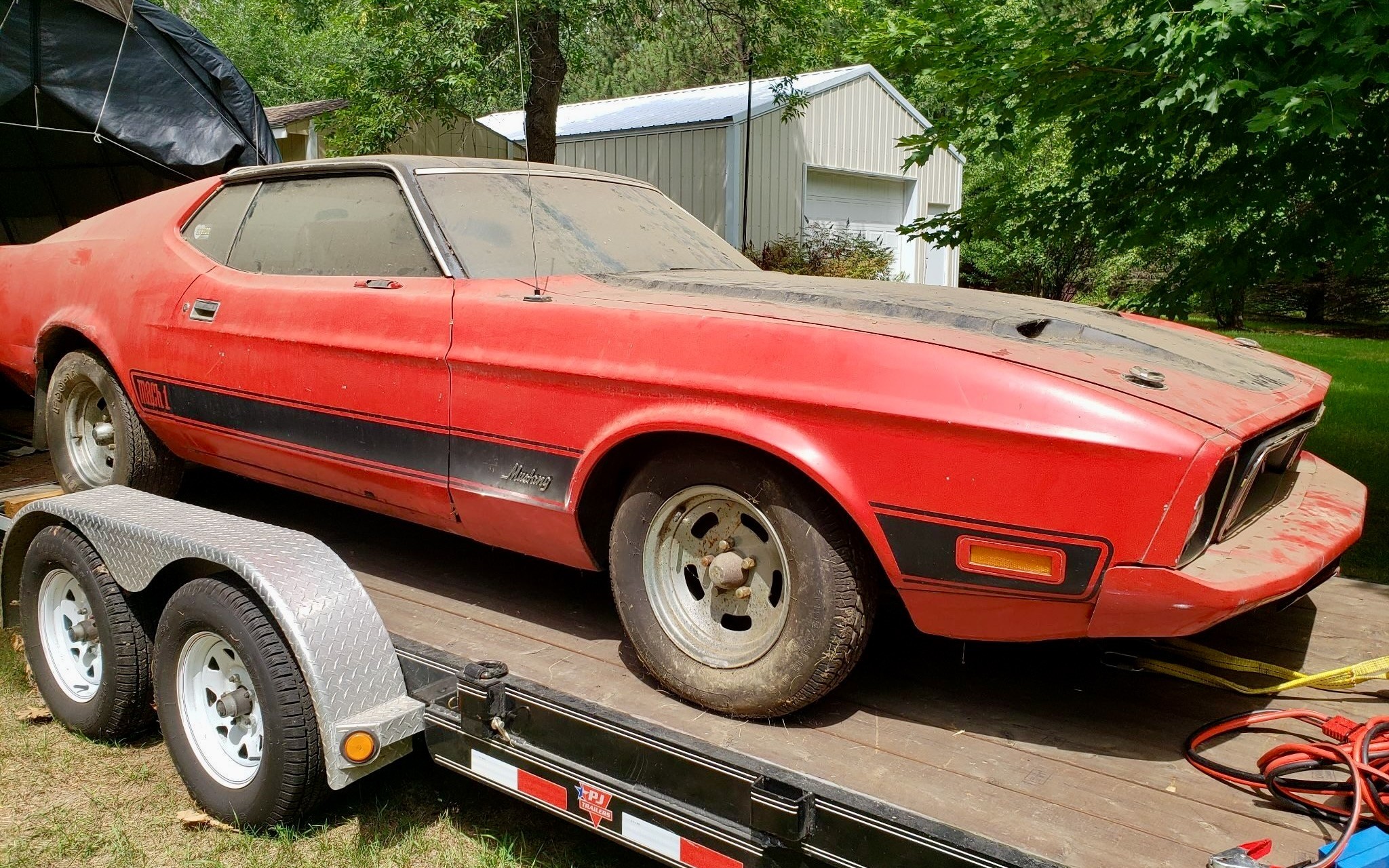 If you’ve been on the hunt for a Mach 1 Mustang barn find, this could be the car for you! It’s been parked for the past 28 years. The seller has realized that they aren’t going to get around to fixing it up, so they are offering it here as a Barn Finds Auction with a very reasonable reserve. As far as ’73 Mustangs go, this one is well optioned as it’s a Mach 1 with the 351 Cobra Jet V8 paired to a 4-speed manual. It’s located in Isanti, Minnesota, and has a clean title.