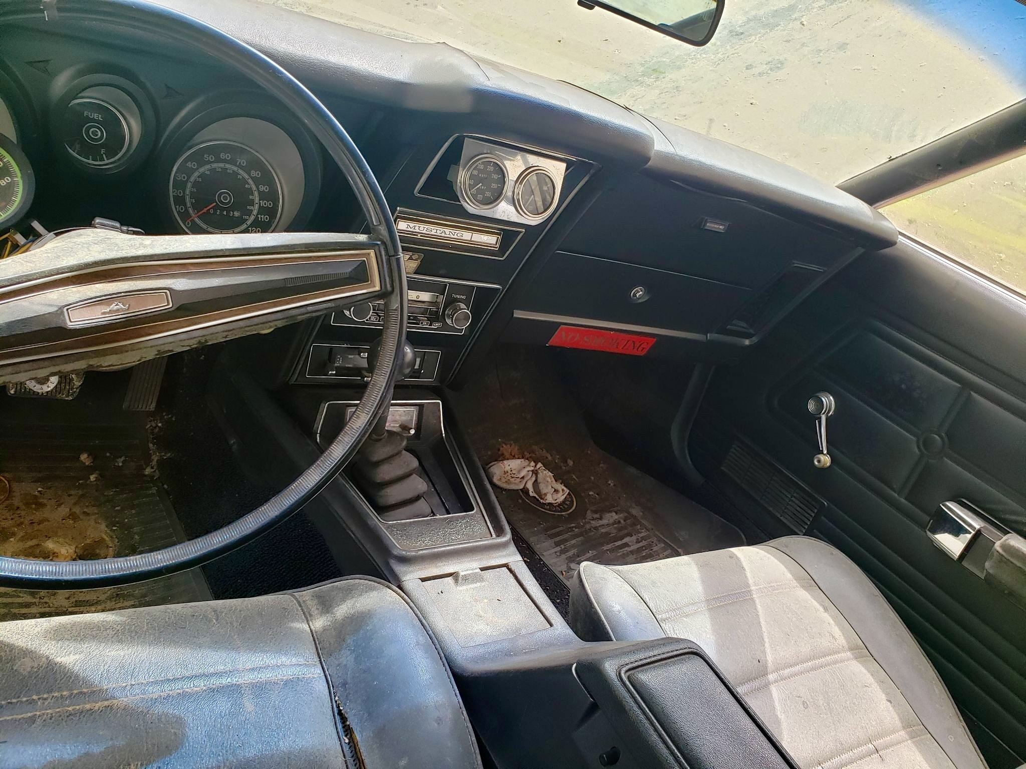 I had an 73 Torino with the Q motor and a 4’speed. Very nice driver. It had 256,000 miles on it and I could still burn rubber up into 3rd gear. All original from the ram air cleaner down to the original exhaust. It did use some oil. This Mustang would have had a vacuum operated flap on the side of the air cleaner and a chrome lid. The present air cleaner needs to go as they are a fire hazard if the carb backfires – personal experience! This Mustang would be a great driver with some work.