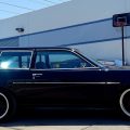 Cosmetically, this wagon has been tastefully modified with a tucked front bumper, rear roll pan, monochrome de-badging, and a slightly lowered stance. Rolling on 17-inch Cobra wheels and fitted with disc brakes, the look is both modernized and clean, while retaining the car’s original character.