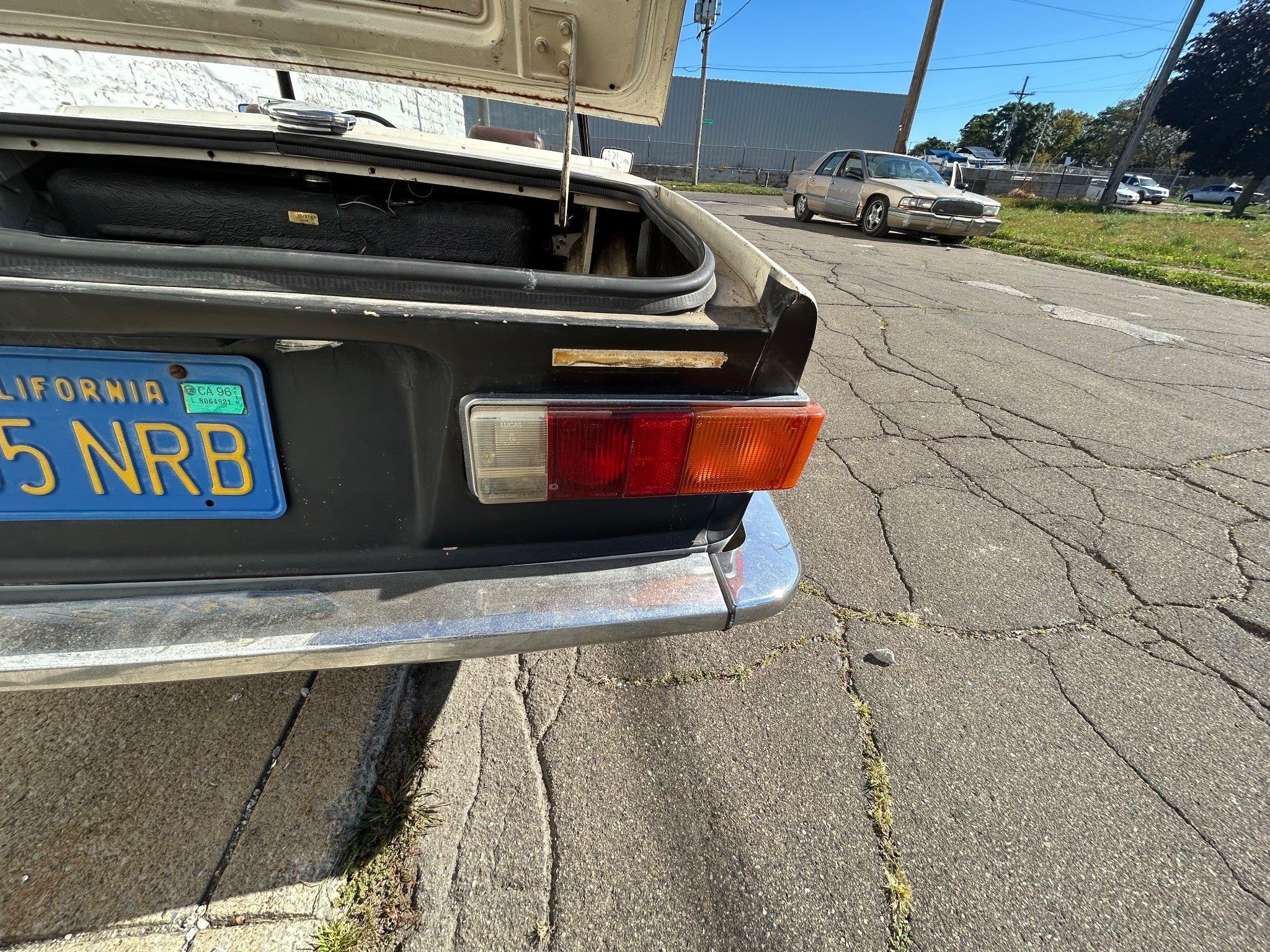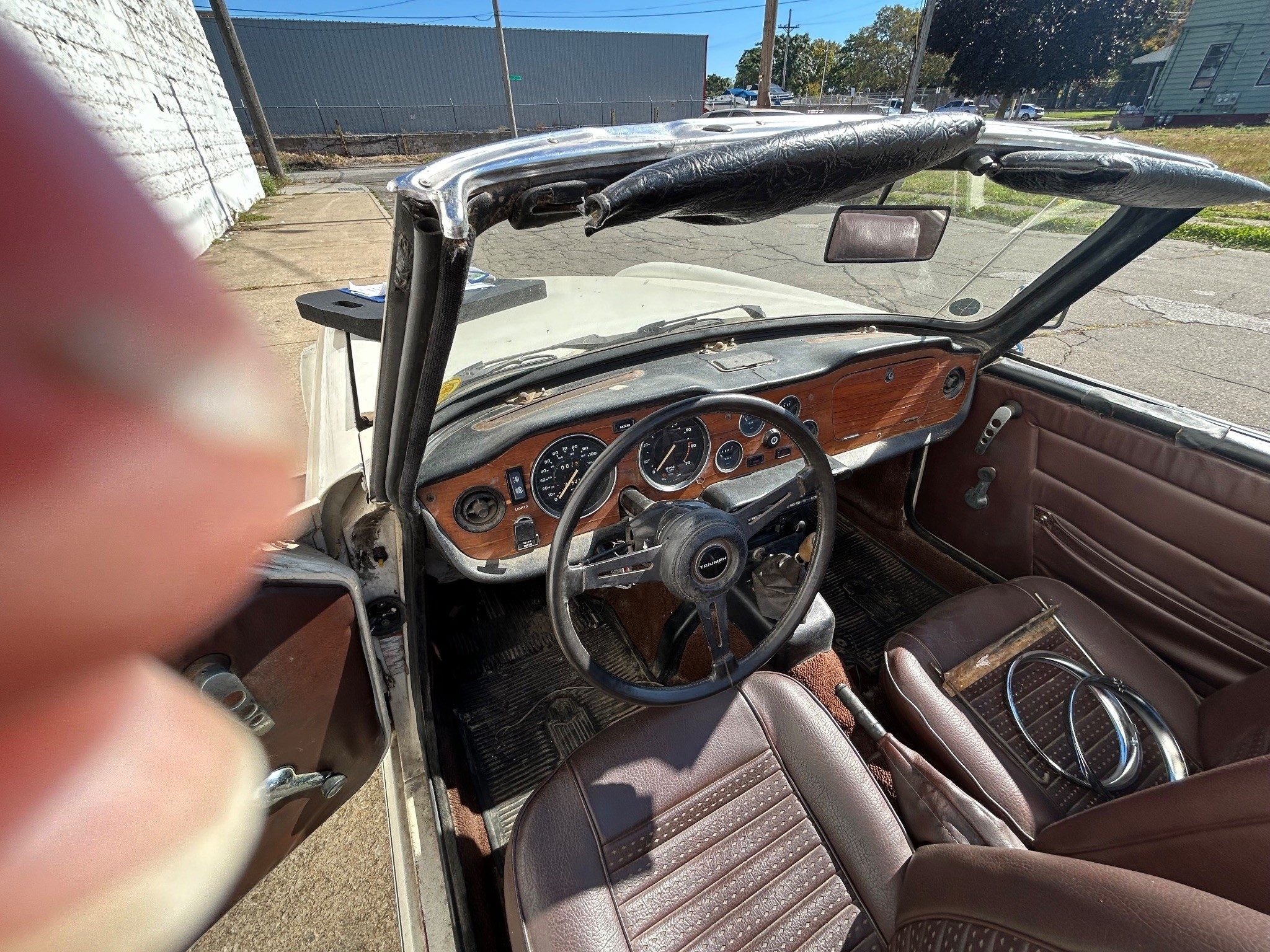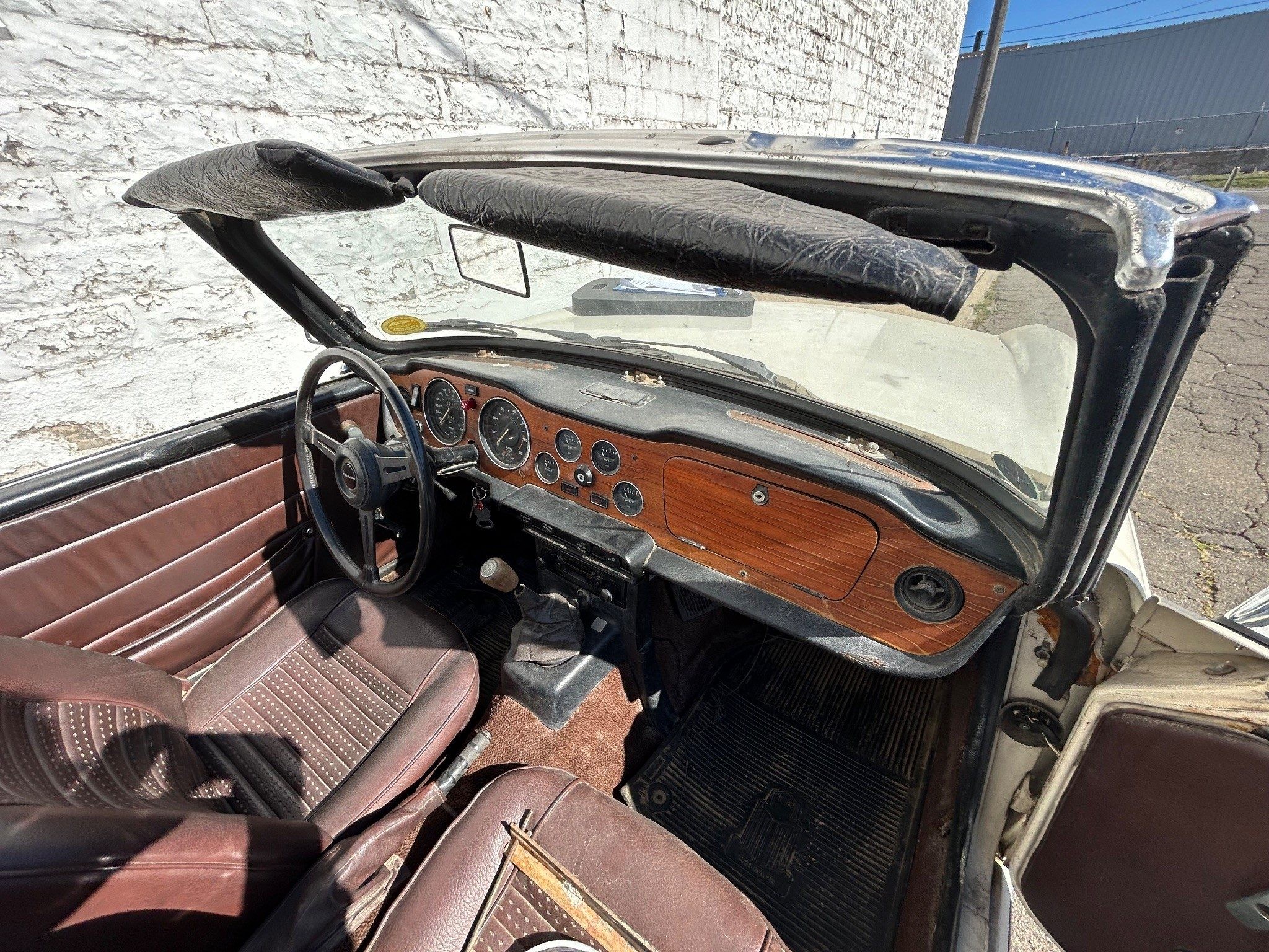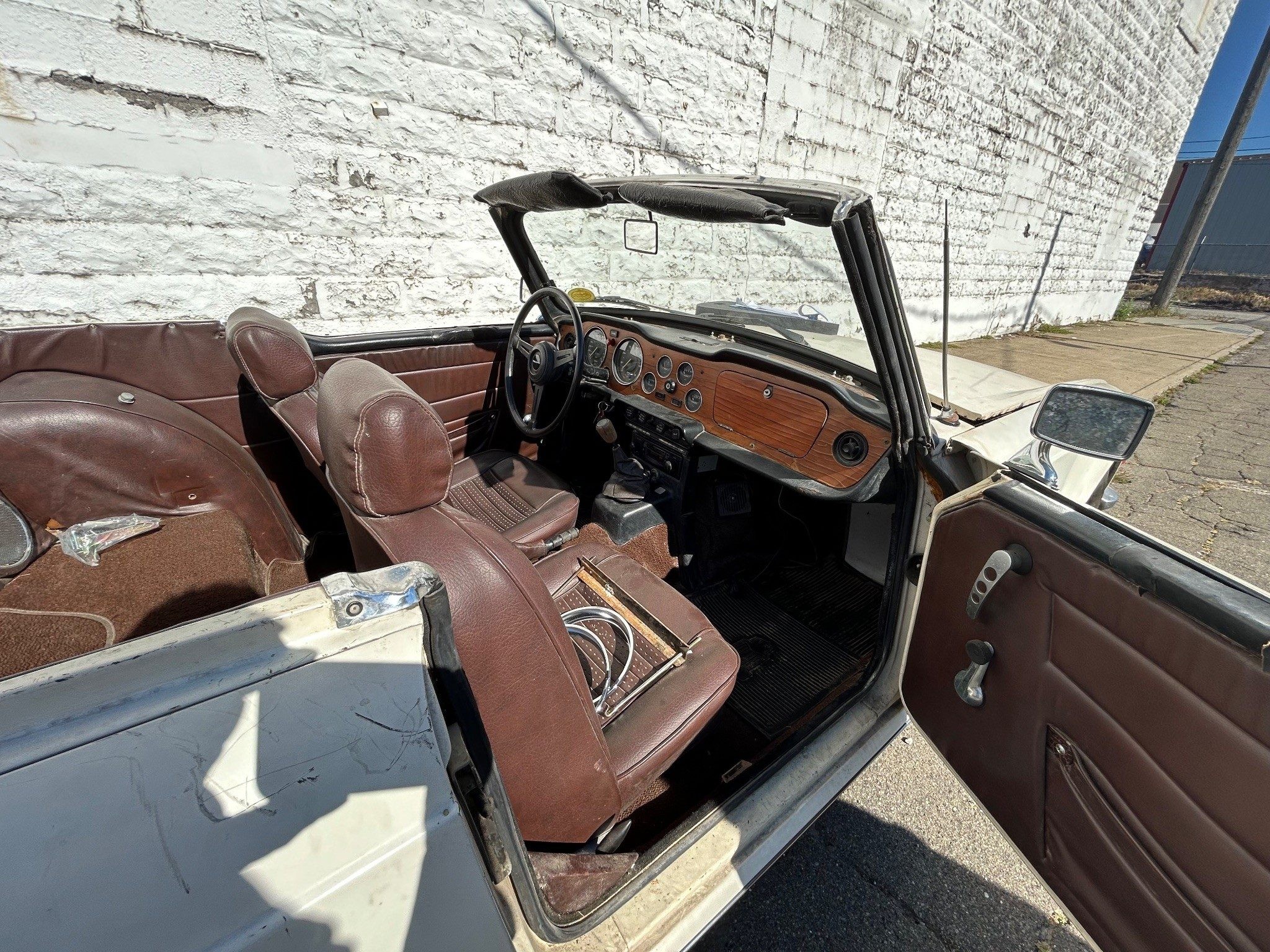 According to the seller, this TR6 was purchased about 30 years ago by a young man who intended to drive and enjoy it, but plans changed. The car was placed into garage storage in northwest Pennsylvania, where it remained unseen until 2024, when the property was sold and the car rediscovered. It still wears its California license plate, a reminder of its earlier life on the West Coast before it ever made its way east.