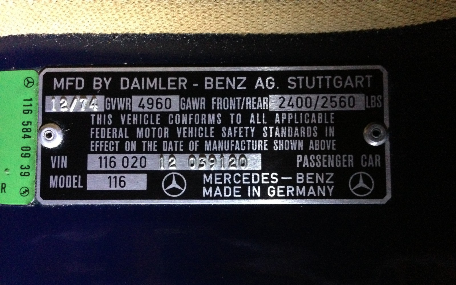 VIN: 116 020 – 12 039120