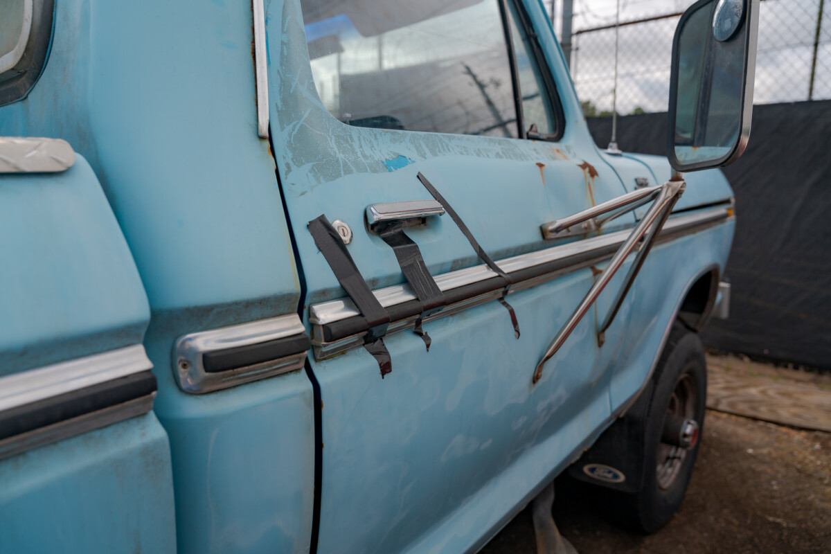 The body probably is a 1977, if I’m not mistaken all the 73-77 F250 hi boys had the tank in the cab. Looks like a home made tank for the front location and doesn’t appear to have a rear tank. Also, the VIN tag has been riveted on the door, not having the original Ford style.