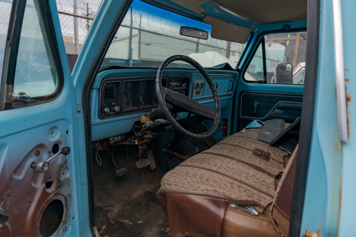I’ve never heard a classic vehicle owner complain about their toy having too much power, but somebody wasn’t happy about the 145hp and 263 ft/lbs of torque produced by this Ford’s original 360ci V8 because that engine is a distant memory. Its spot now houses a 460 that started life in a Ford or a Lincoln. Its specifications are unclear, but if it came from another vehicle from the same model year, power should rise above 200hp, with torque around 350 ft/lbs. Those are worthwhile gains, meaning load carrying and towing would require less effort. The power feeds through a four-speed manual transmission and a dual-range transfer case. The only identified problem is with the front axle, which the owner believes is negatively impacted by the PTO and winch. It is another case where removing the items might be the best solution to achieve a roadworthy state. The owner has the rear fuel tank, but the winning bidder needs to source a replacement front.