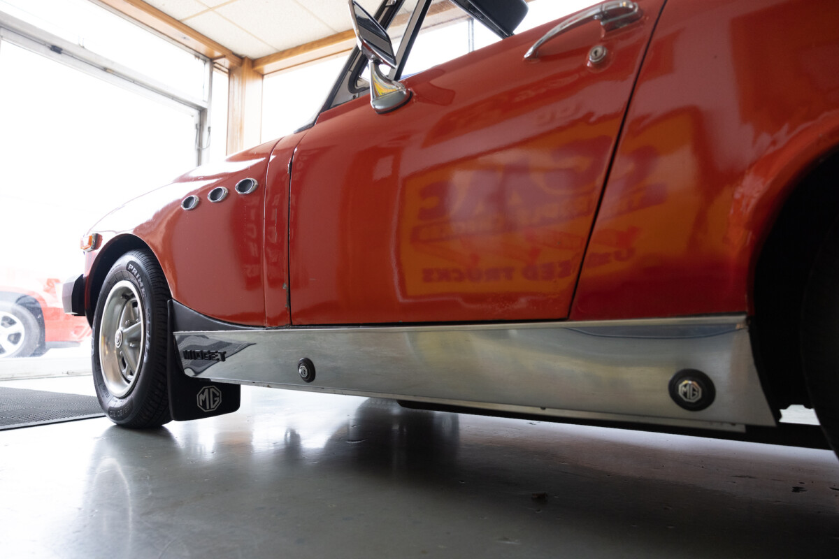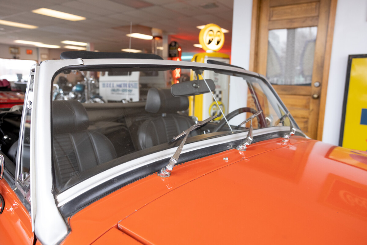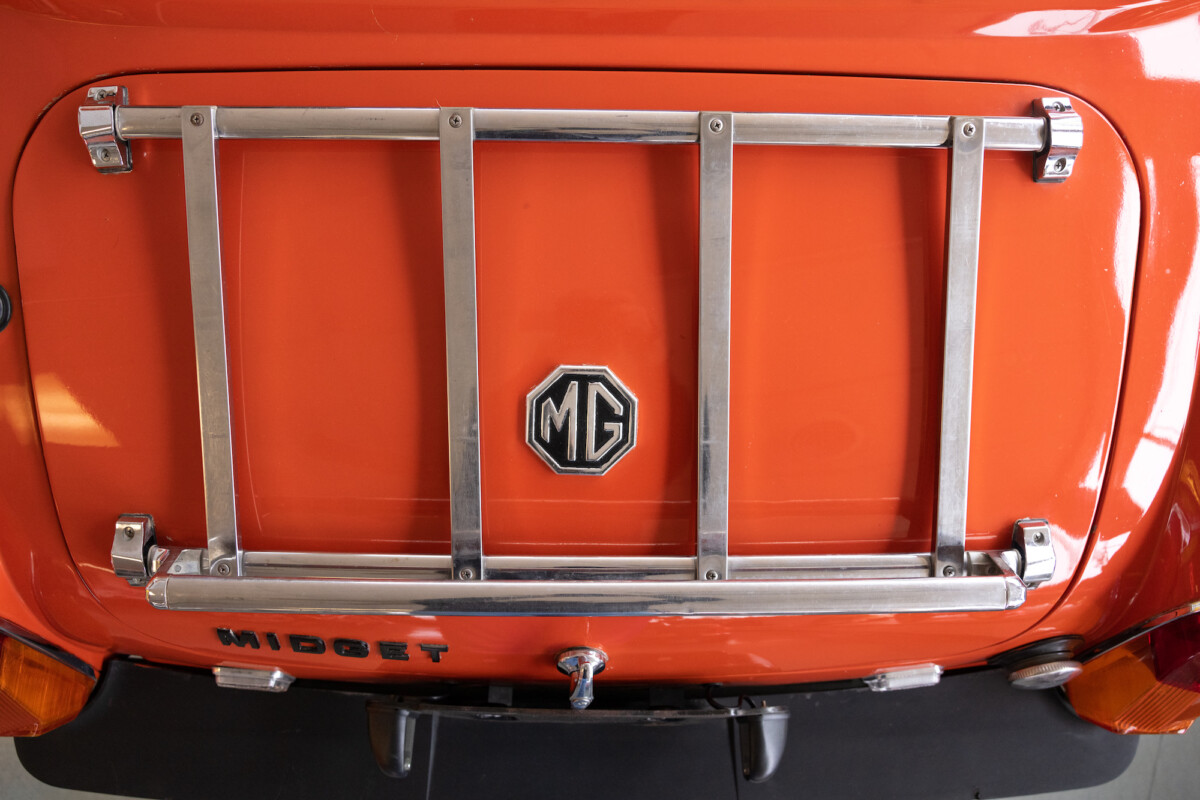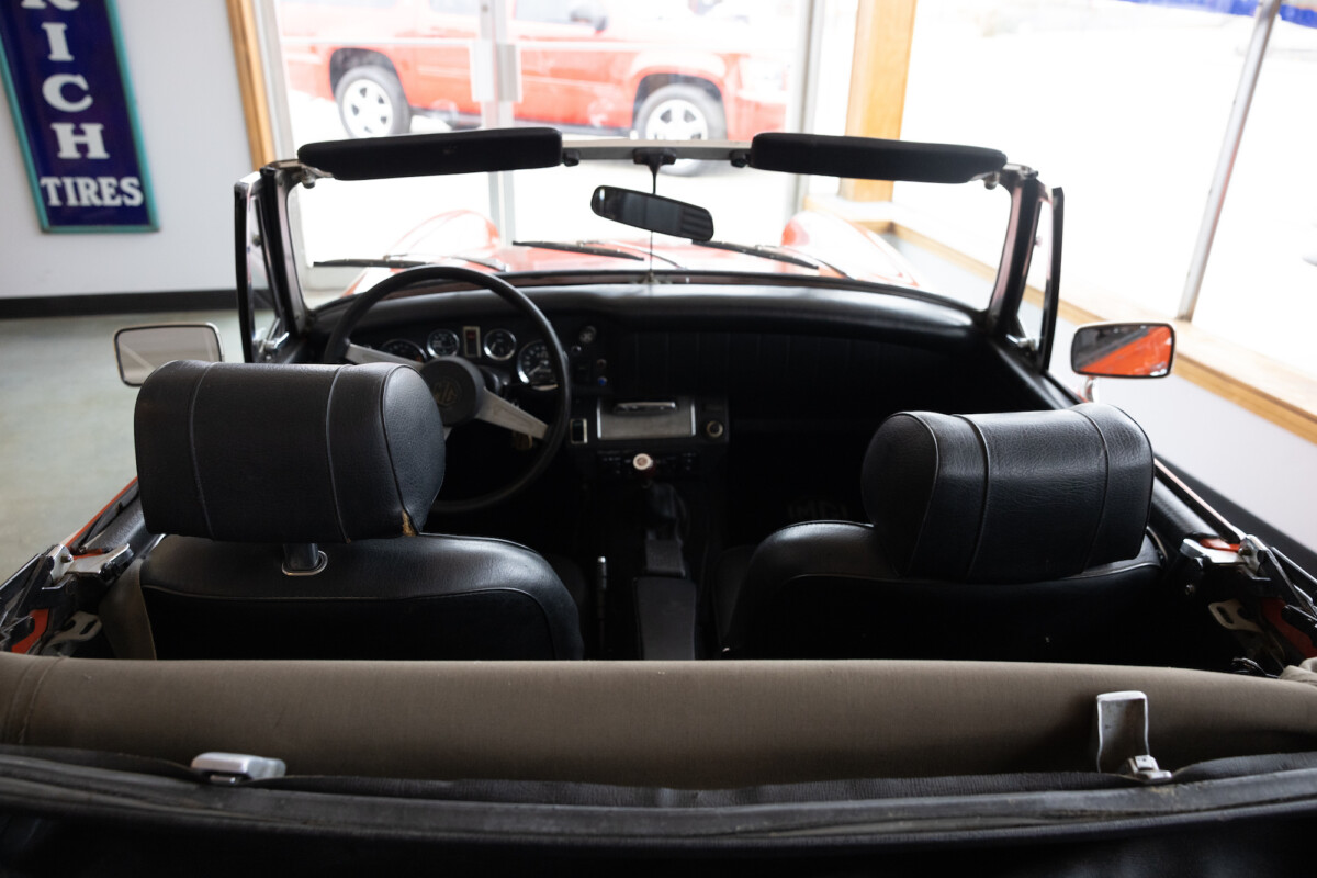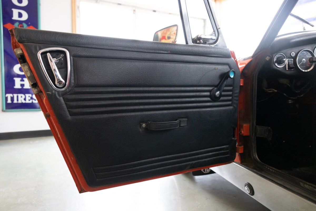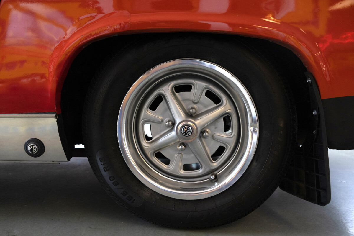 Although MG released the Midget in many more subtle colors, I can’t think of one that better emphasizes the total joy these cars provide than brilliant Blaze Red. It is a vibrant and happy shade that looks right at home on this beauty. The paint is excellent, with a consistent shine and no issues. It cloaks panels that are equally impressive. There are no visible dings or dents, allowing the Midget to make a positive first impression. One interesting custom touch is the fitting of Buick-style ventiports on the front fenders. They are a quirky touch that doesn’t look out of place. The trim and chrome appear nice, and with limited trunk space, the luggage rack is a practical addition. The glass is flawless, and the spotless Rostyle wheels and trim rings add a perfect finishing touch to the exterior.