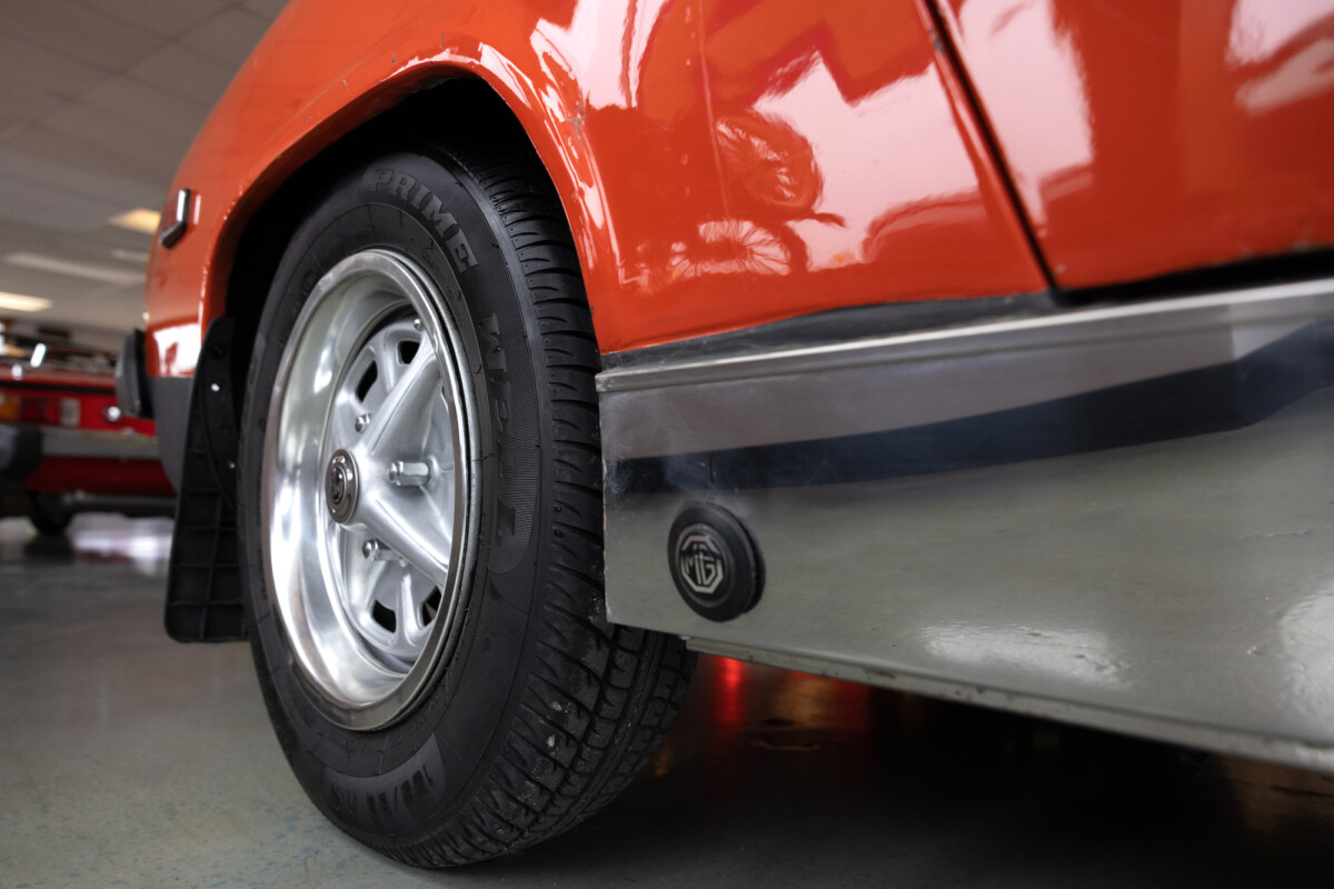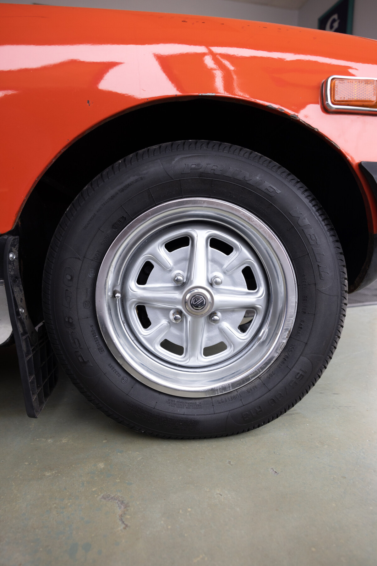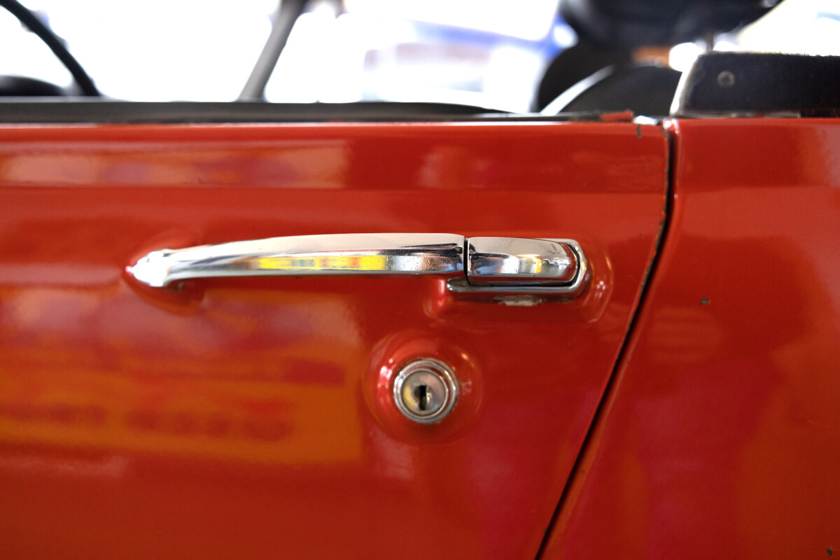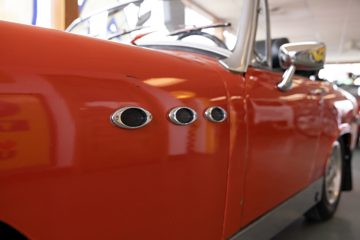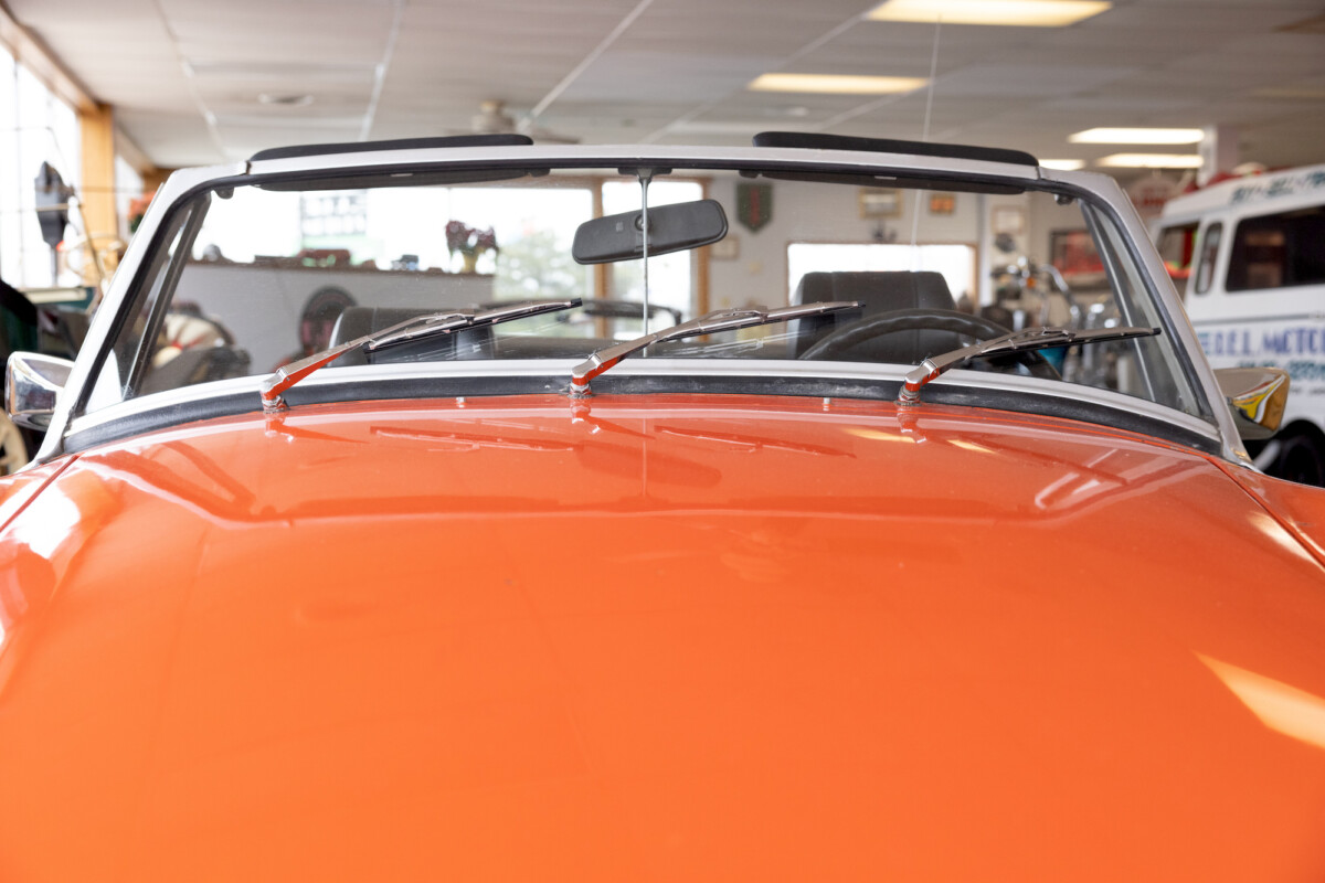 Although MG released the Midget in many more subtle colors, I can’t think of one that better emphasizes the total joy these cars provide than brilliant Blaze Red. It is a vibrant and happy shade that looks right at home on this beauty. The paint is excellent, with a consistent shine and no issues. It cloaks panels that are equally impressive. There are no visible dings or dents, allowing the Midget to make a positive first impression. One interesting custom touch is the fitting of Buick-style ventiports on the front fenders. They are a quirky touch that doesn’t look out of place. The trim and chrome appear nice, and with limited trunk space, the luggage rack is a practical addition. The glass is flawless, and the spotless Rostyle wheels and trim rings add a perfect finishing touch to the exterior.