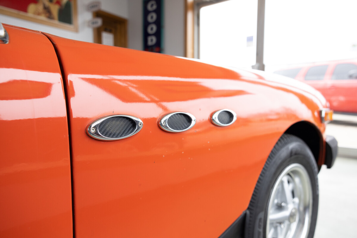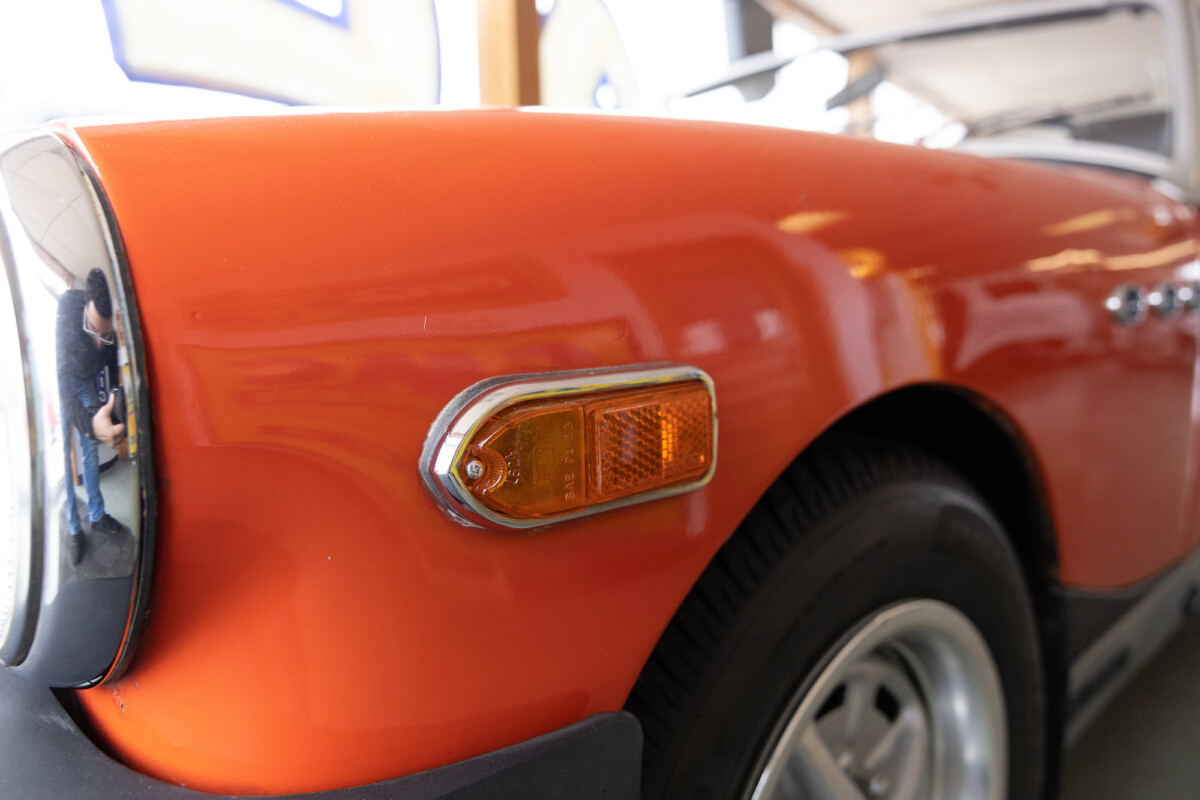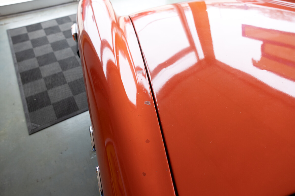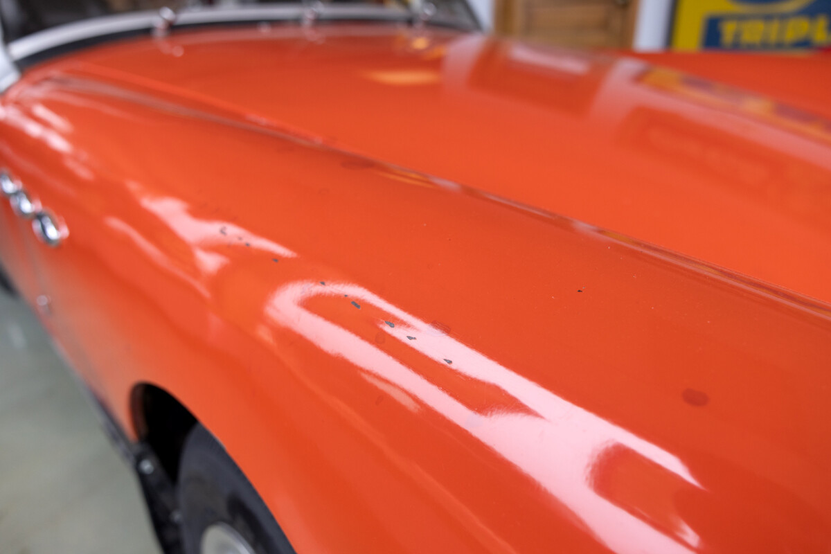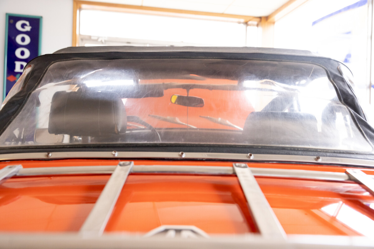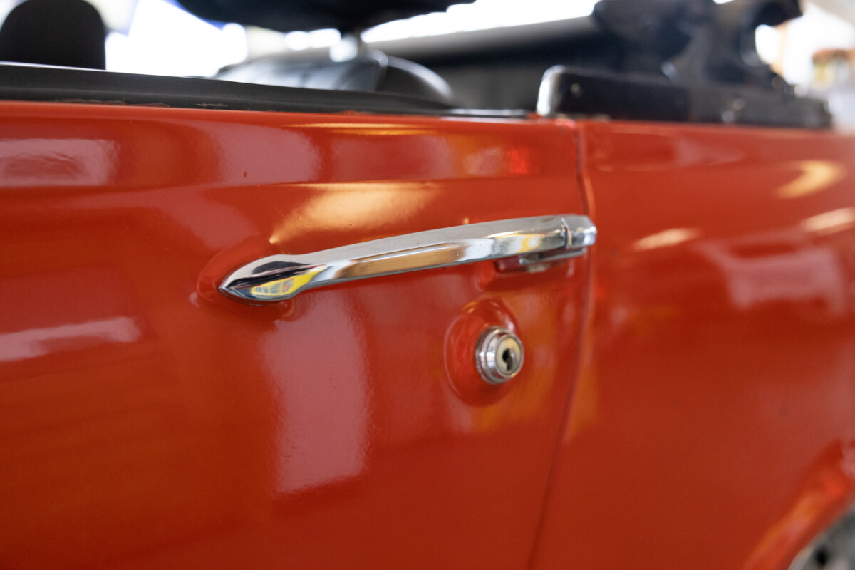 Although MG released the Midget in many more subtle colors, I can’t think of one that better emphasizes the total joy these cars provide than brilliant Blaze Red. It is a vibrant and happy shade that looks right at home on this beauty. The paint is excellent, with a consistent shine and no issues. It cloaks panels that are equally impressive. There are no visible dings or dents, allowing the Midget to make a positive first impression. One interesting custom touch is the fitting of Buick-style ventiports on the front fenders. They are a quirky touch that doesn’t look out of place. The trim and chrome appear nice, and with limited trunk space, the luggage rack is a practical addition. The glass is flawless, and the spotless Rostyle wheels and trim rings add a perfect finishing touch to the exterior.