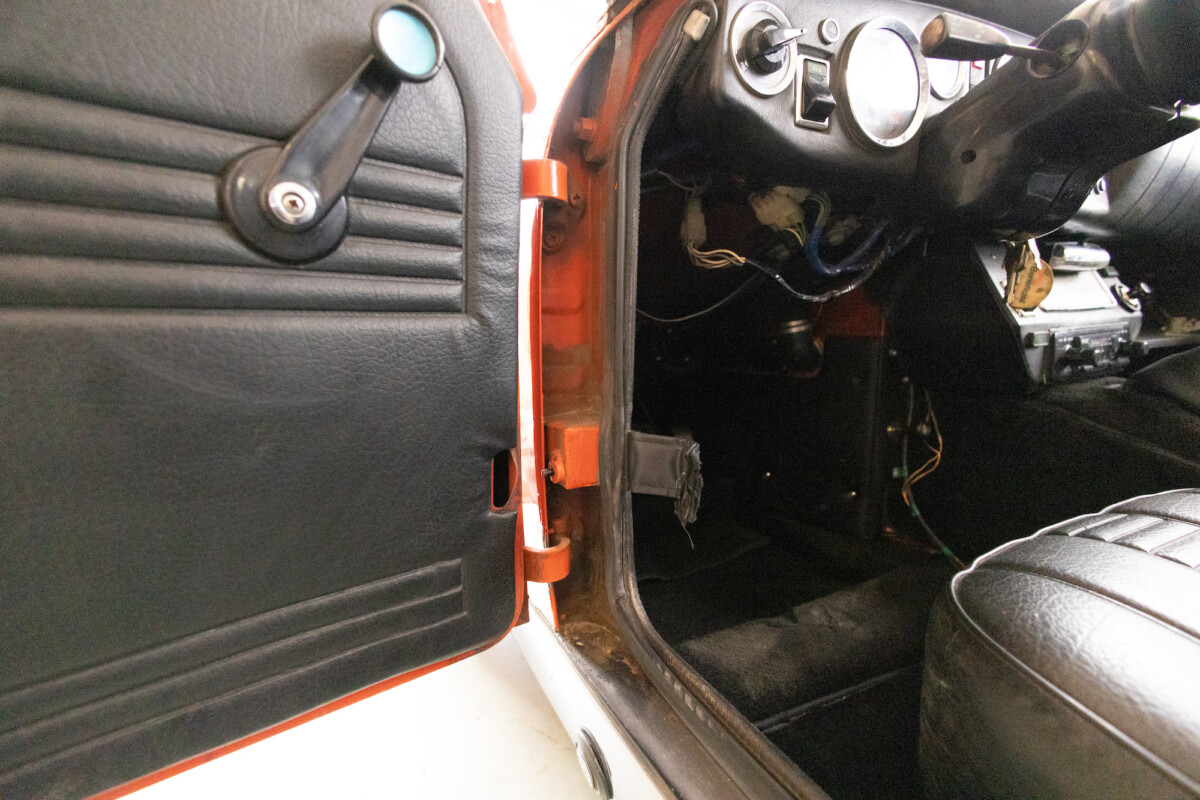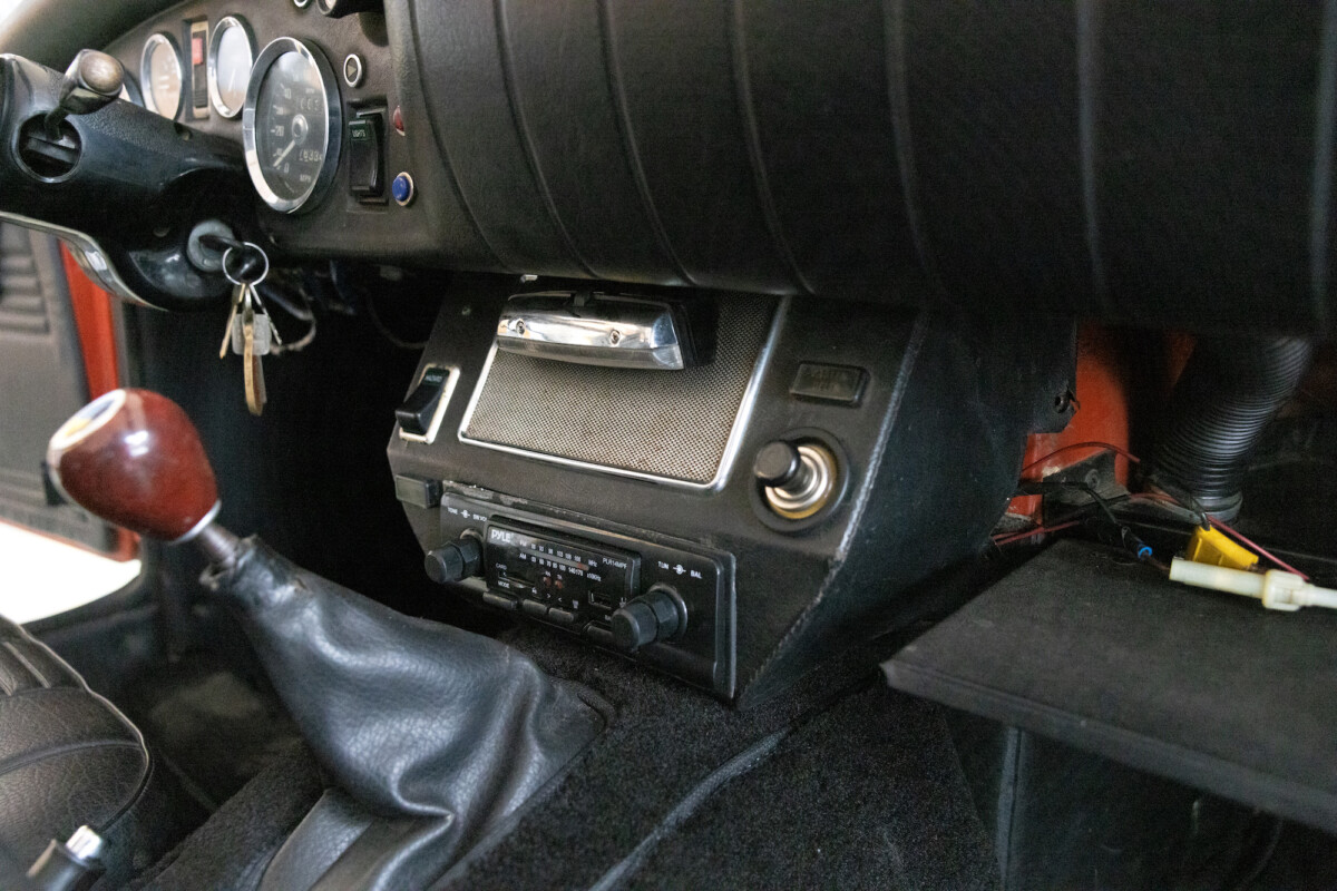 Back to the Midget….. very similar to this ’76. Same black interior, 4 on the floor, 3 wipers. As much fun as it was to drive, for me it’s not a daily driver. Fun for the weekends, but as an everyday car, very impractical. I literally couldn’t fit anything in it except a passenger in the passenger seat. Back then, stereo units were big. I could not fit my stereo in the car! Seriously.