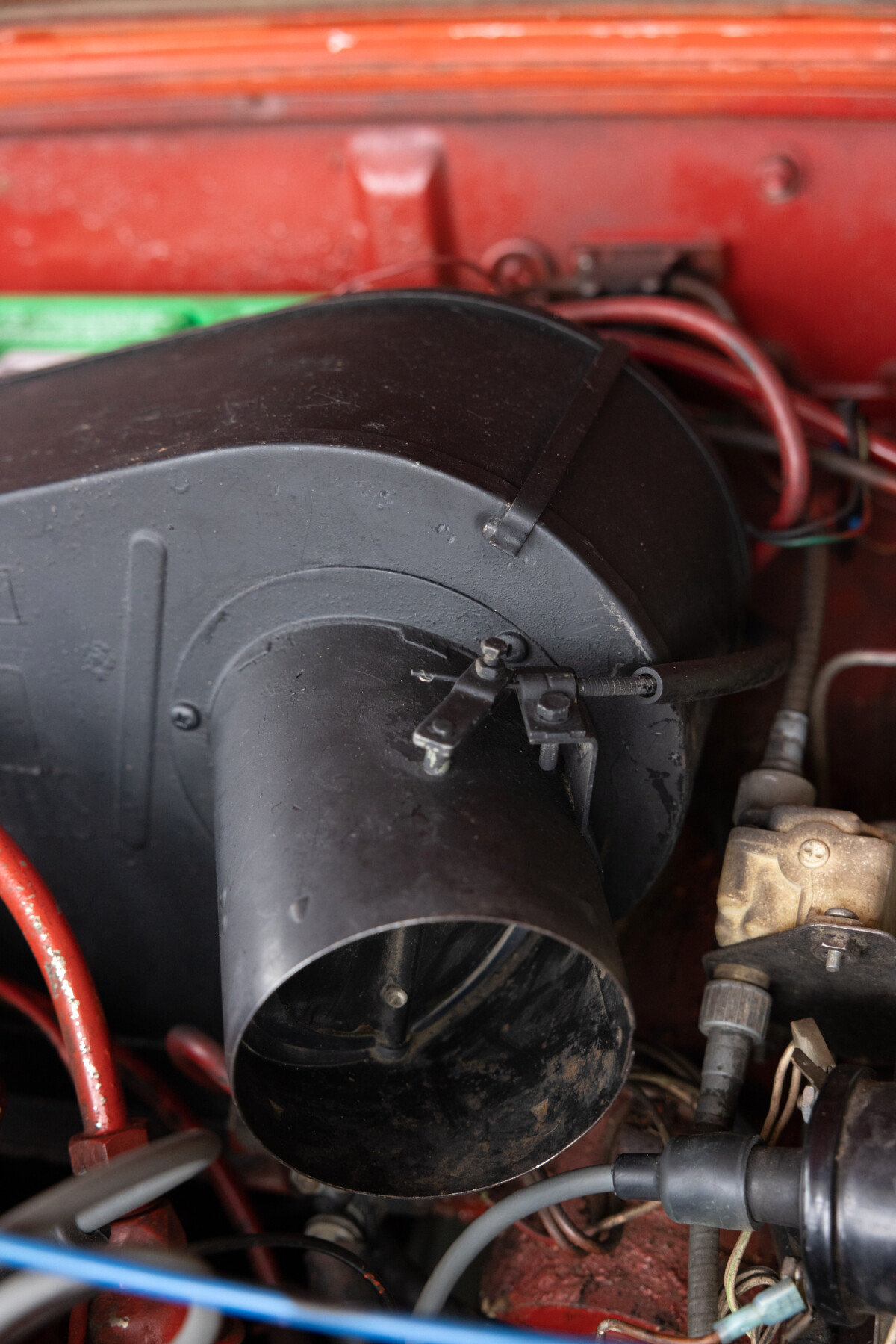 This car is nice but it’s missing parts. The heater hose is missing, and also the air box pre-heater duct is missing. The duct goes from the exhaust manifold shield to the round thing at the end of the air box, and opens the flap in the round thing when it reaches a certain temperature to make the car more driveable.