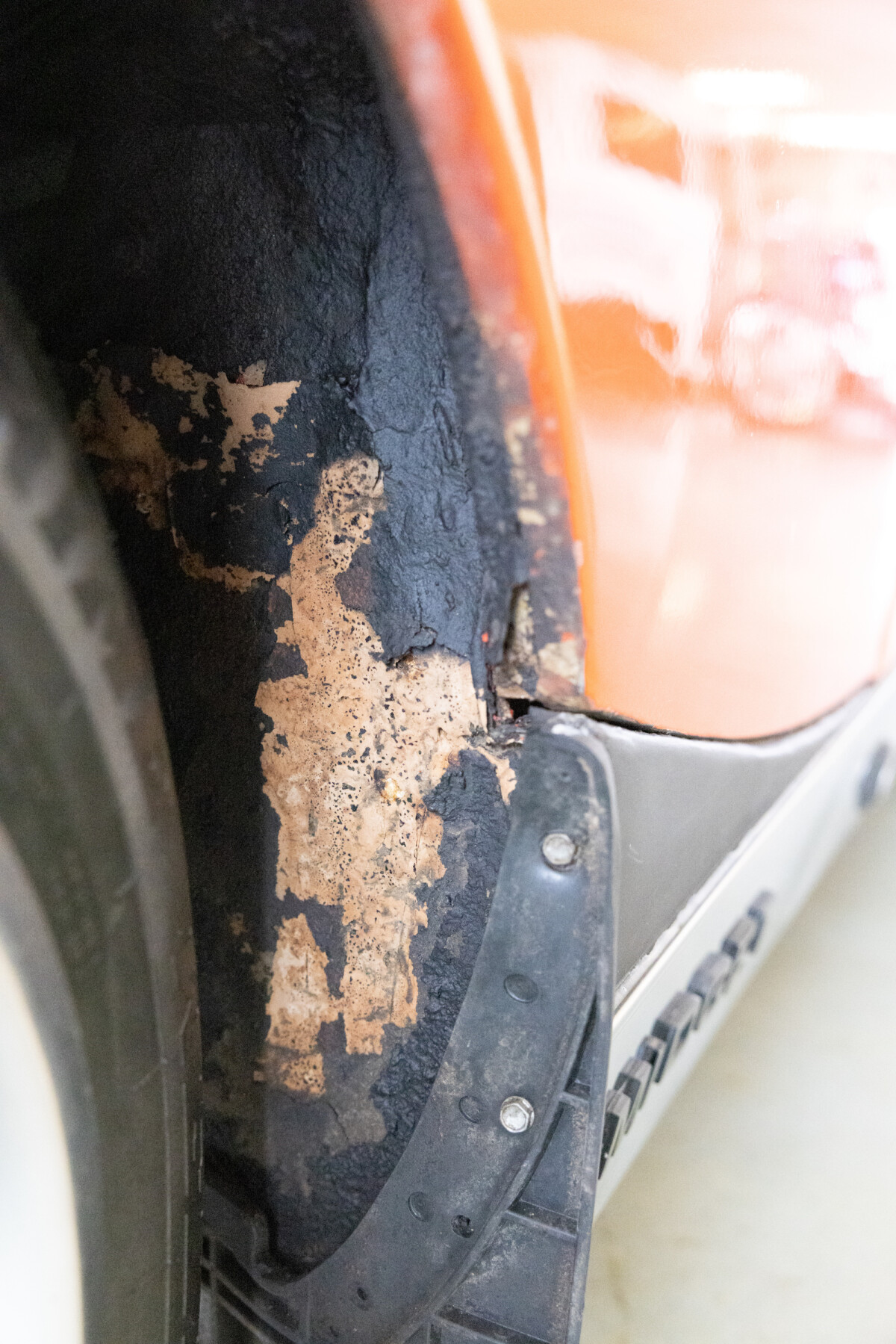 The wavy front bumper can be fixed by pulling up on the metal bars behind the wavy rubber.