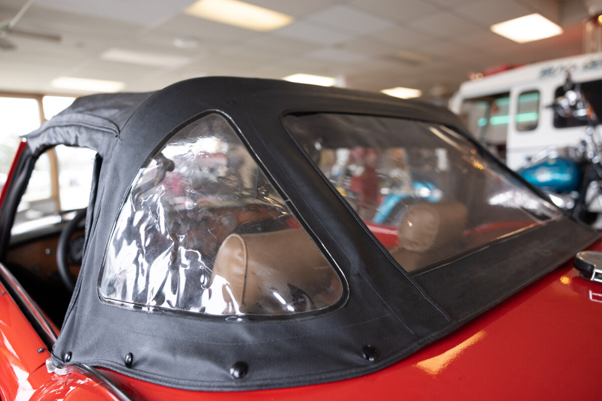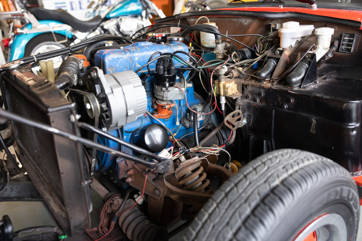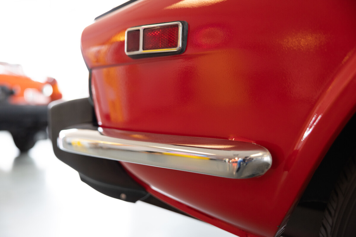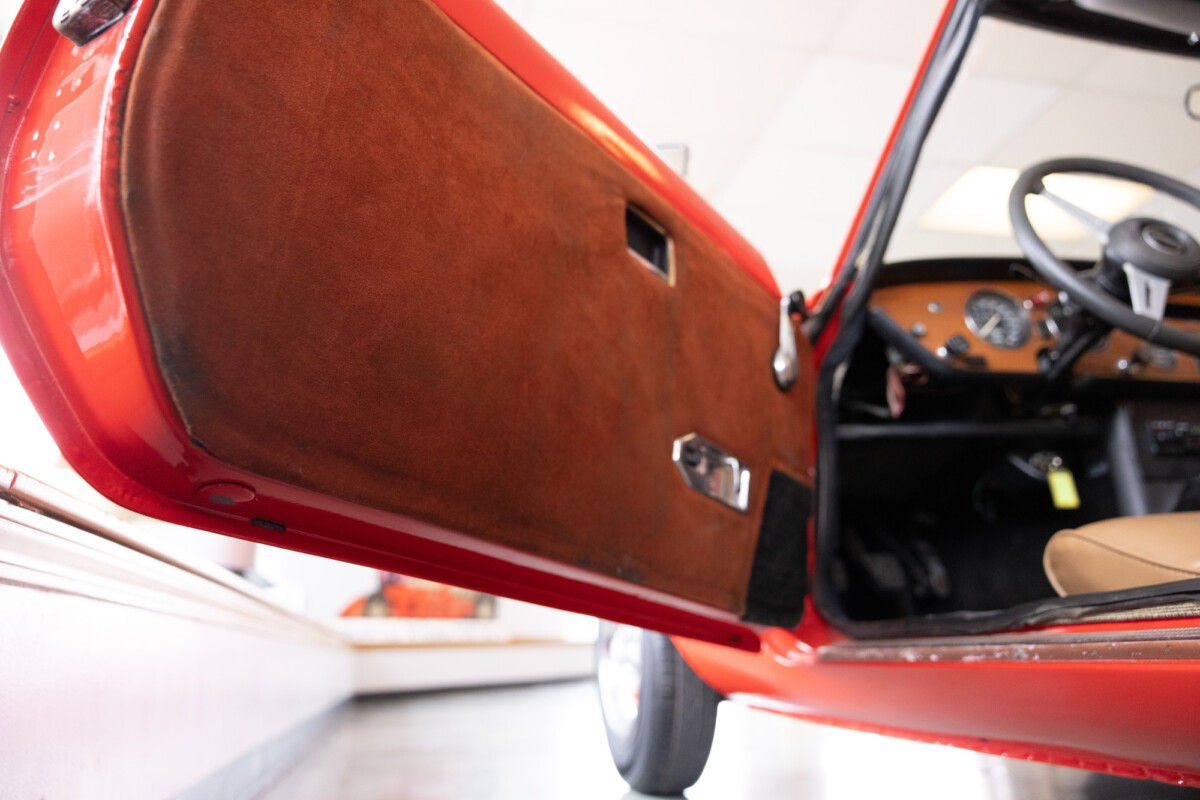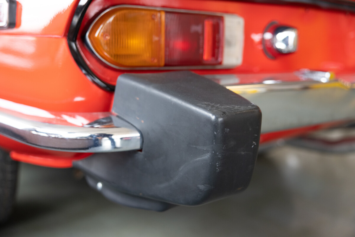 Triumph hit a sweet spot with the Spitfire’s styling, electing to perform minor cosmetic upgrades and those required by legislative changes during its long production run. It is a stereotypical British sports car, offering seating for two and a peppy little four-cylinder engine. This Triumph presents beautifully in Pimento Red. It has undergone a high-end color change, with the Tag indicating it rolled off the showroom floor wearing the less attractive Russet Brown. If you compare the two shades, the current one dramatically lifts the car’s overall appearance. The paint shines warmly, with no flaws or defects worth mentioning. The panels are straight, with consistent gaps across the entire vehicle. There is no rust, and the Black soft-top is excellent. The Spitfire sports the correct bumpers and rolls on a set of color-coded sports wheels with chrome center caps and trim rings.