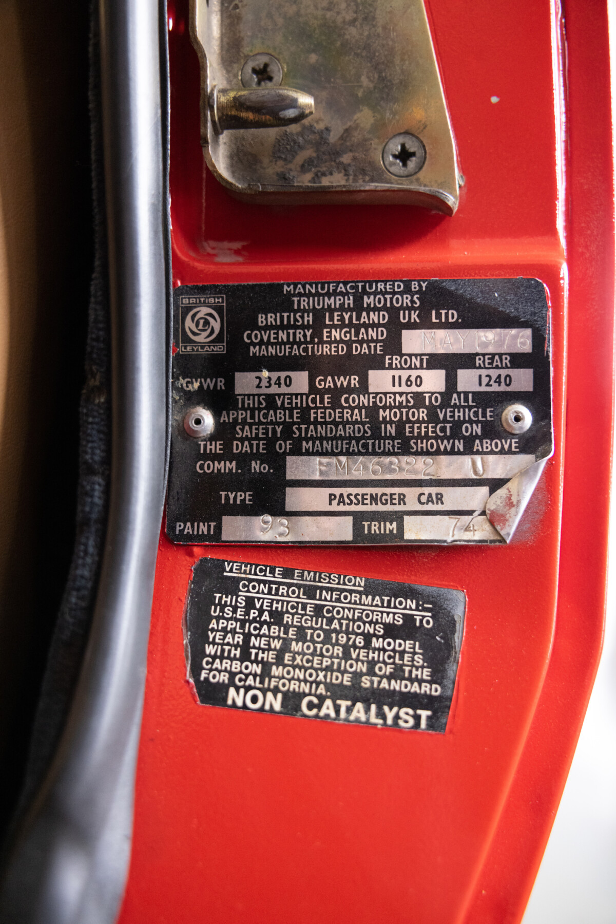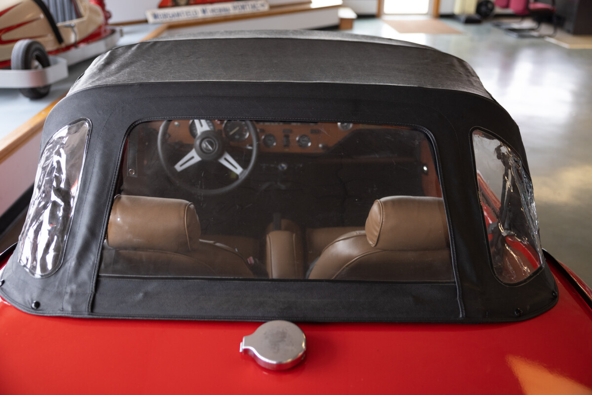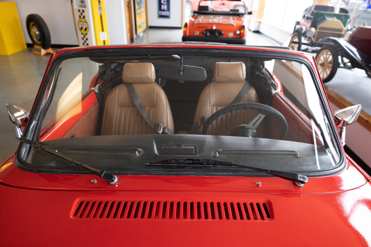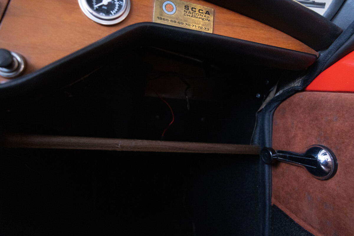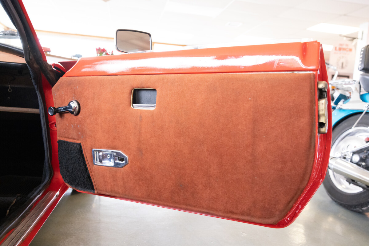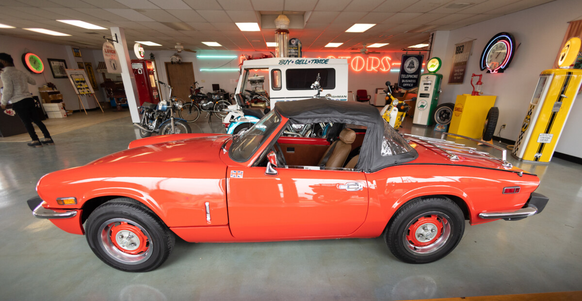 Triumph hit a sweet spot with the Spitfire’s styling, electing to perform minor cosmetic upgrades and those required by legislative changes during its long production run. It is a stereotypical British sports car, offering seating for two and a peppy little four-cylinder engine. This Triumph presents beautifully in Pimento Red. It has undergone a high-end color change, with the Tag indicating it rolled off the showroom floor wearing the less attractive Russet Brown. If you compare the two shades, the current one dramatically lifts the car’s overall appearance. The paint shines warmly, with no flaws or defects worth mentioning. The panels are straight, with consistent gaps across the entire vehicle. There is no rust, and the Black soft-top is excellent. The Spitfire sports the correct bumpers and rolls on a set of color-coded sports wheels with chrome center caps and trim rings.