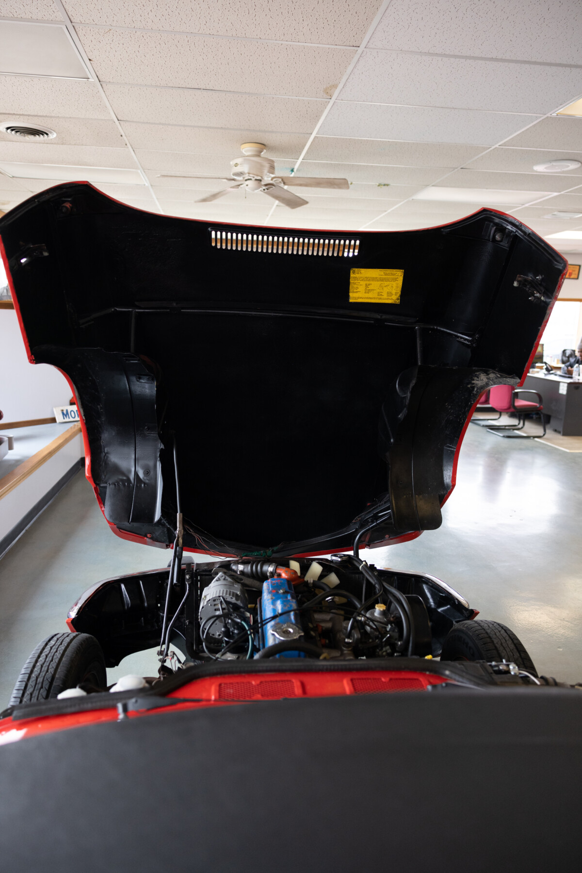 Ok, let me be the first to say it, get rid of the US safety bumpers. A attractive car in resale red, sure beats the brown imho. Put a overdrive on the tranny and then cruise comfortably….. if you fit.