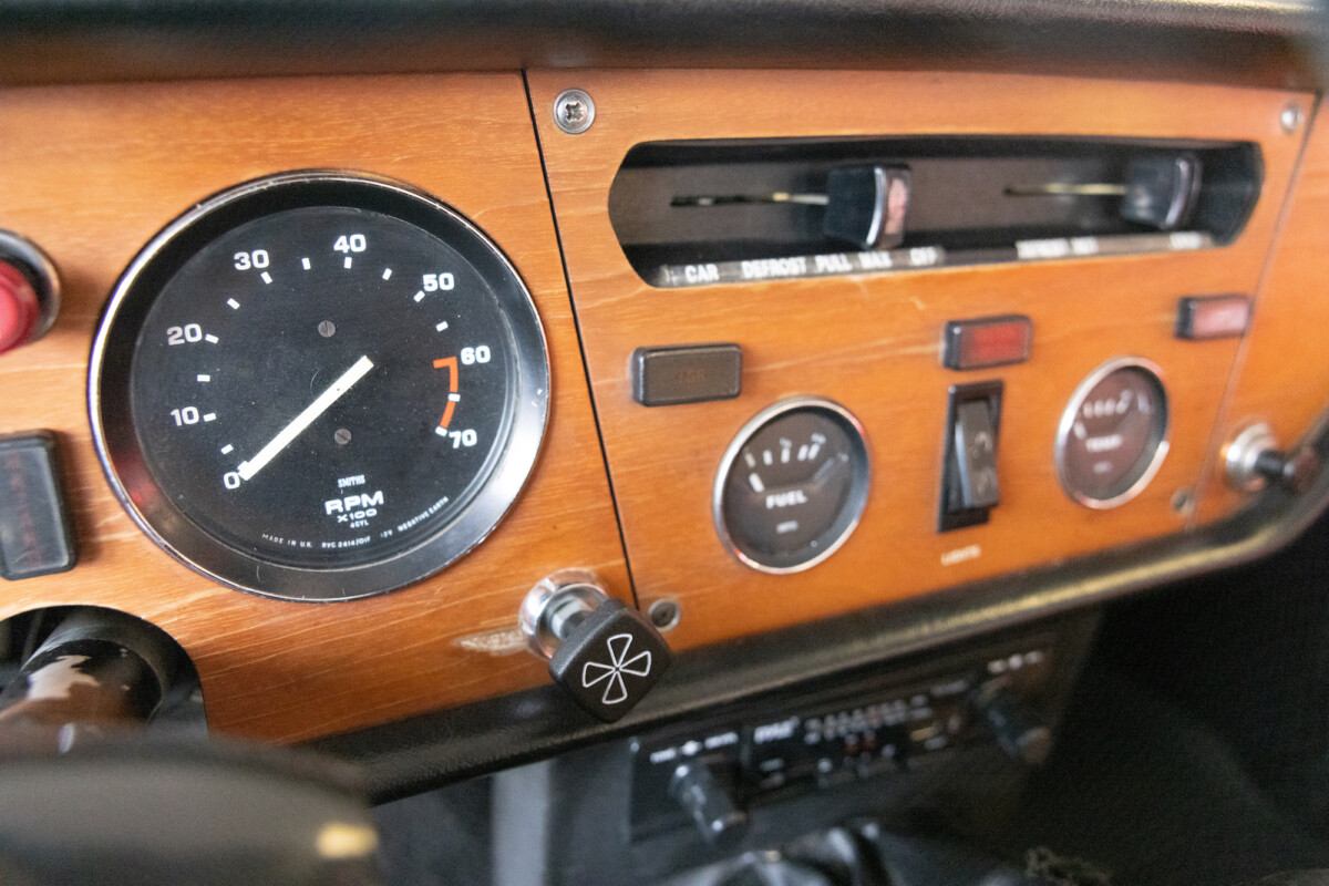 The biggest news with the final generation of the Spitfire was the company’s decision to increase the capacity of its “SC” four-cylinder engine from 1,296cc to 1,493cc. It produces 68hp, which feeds to the rear wheels via a four-speed manual transmission. It doesn’t make the Spitfire a powerhouse, but these little cars will happily cruise at highway speeds and genuinely come alive when pointed at a stretch of winding road. One of the quirks with these cars is that due to the low seating position, speeds always feel faster than the speedometer indicates. It is an illusion that adds to the driving pleasure. This Spitfire is in excellent mechanical health. It runs and drives well, with no problems or issues.