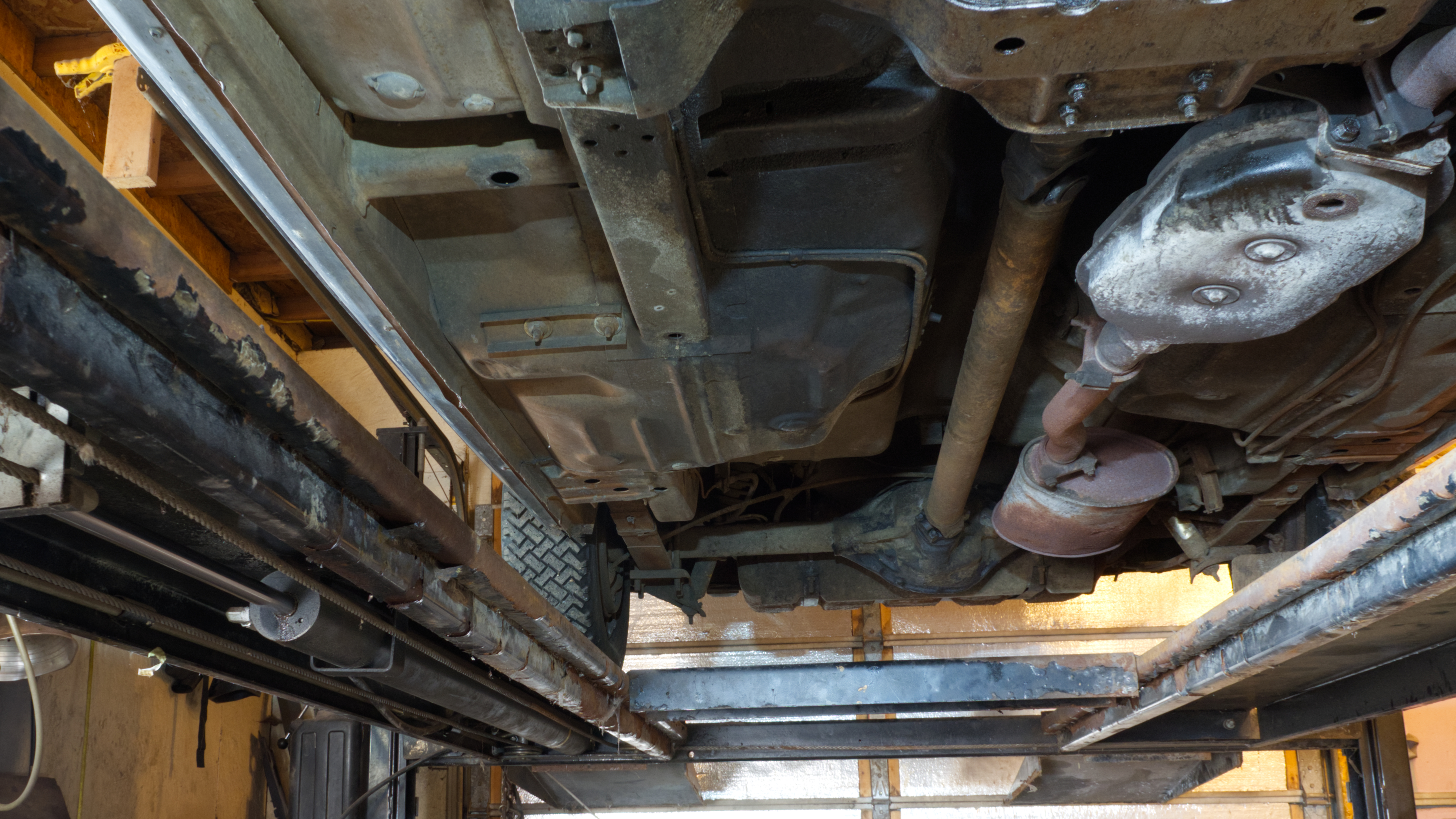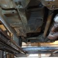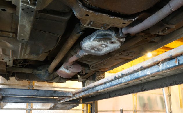 The seller made sure to provide photos of the undercarriage, which appears to be in decent condition. The car rides on older tires with good tread, though the seller recommends replacement due to age. They also report that the suspension components, including bushings and shocks, are likely original and are showing their age, so plan on servicing the suspension in the near future.