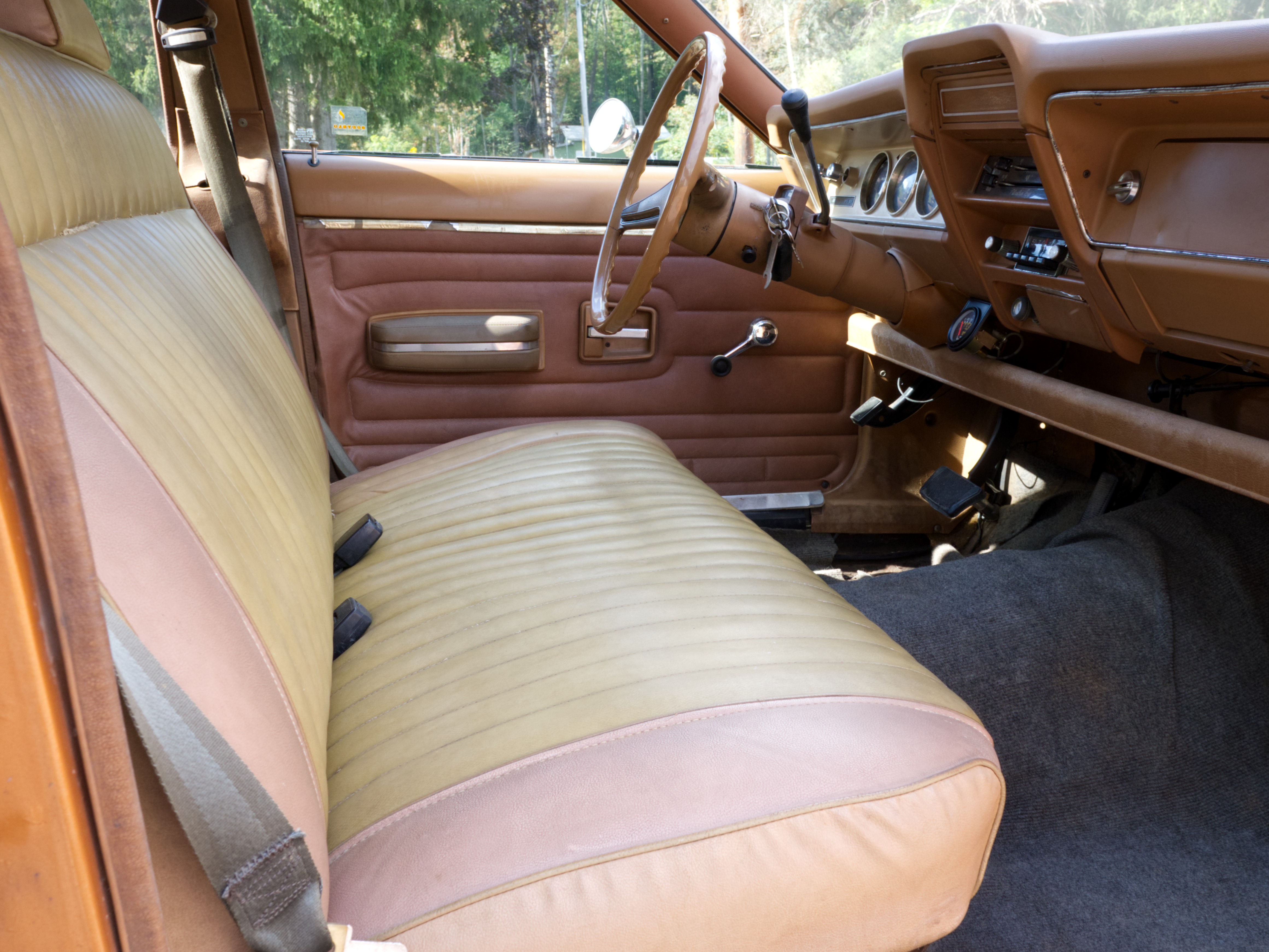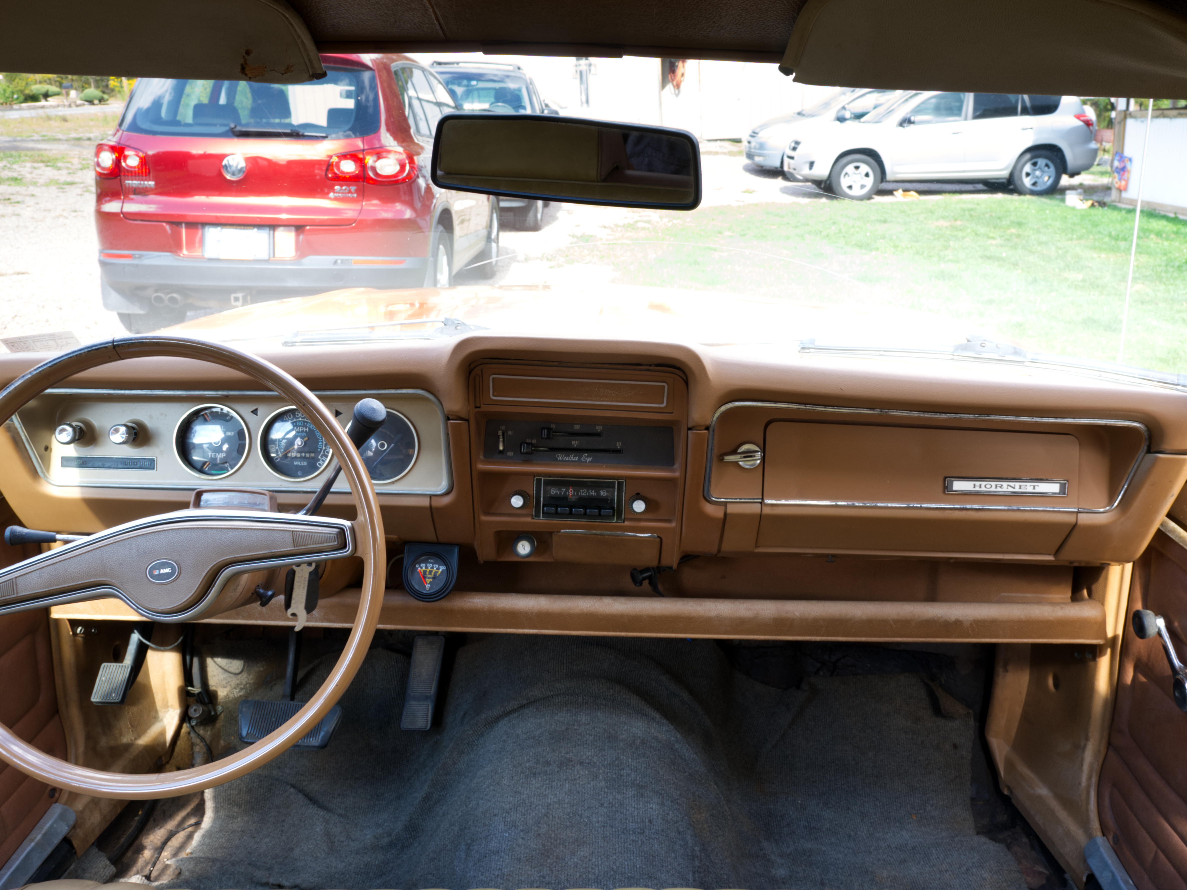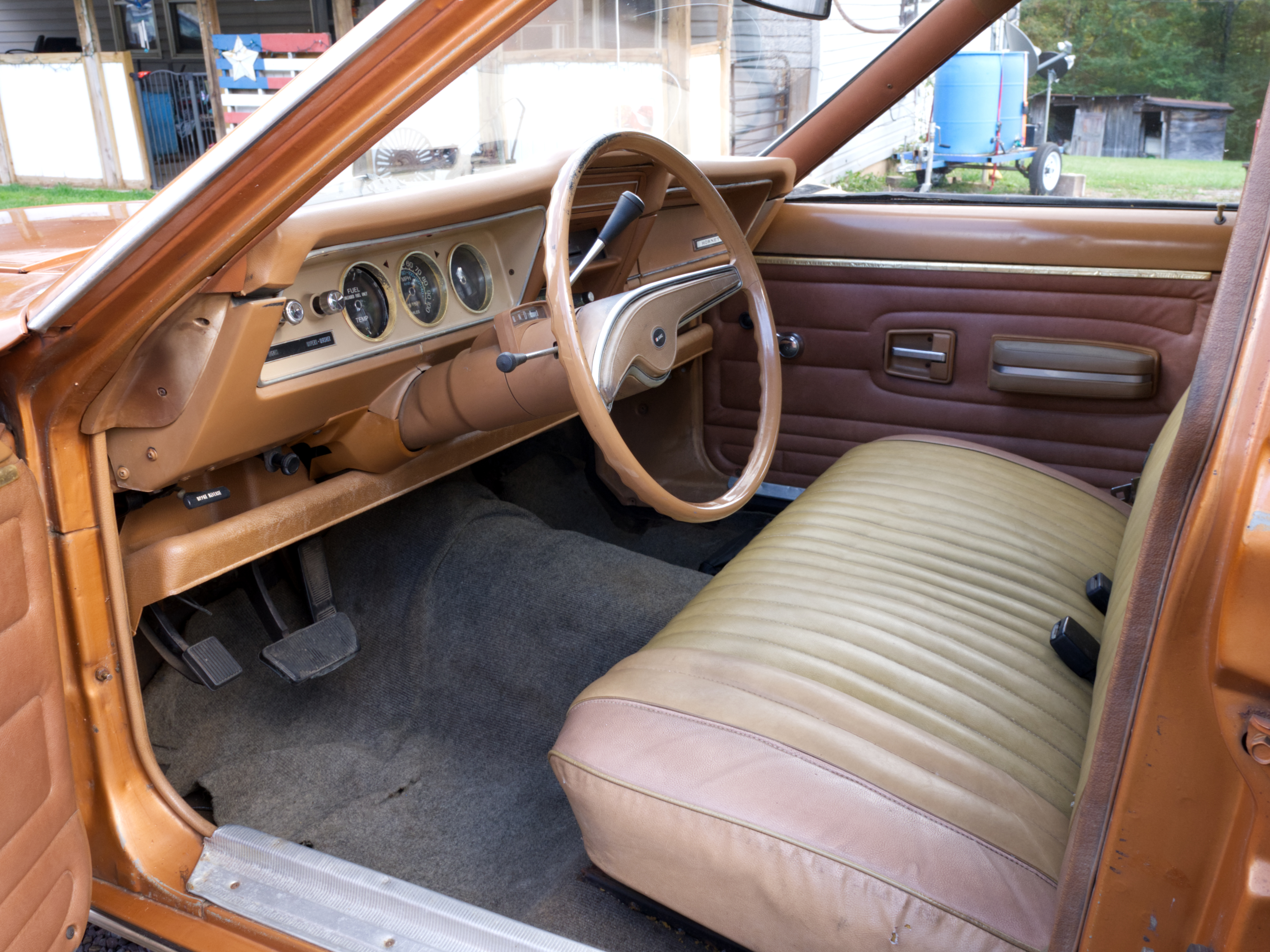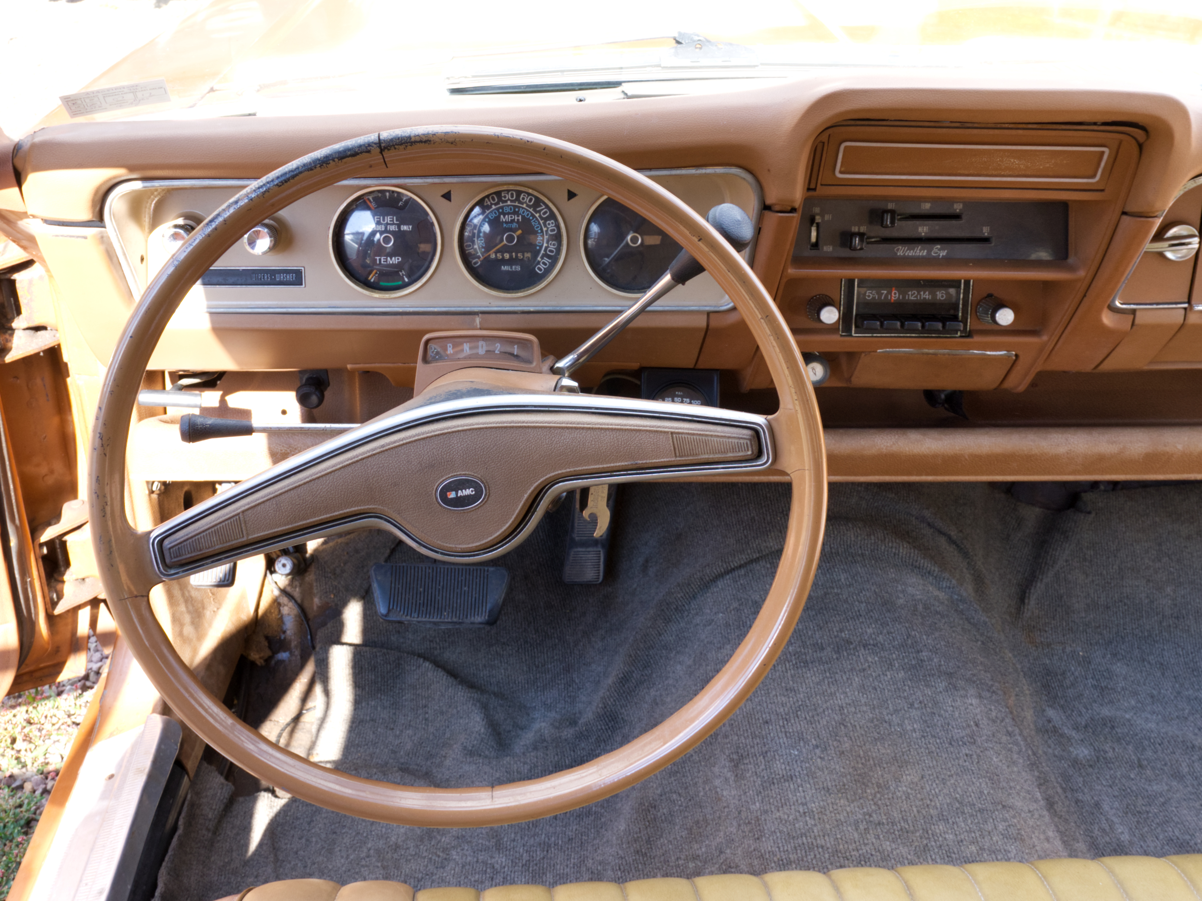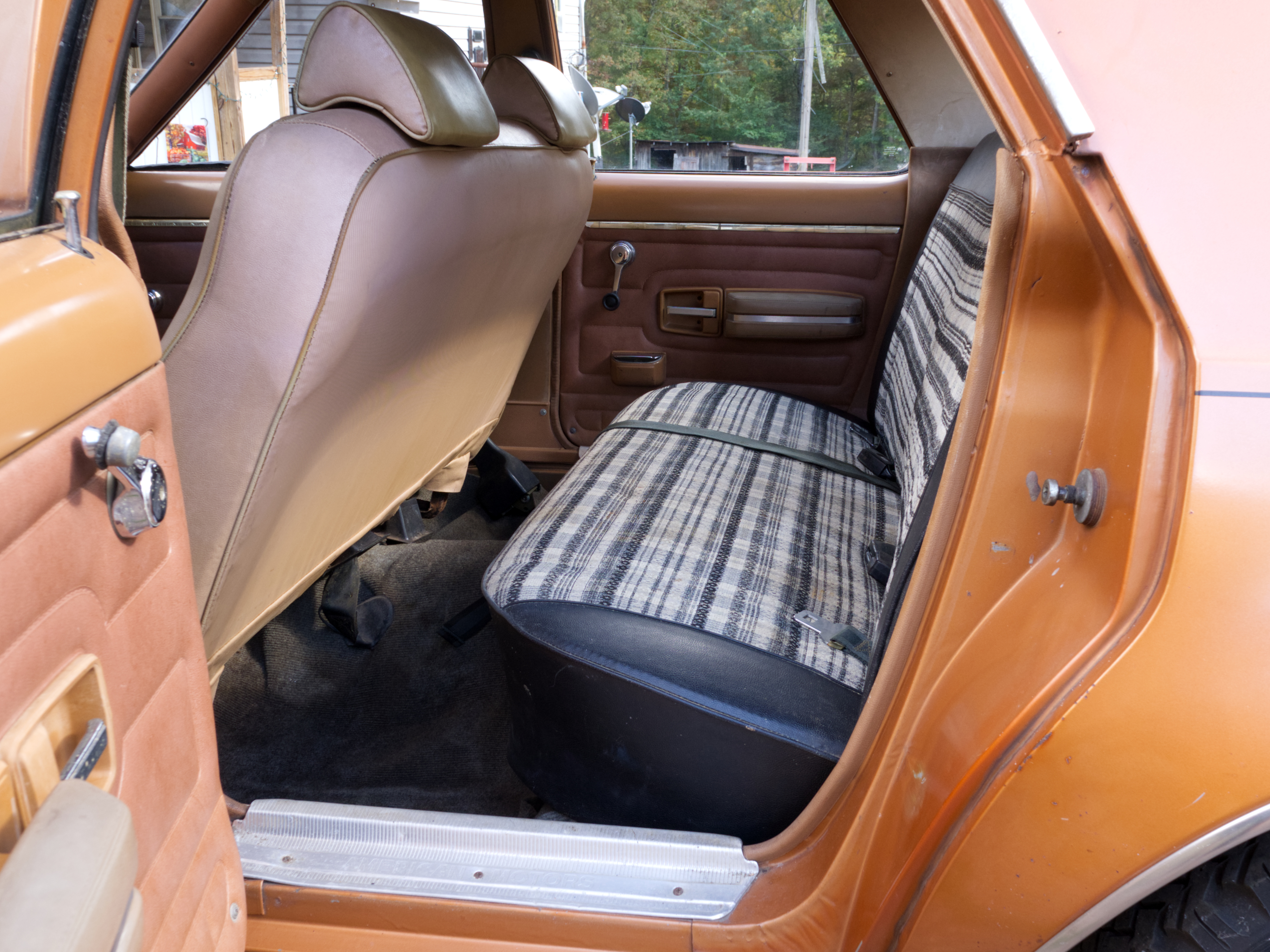 Inside, things are showing some wear. The seller describes the interior as the weakest area, which isn’t surprising given AMC’s economy-car roots and nearly five decades of use. The photos show visible wear to the seats, trim, and materials, so this is an area the next owner may want to work depending on their goals.