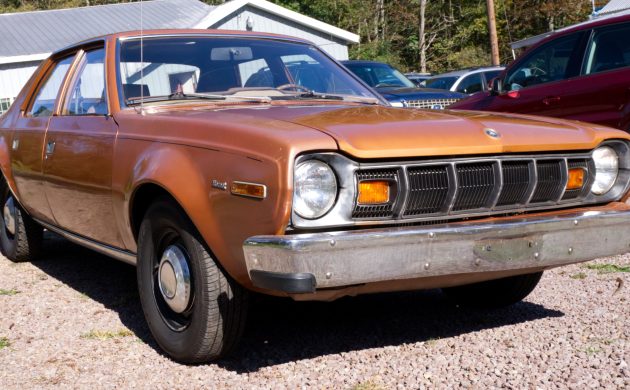 This 1977 American Motors Hornet is a rear-wheel-drive sedan powered by a 232ci inline-six paired with a three-speed TorqueFlite 904 automatic transmission. Finished in Golden Ginger Metallic, the car is said to retain approximately 80% of its original paint and shows 85,921 miles. The seller reports that the car was driven regularly until 2017 and has since been stored in a dry environment. It is now offered with a clean title in the seller’s name in Pennsylvania.
