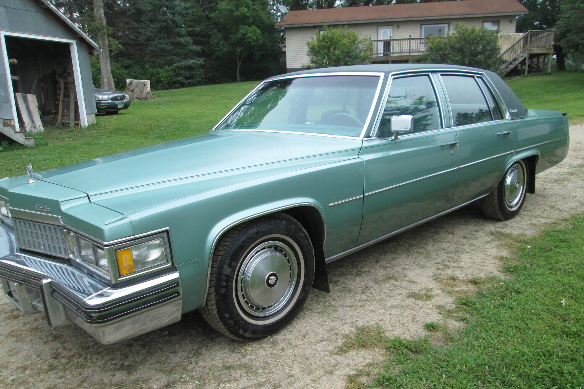 My neighbor ole Bill Clancy had a 77 in this same color in the late 80s…early 90s. While as a 16 year old I had 76 Sedan DeVille that my dad bought for my first car in 89. Fit all my buddies in it for cruising. And enough room in the back for me and my girlfriend for so alone time. 😉