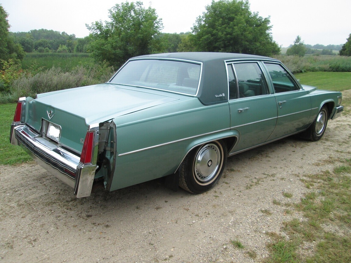 Cadillac introduced its Seventh Generation DeVille range in 1977, and this car hails from its first production year. The original owner ordered it in striking Seamist Green with a contrasting Dark Green vinyl top. The paint sports a few small imperfections, but the impressive shine makes it very presentable if the winning bidder chooses the survivor route. The panels are straight, and the crumbled rear quarter panel fillers are the most apparent defect. This is a common issue for these cars, although the owner includes a replacement set for the buyer to paint and install. Its overall condition confirms the storage environment was dry during this Cadillac’s eight-year hibernation. There is no evidence of rust; any surface corrosion is dry and shouldn’t pose a threat. The vinyl shows no evidence of distress or deterioration, and the chrome and tinted glass look impressive for a vehicle of this vintage. Somebody attempted to break into the trunk, denting the lid and removing the emblem. The emblem is included, and the trunk still latches, but the pull-down mechanism is broken.