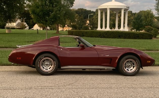 The 1977 model year saw the Corvette continue to cement itself in the market, with the badge setting a new sales record of 49,213 vehicles. The Malaise Era may have been in full swing, but buyers turned to Chevrolet’s iconic sports car in a bid for their slice of motoring performance. This car presents nicely in Corvette Dark Red, a shade chosen by 3,434 buyers. Close inspection reveals minor flaws and imperfections, but it is definitely a contender for enthusiasts seeking a driver-grade classic. The paint shines richly, with the photos revealing no evidence of corrosion or rust. The bumpers haven’t succumbed to age or UV exposure, and the trim is in good order. This Corvette rolls on a sparkling set of red-striped 15″ aluminum wheels, wrapped in new BF Goodrich tires that help to emphasize the car’s muscular good looks.