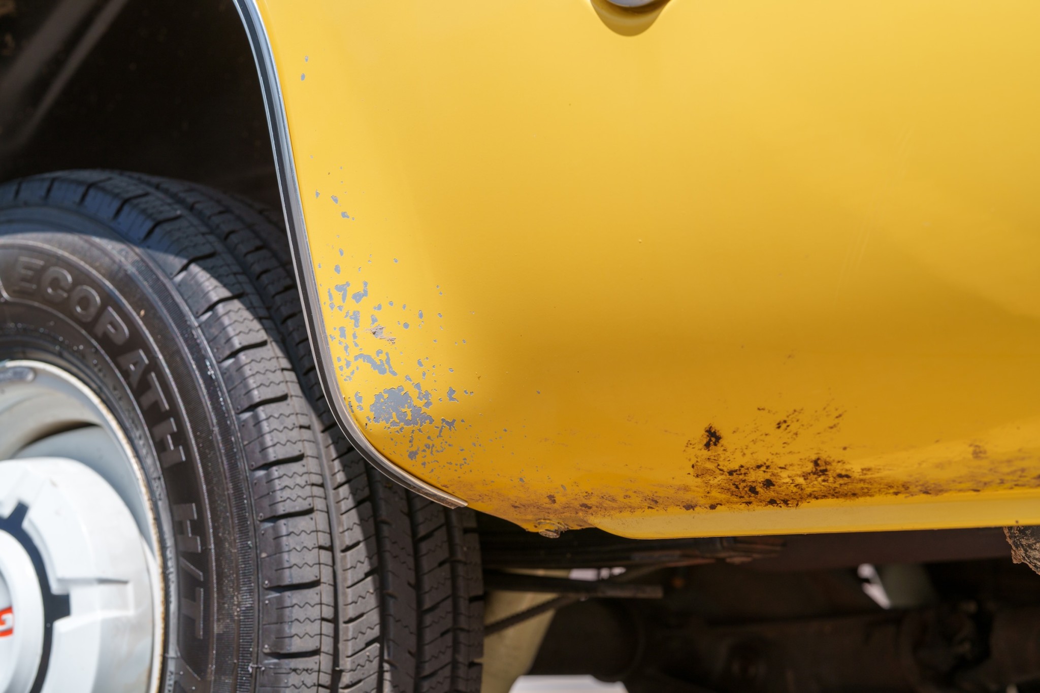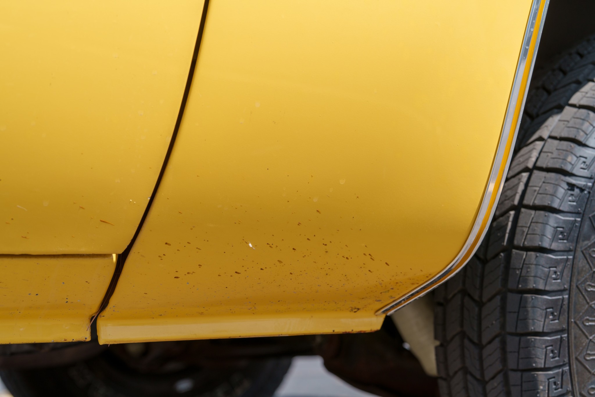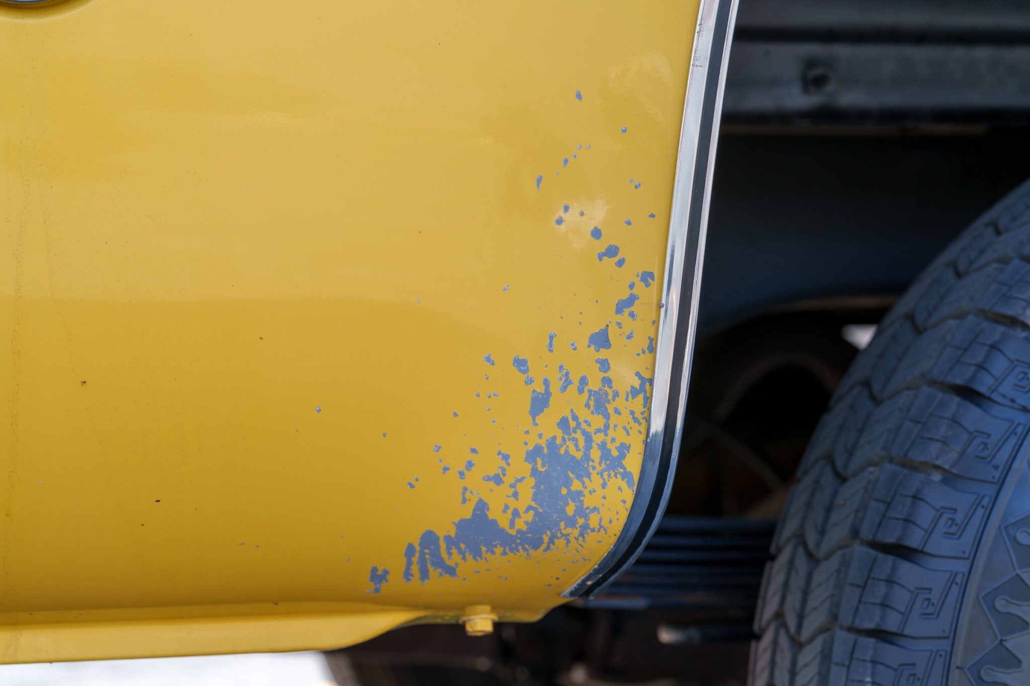 Those minor chips aren’t a big deal. In the days before protective film, we all remember the aluminum shields you could buy to protect the flare-out fronts of the rear wheel openings. Owner tried up front with the Deflecta Shield.