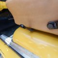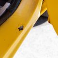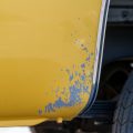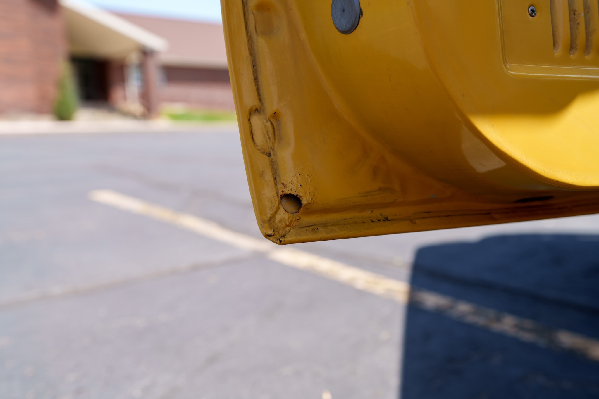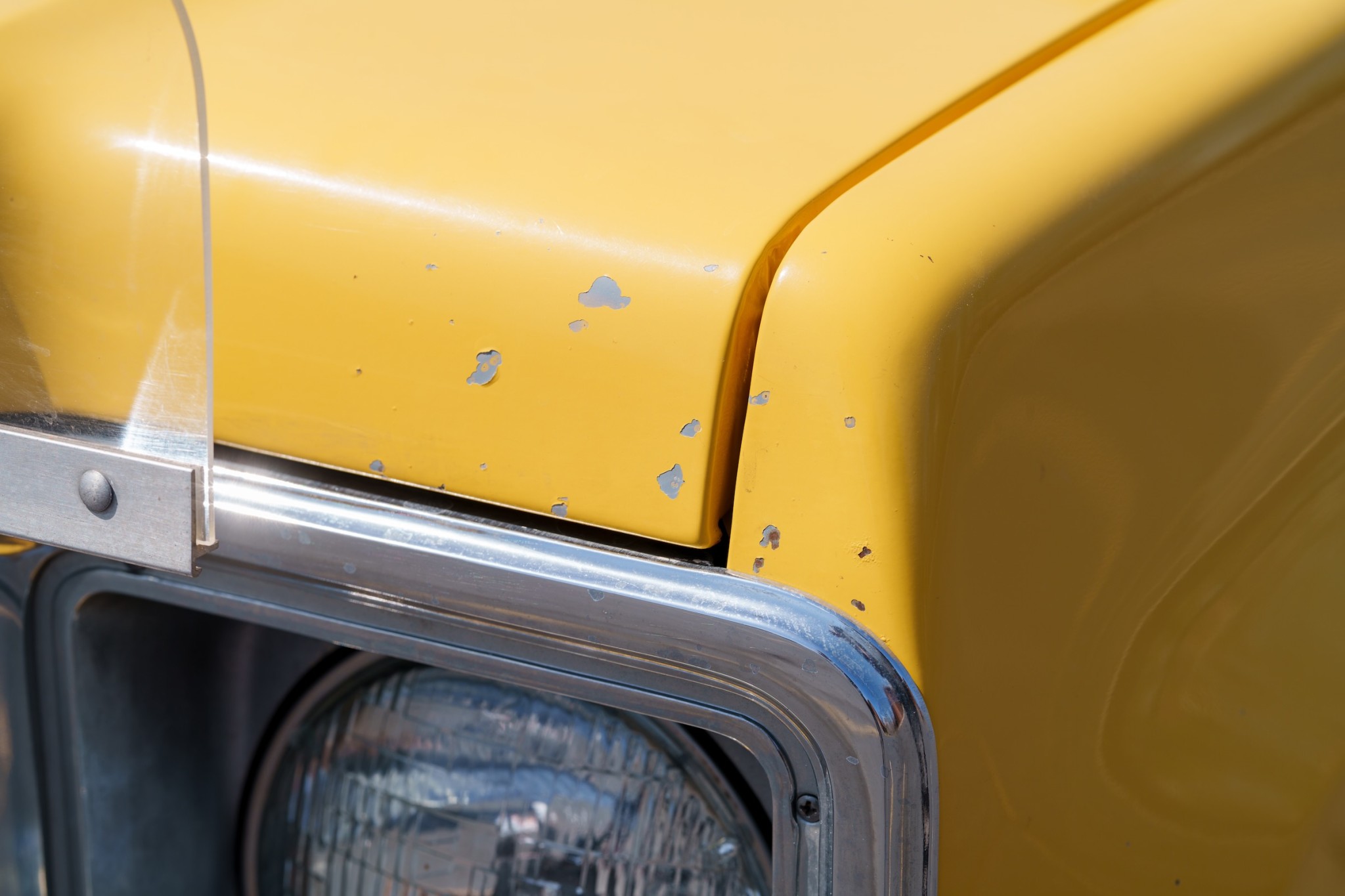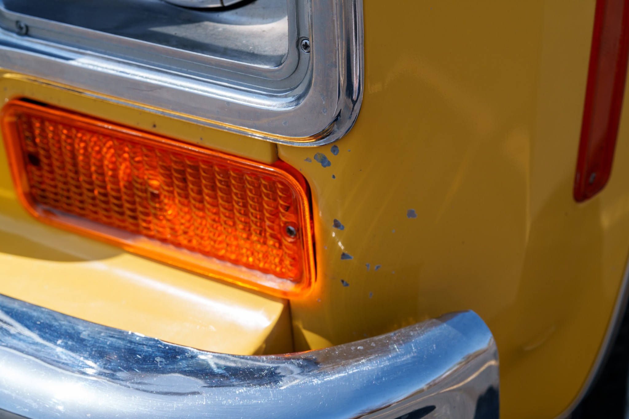 Those minor chips aren’t a big deal. In the days before protective film, we all remember the aluminum shields you could buy to protect the flare-out fronts of the rear wheel openings. Owner tried up front with the Deflecta Shield.