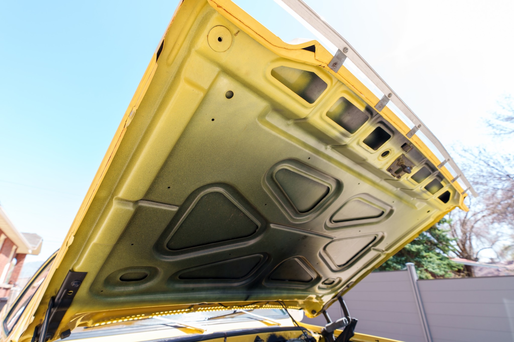 GM never sprayed the underside of the hoods in this manner and one of the “over spray” underneath pictures shows the inside of the lower front fender unpainted. The truck’s been in an accident and it would be helpful to know how bad. Carfax?