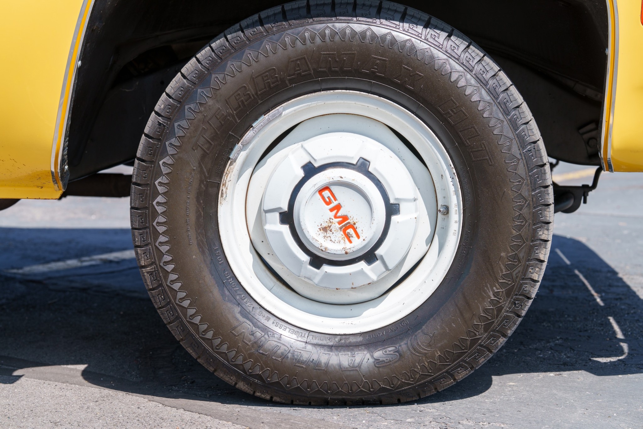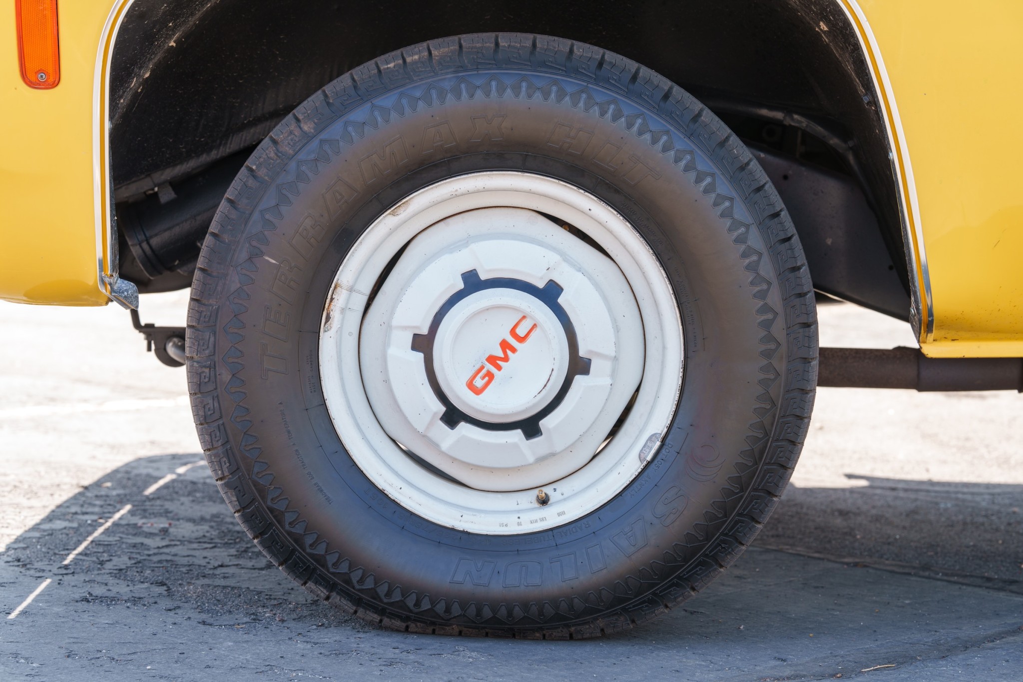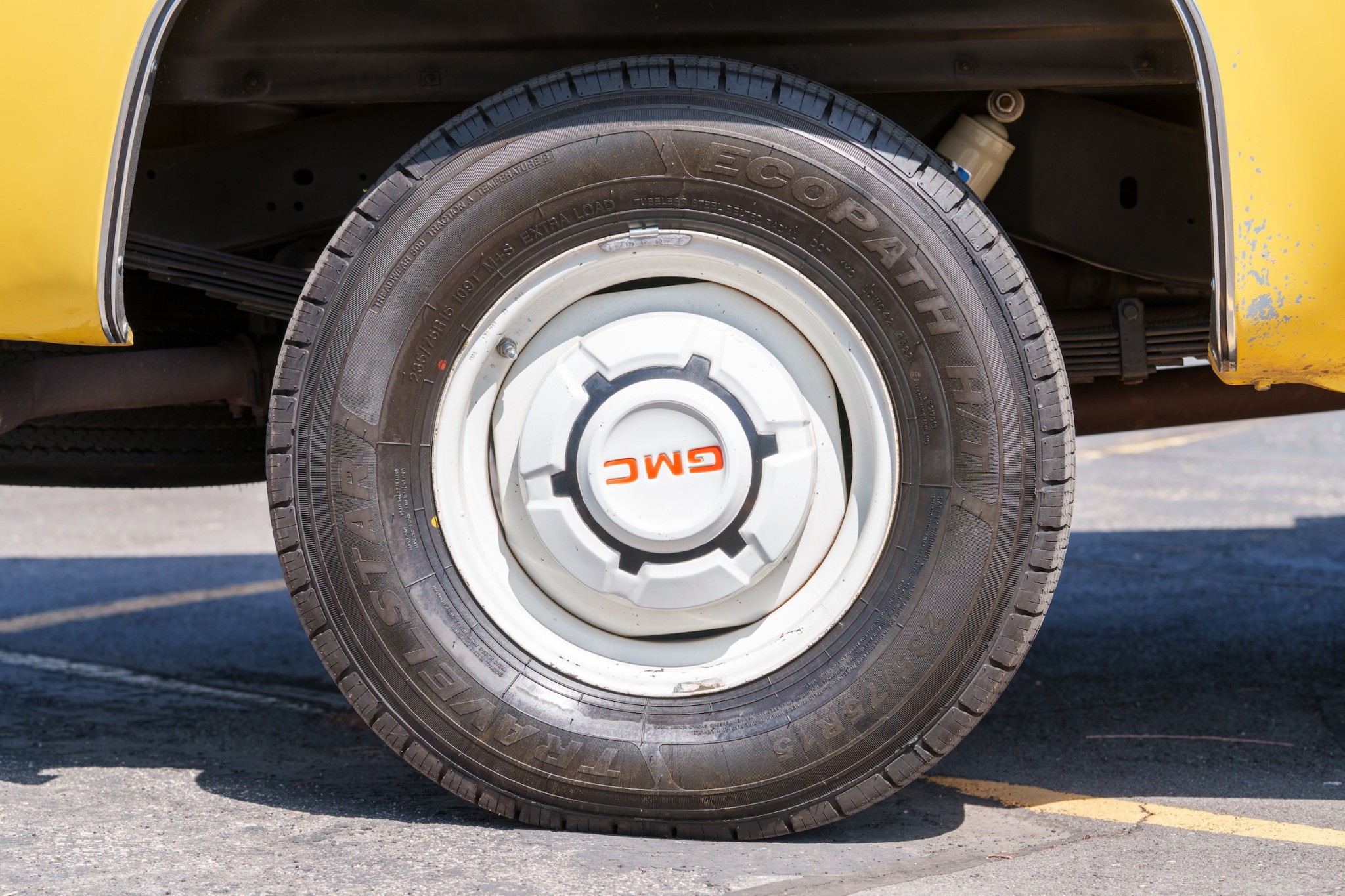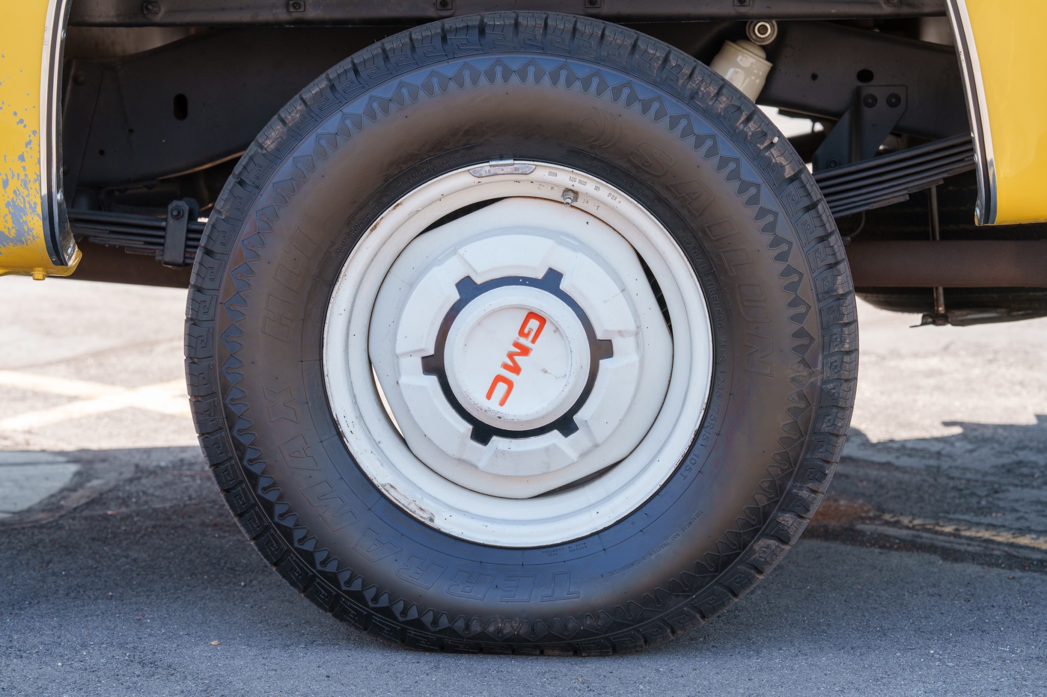 Lovely old GMC. Remember when these used to be everywhere. Base trim with white roof, bumper and hub caps. Printed vinyl seat and the rest of the interior looks like it was never in the sun. Open the wings and vents and enjoy the errands.