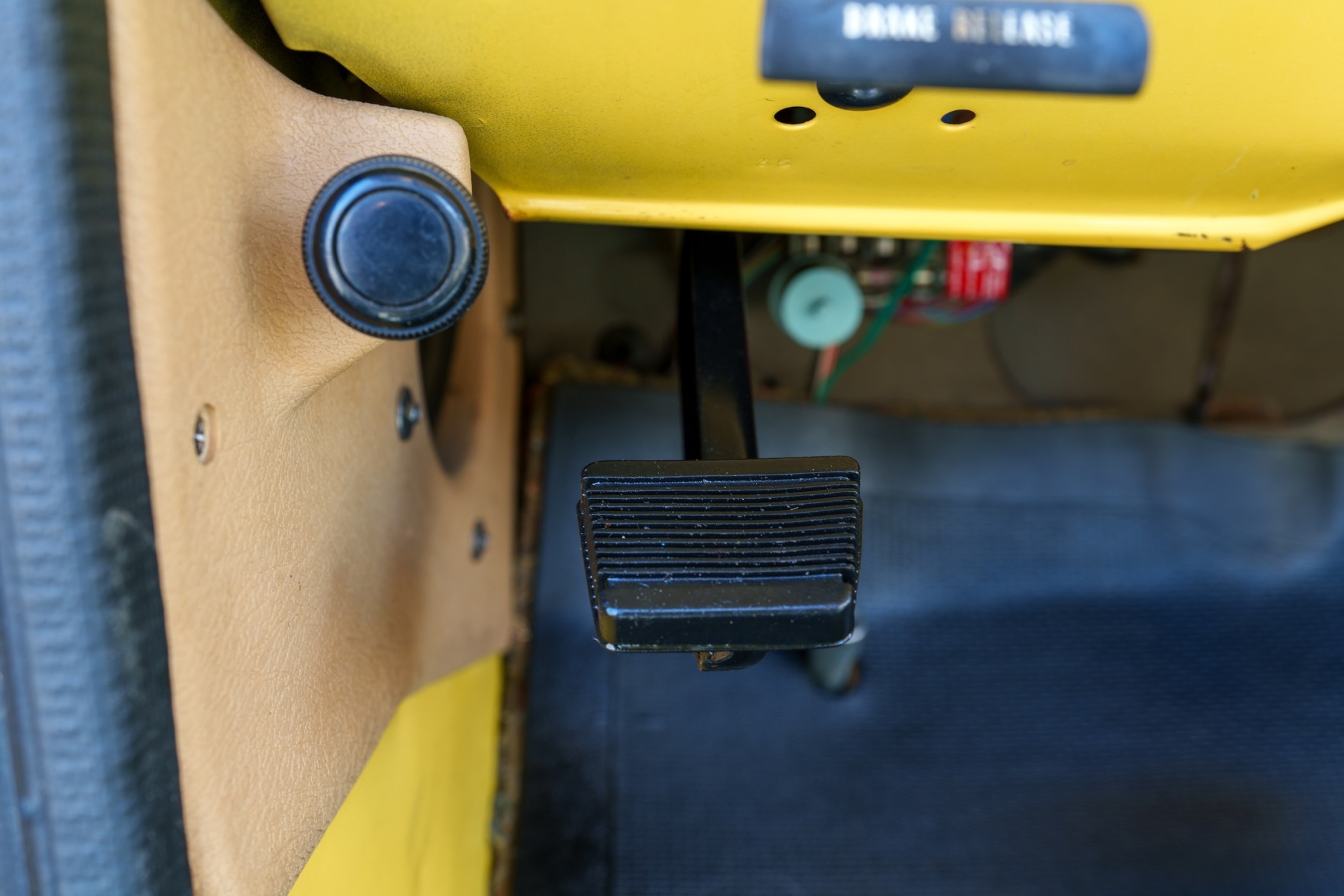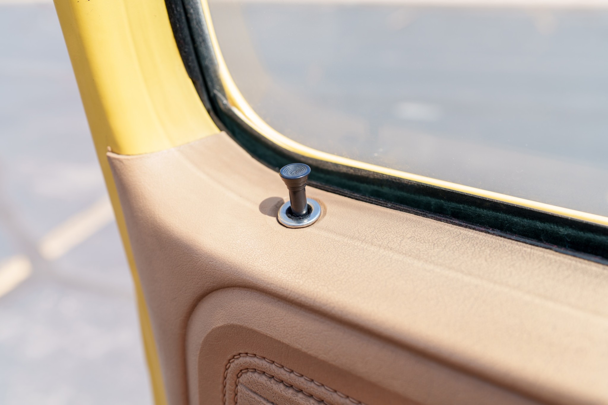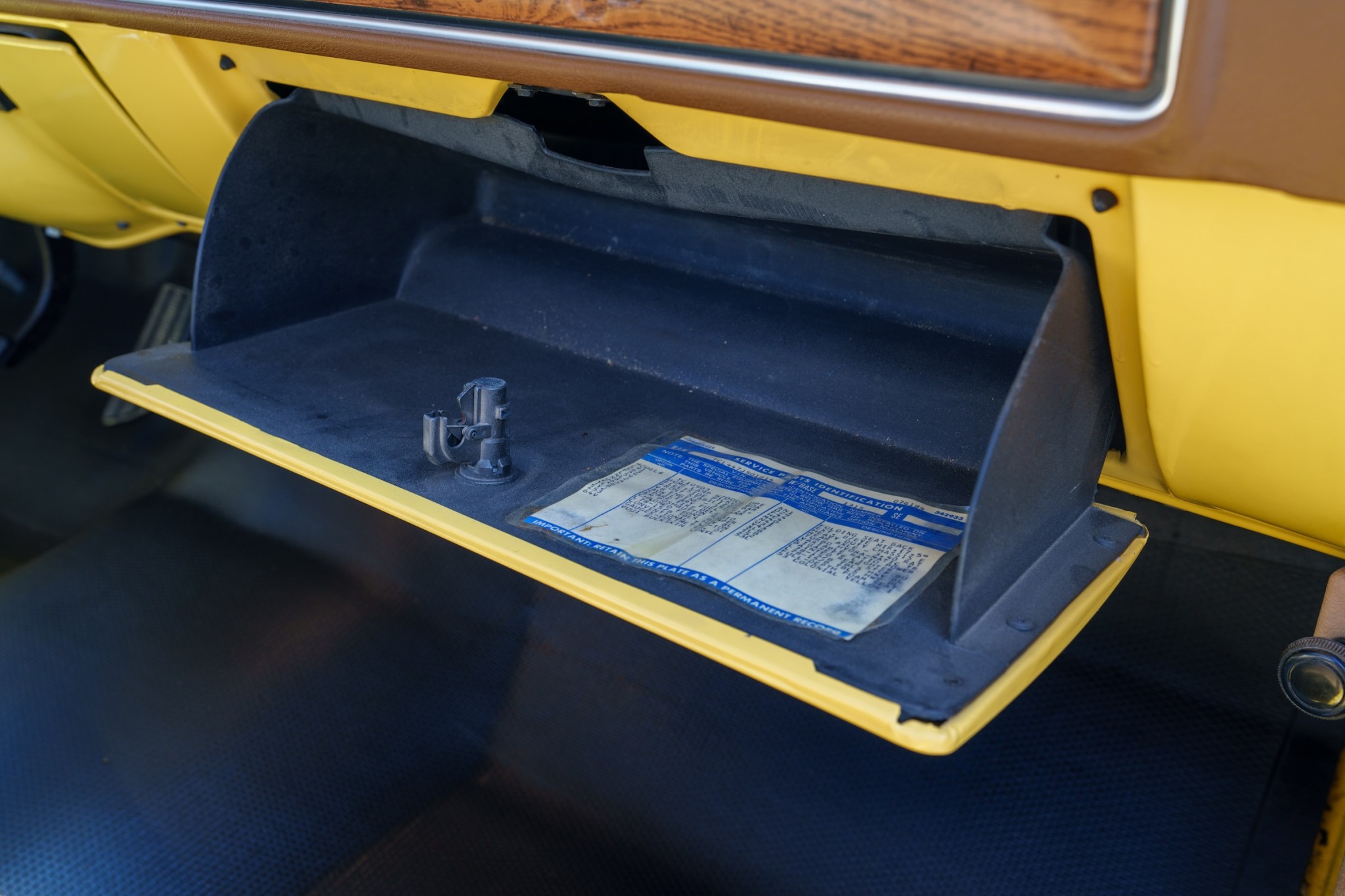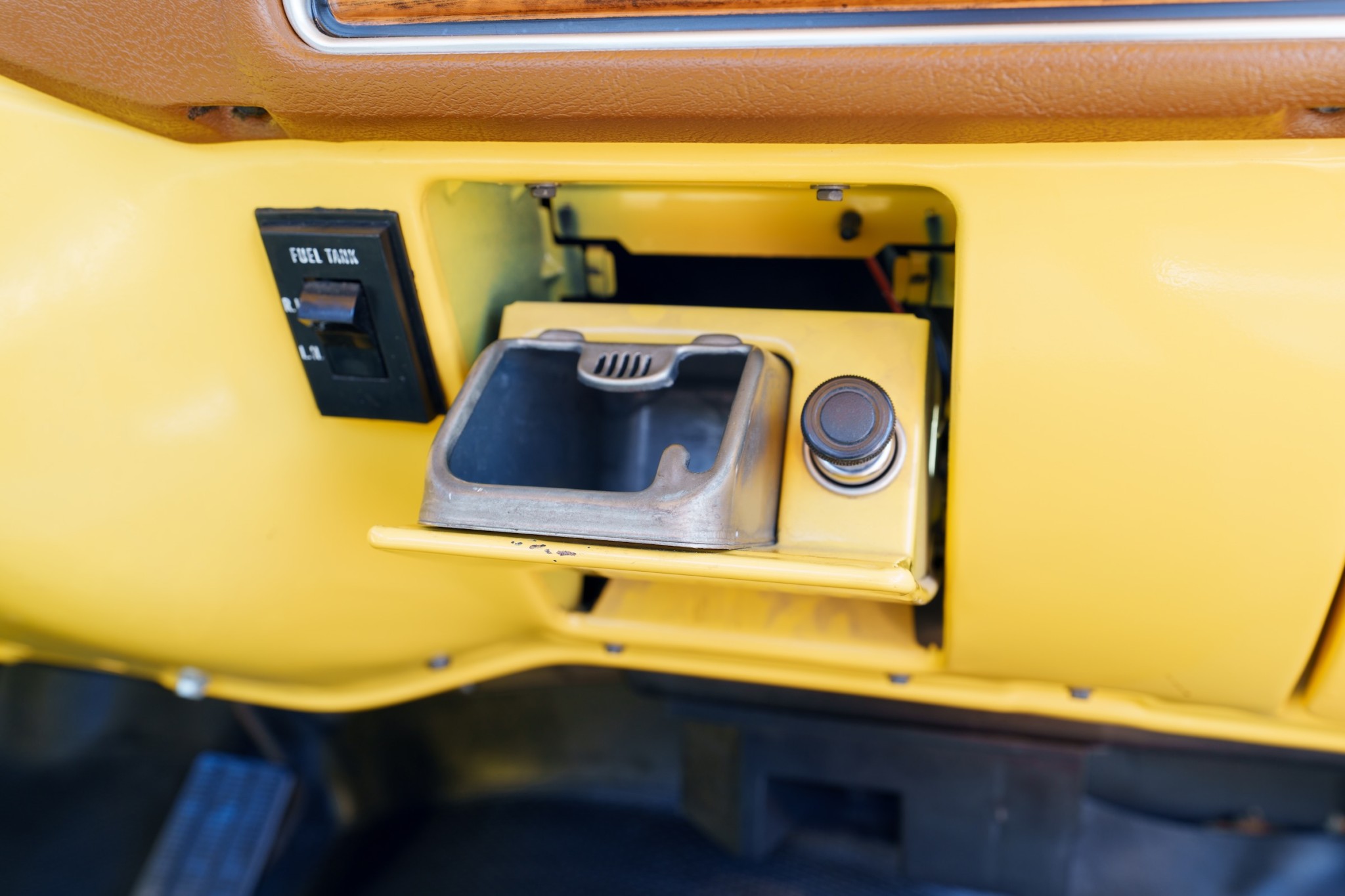 The inside presents just as nicely as the outside, with only some minor blemishes. It’s possible that the seat upholstery and vinyl floor coverings have been replaced at some point in its past, but they looks like they could possibly be original. Either way, what’s really important is that it presents nicely and is ready to enjoy. The dash looks to be free of cracks, and the door panels are free of damage or excessive wear. There’s an aftermarket stereo installed, but the dash looks original otherwise.