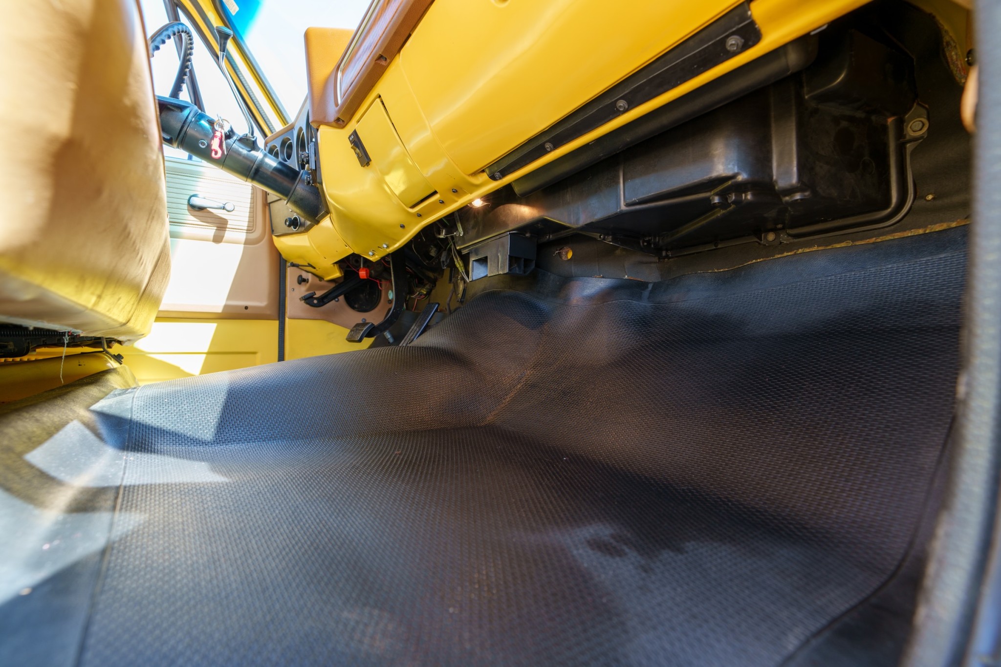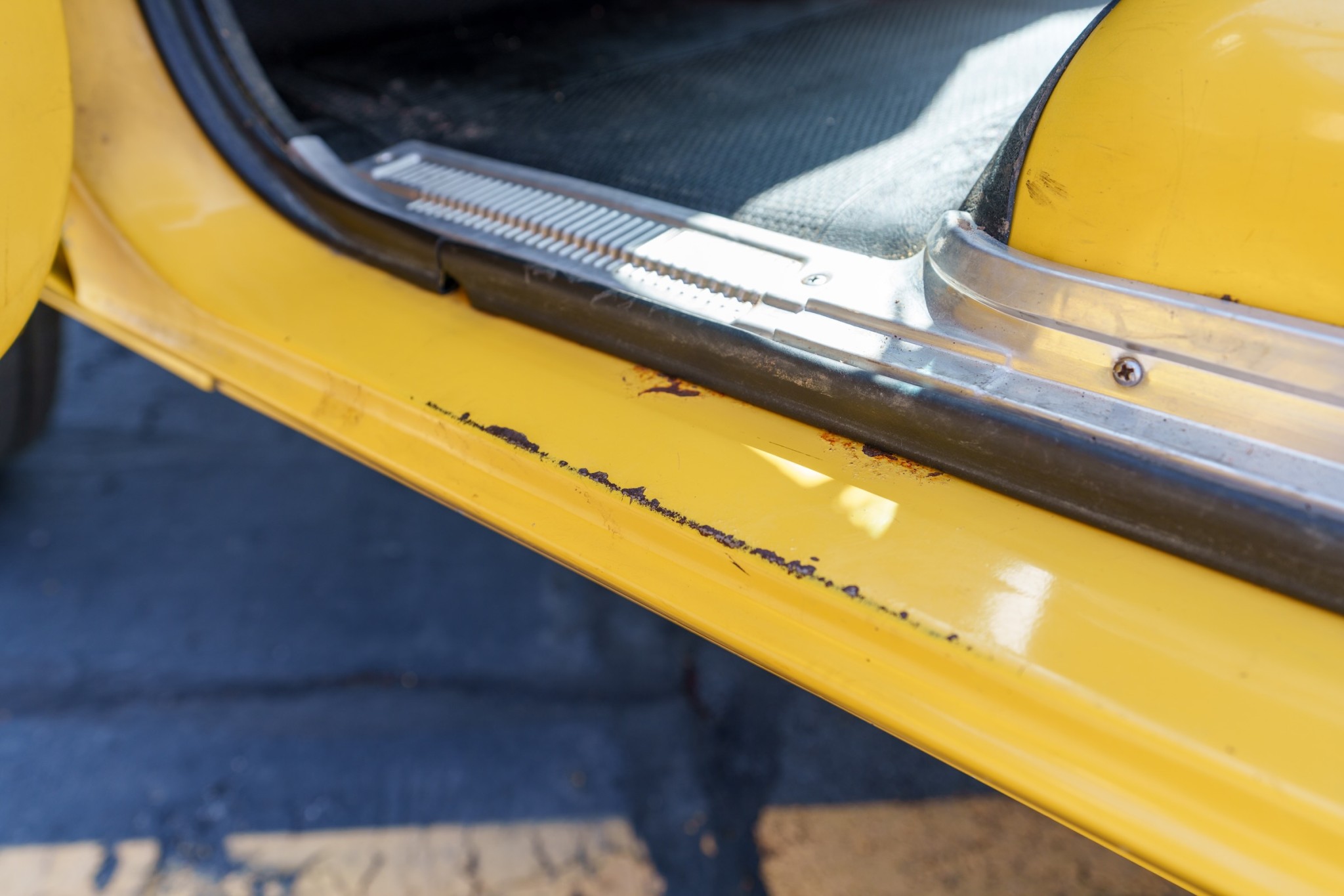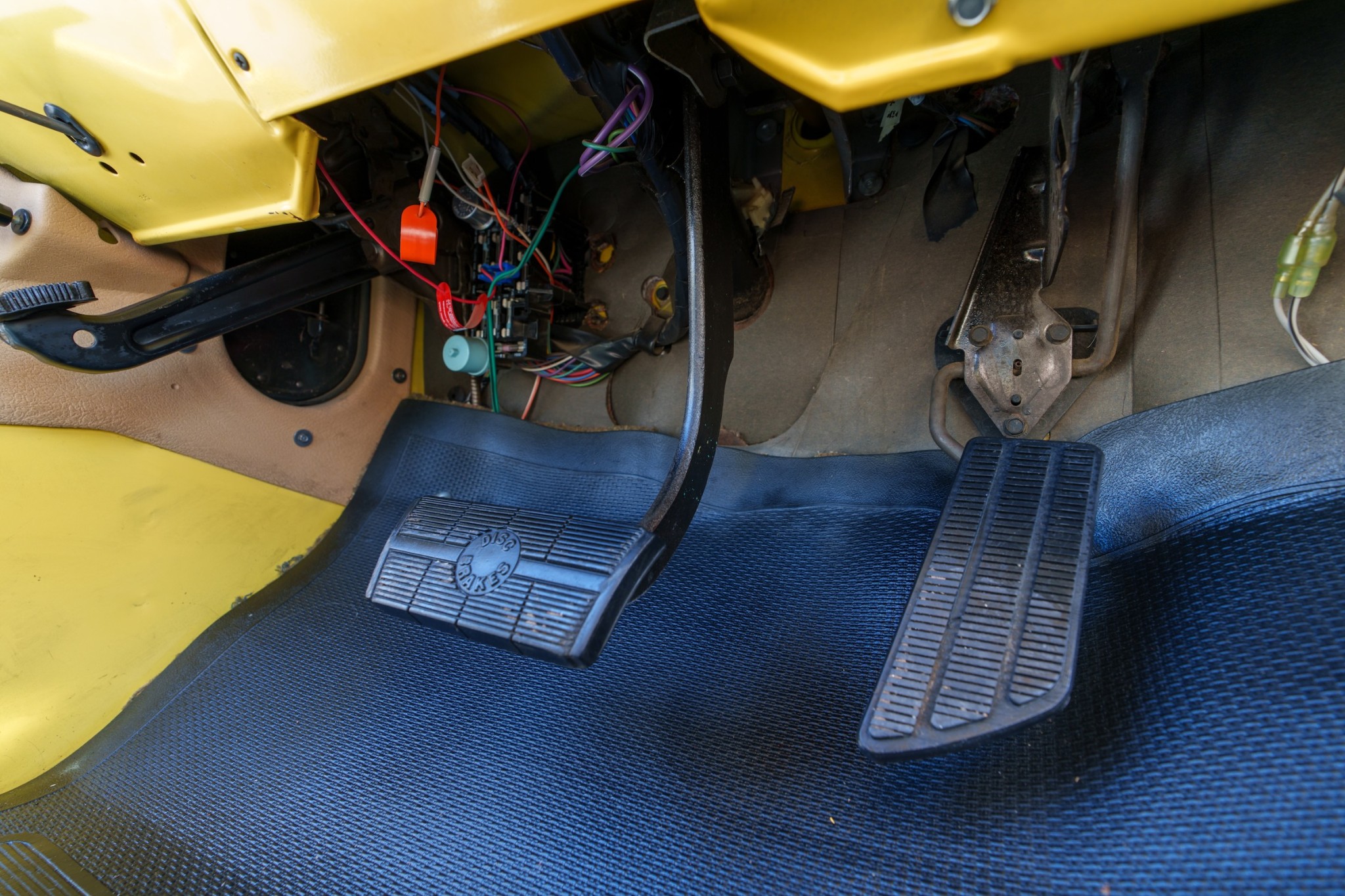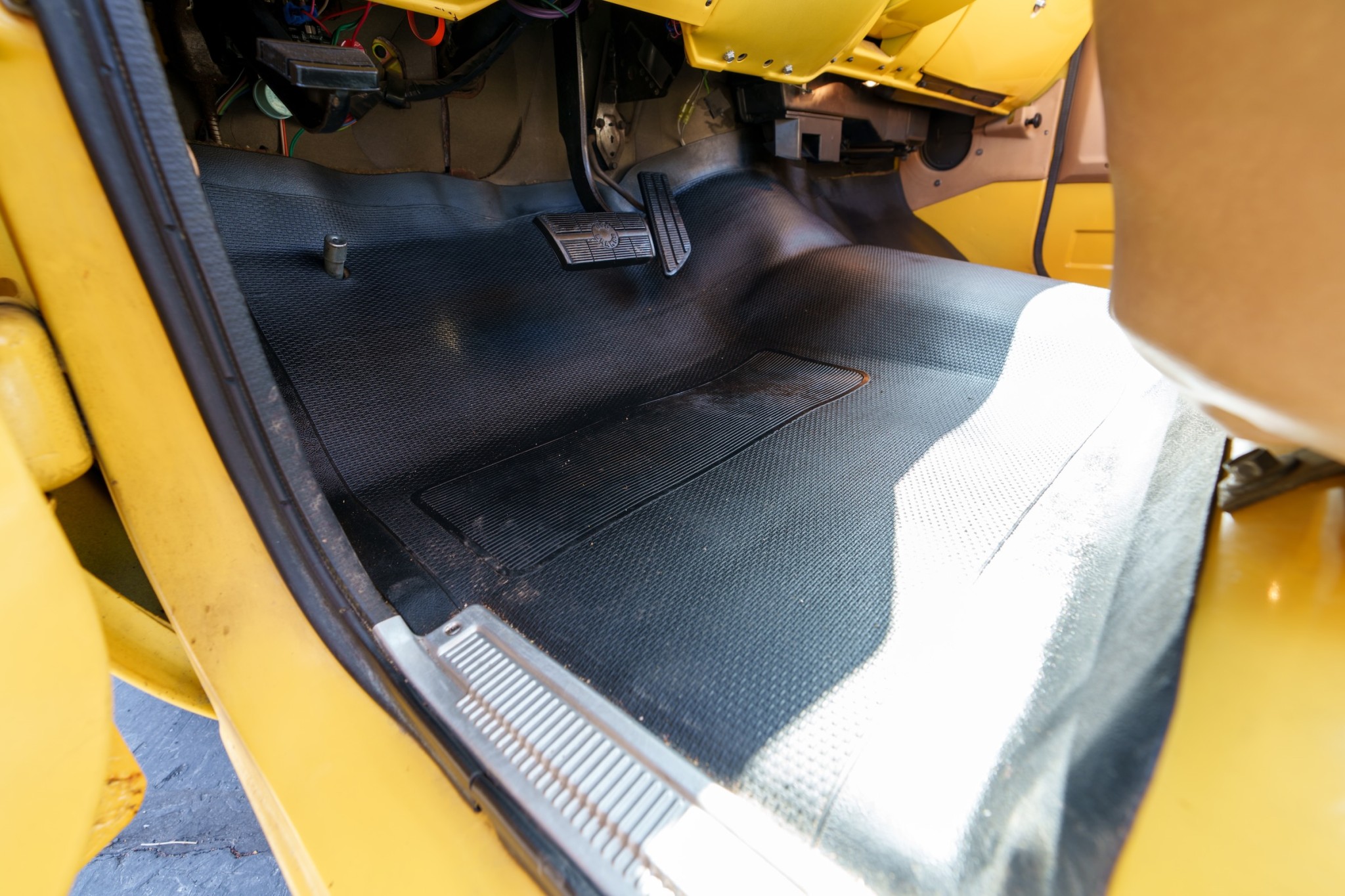 The inside presents just as nicely as the outside, with only some minor blemishes. It’s possible that the seat upholstery and vinyl floor coverings have been replaced at some point in its past, but they looks like they could possibly be original. Either way, what’s really important is that it presents nicely and is ready to enjoy. The dash looks to be free of cracks, and the door panels are free of damage or excessive wear. There’s an aftermarket stereo installed, but the dash looks original otherwise.